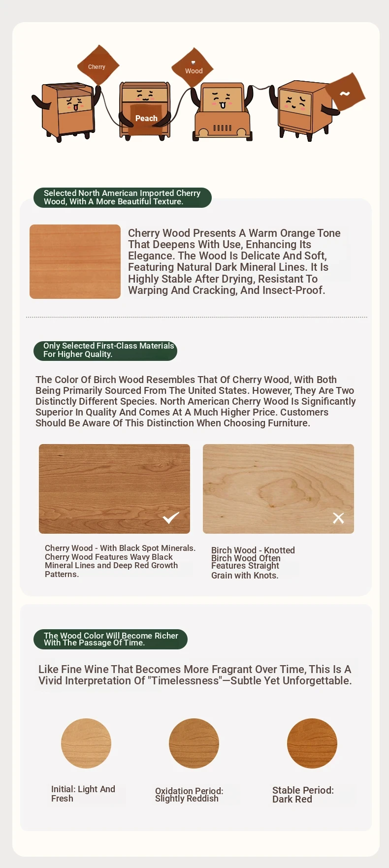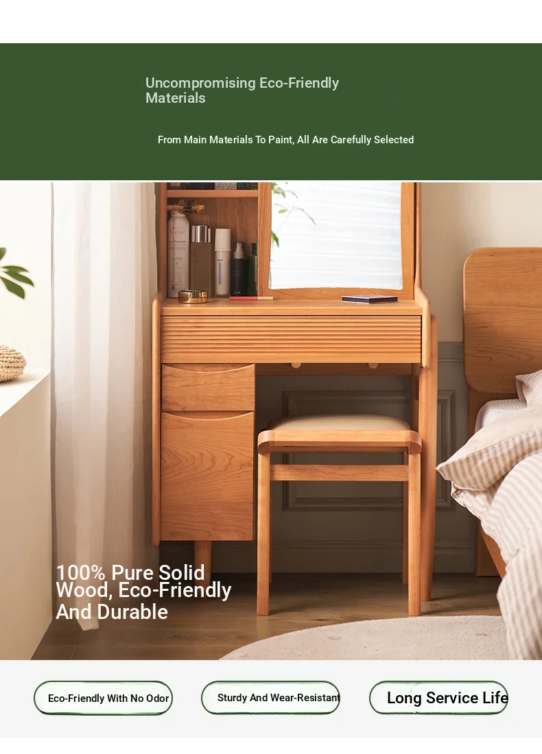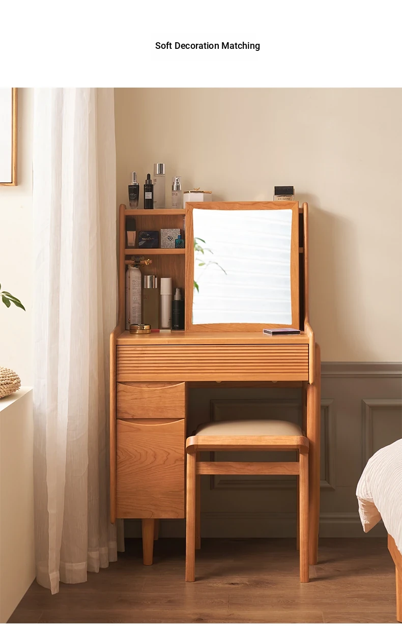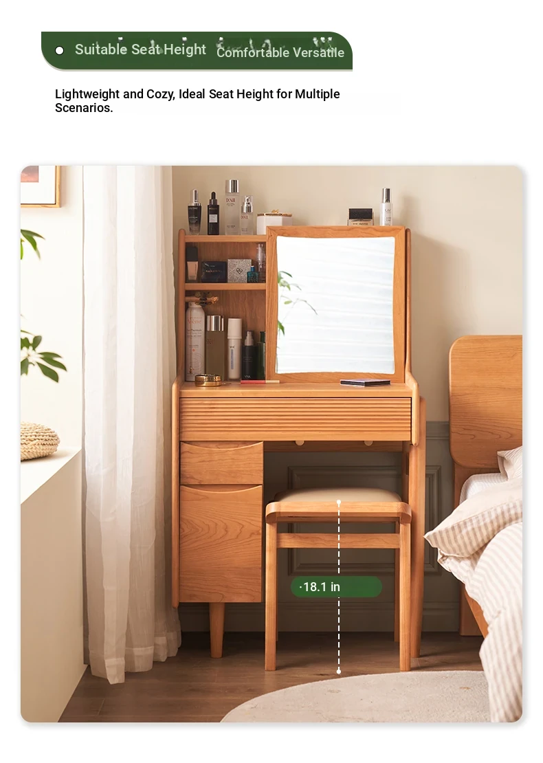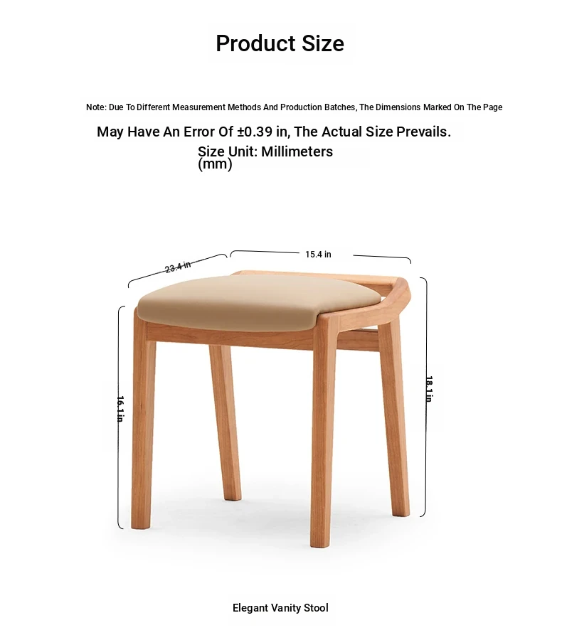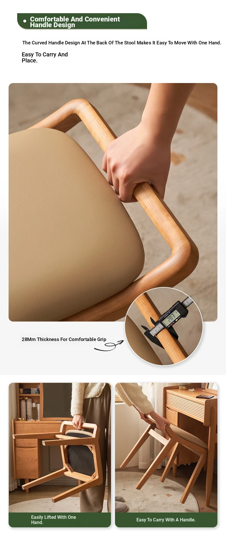 Nordic Solid Wood Vanity Stool - Modern Minimalist Cherry Wood Upholstered Seat, Perfect for Small Spaces, Ideal for Bedroom, Dining, and Makeup Use