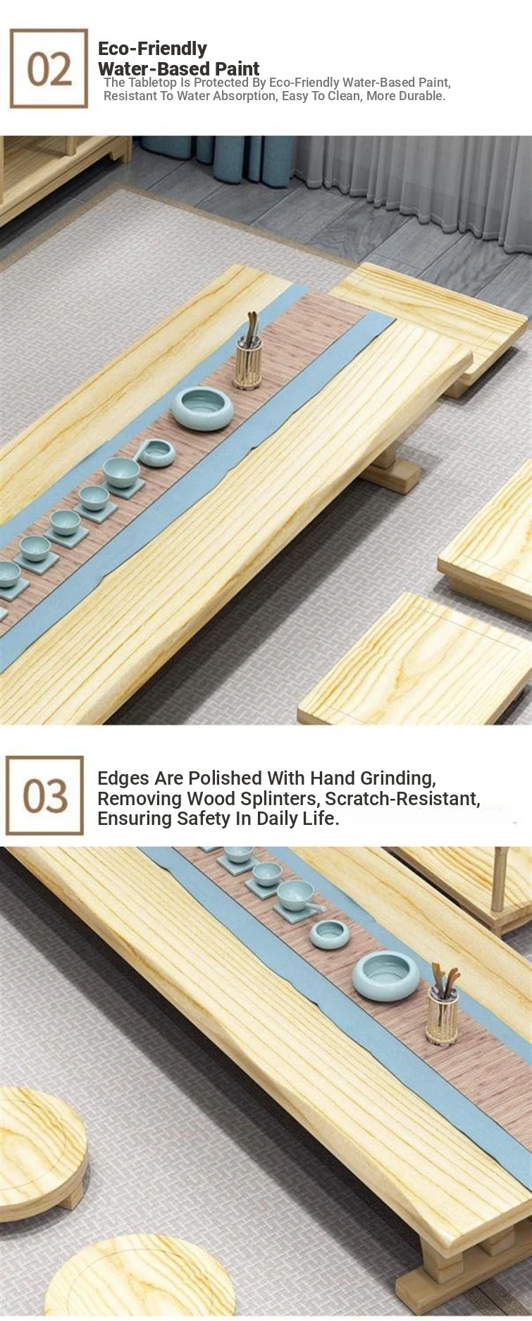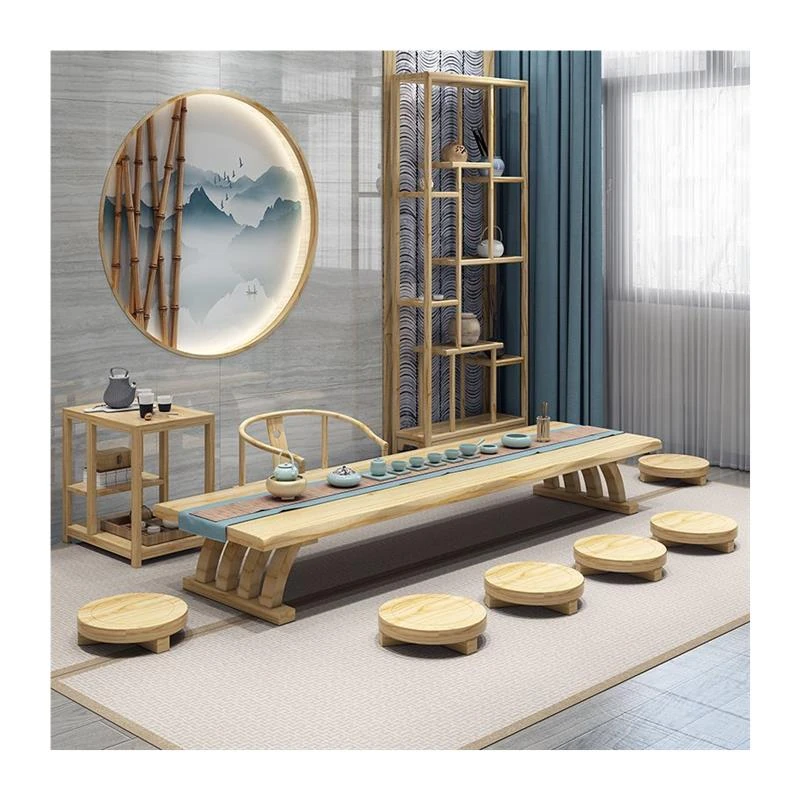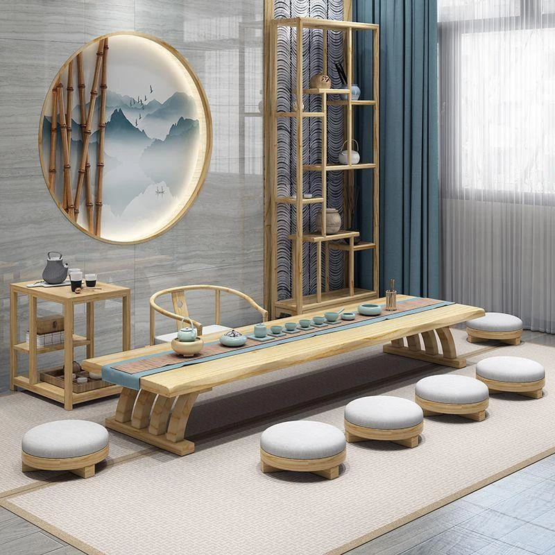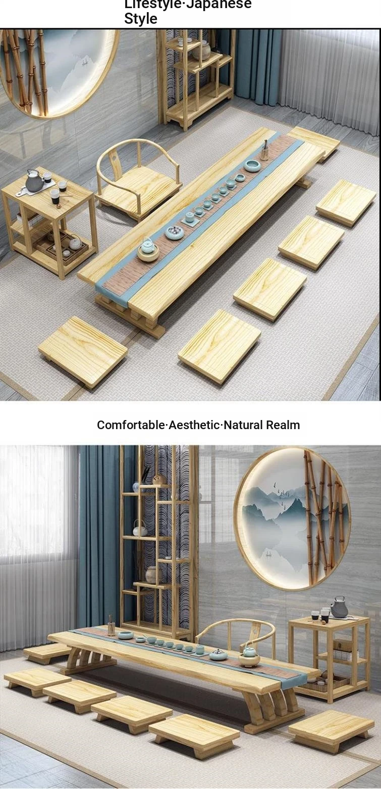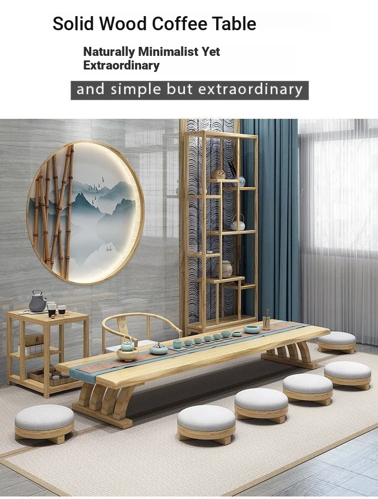 Solid Wood Tea Table and Chair Set - New Chinese Style Tatami Tea Table, Zen-Inspired Low Bench for Floor Sitting, Long Rectangular Coffee Table for Bay Windows and Kang Tables