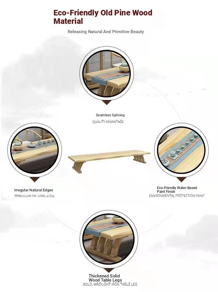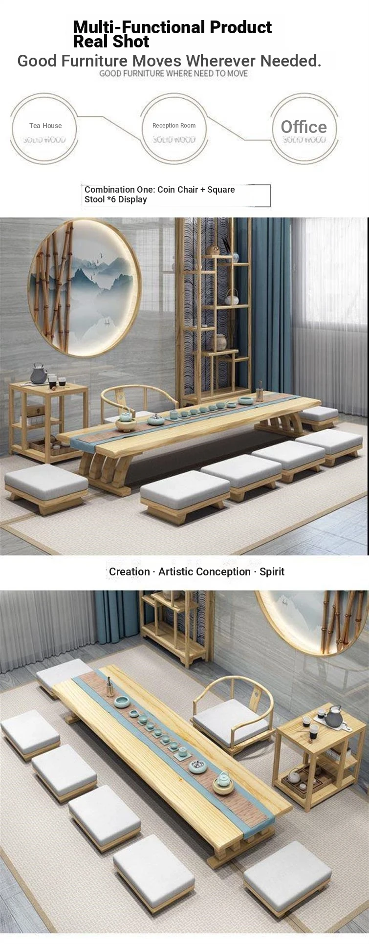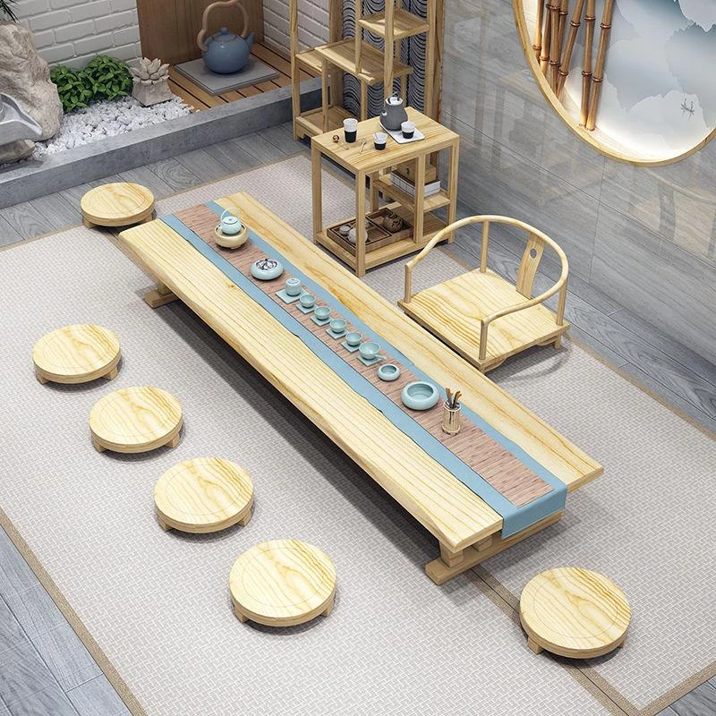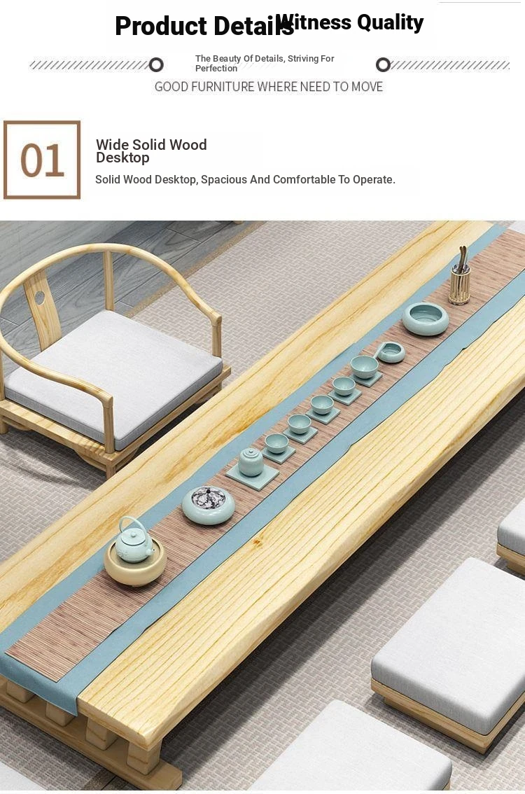 Solid Wood Tea Table and Chair Set - New Chinese Style Tatami Tea Table, Zen-Inspired Low Bench for Floor Sitting, Long Rectangular Coffee Table for Bay Windows and Kang Tables