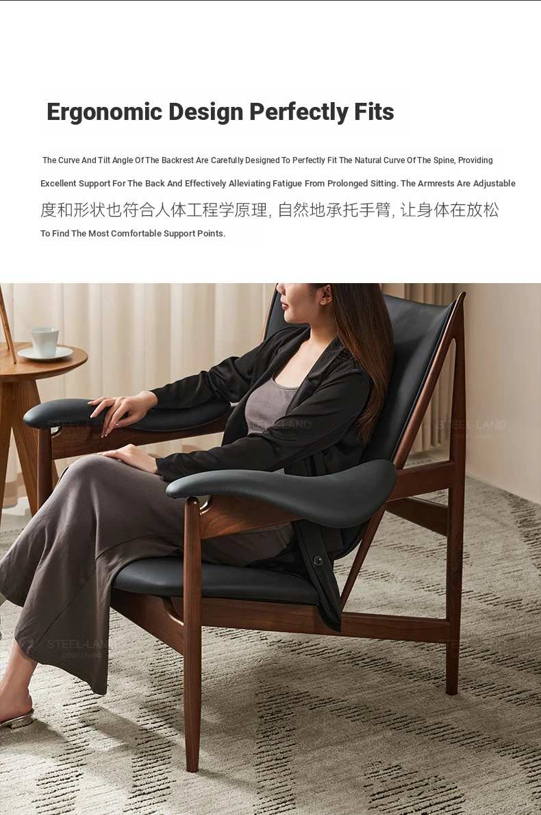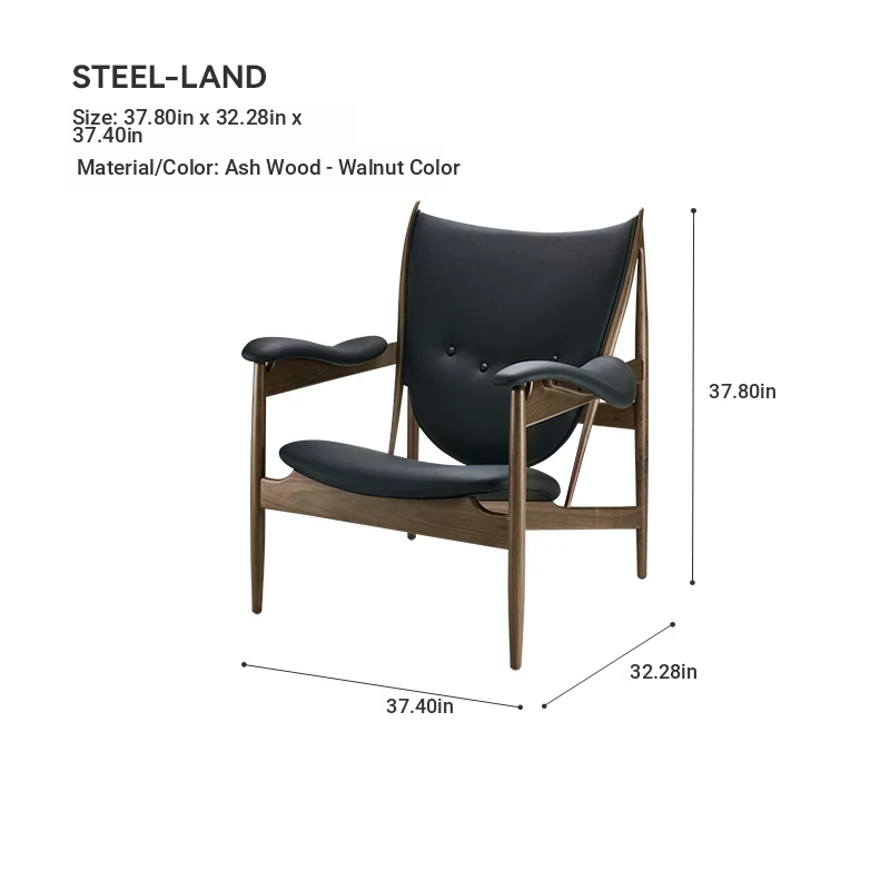 Steroland Classic High-End Chief Chair - Charcoal Black Lounge Chair, Minimalist Luxurious Sofa Chair for Living Room and Balcony