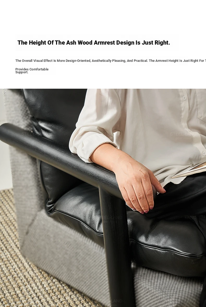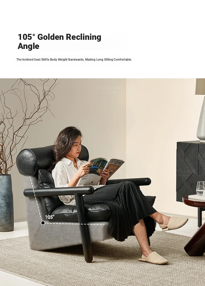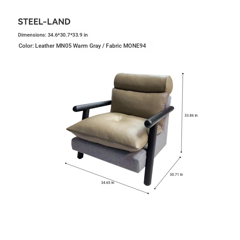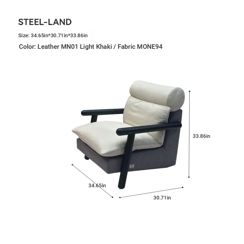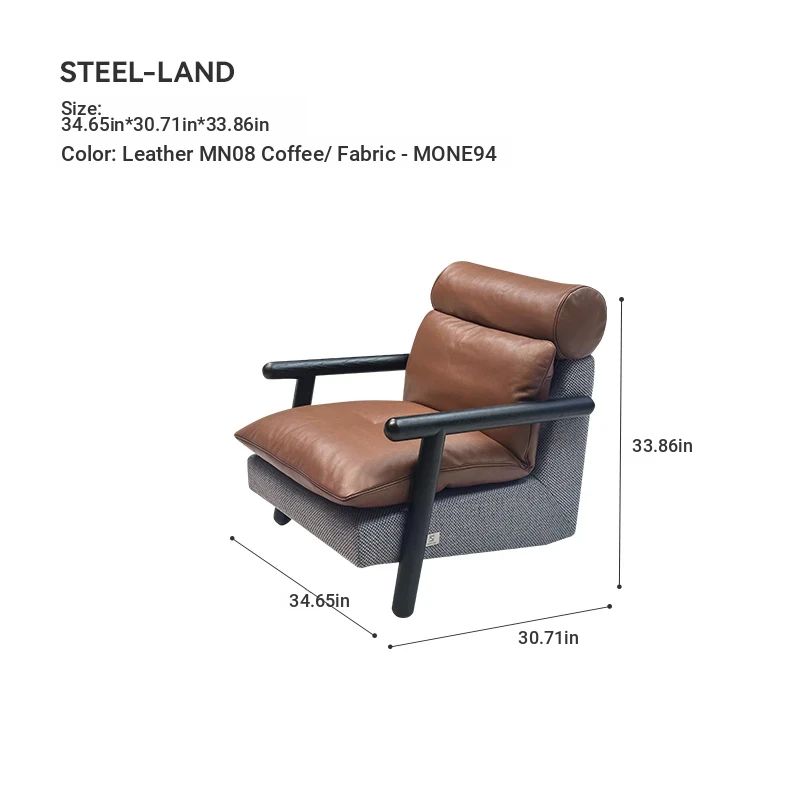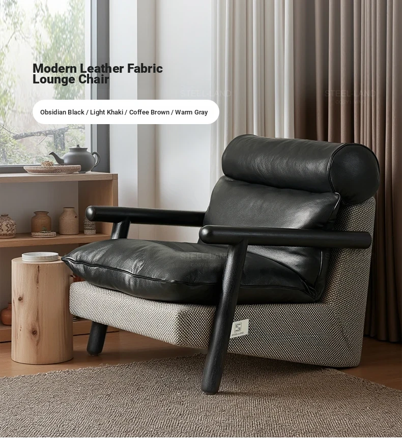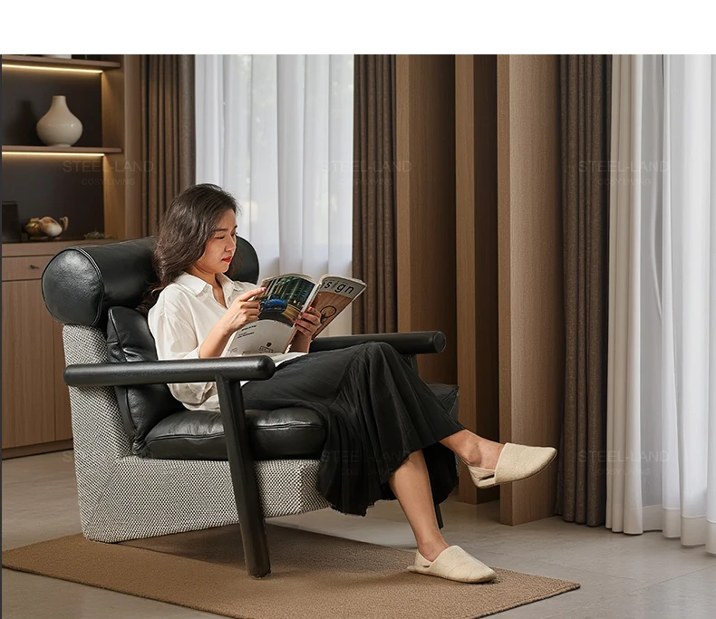 Steroland Genuine Leather Casual Chair - Italian Light Luxury Upholstered Single Sofa with Backrest, Perfect for Cozy Living Rooms and Long Sitting Comfort, Ideal for Relaxation and Leisure