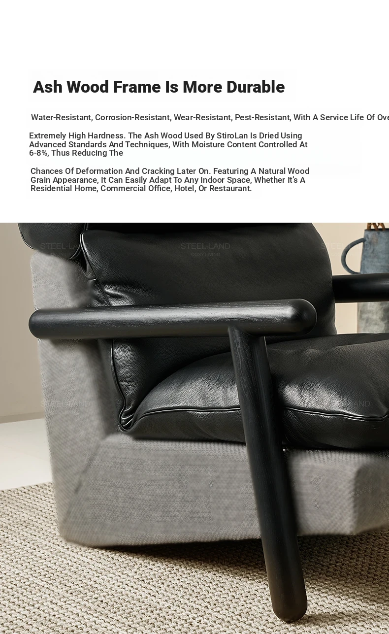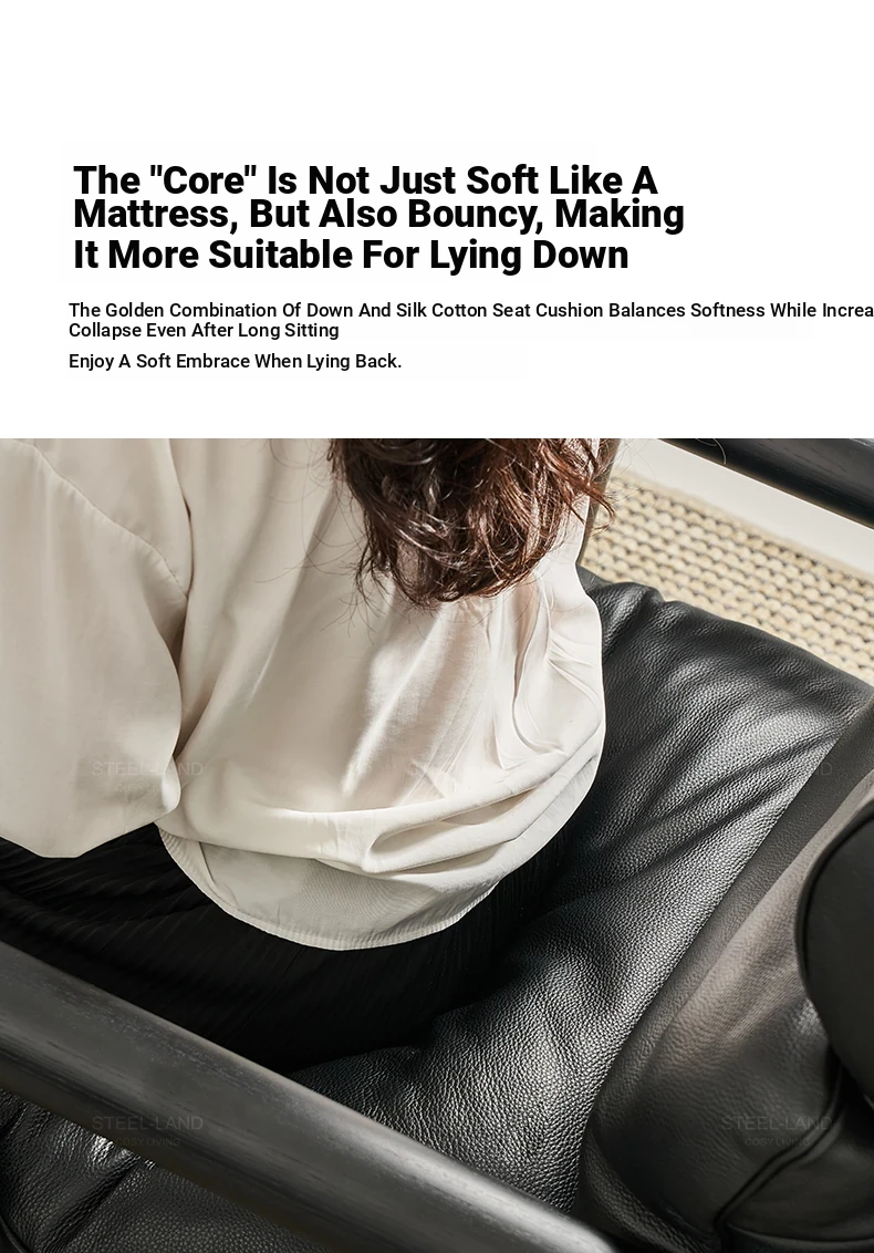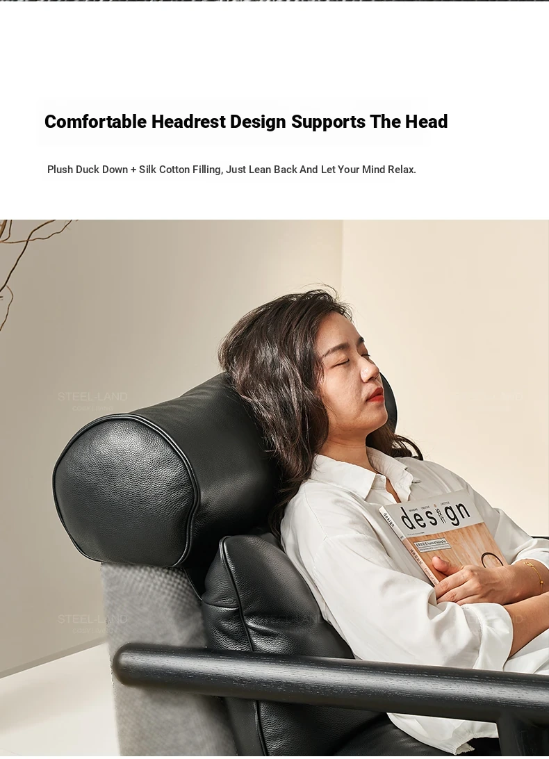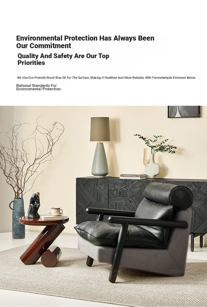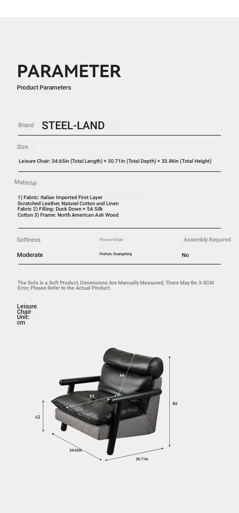 Steroland Genuine Leather Casual Chair - Italian Light Luxury Upholstered Single Sofa with Backrest, Perfect for Cozy Living Rooms and Long Sitting Comfort, Ideal for Relaxation and Leisure