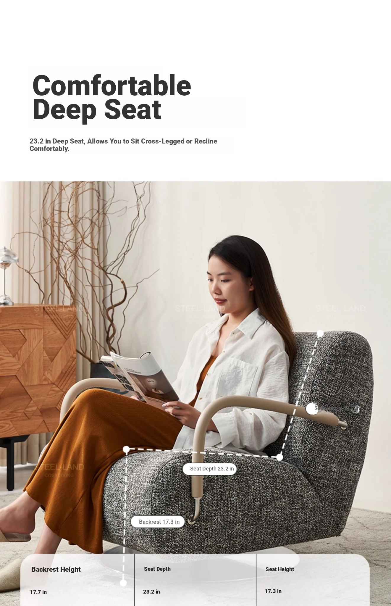 Sterolane Upholstered Croissant Lounge Chair - Swivel Accent Chair for Living Room, High-End Designer Reading Chair, Perfect for Relaxation and Style