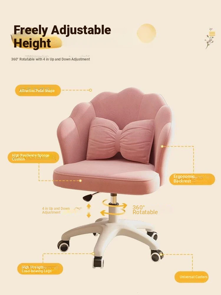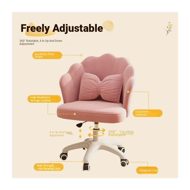 Stylish Petal Chair for Women - Comfortable Makeup and Study Chair for Bedroom, Perfect for Home Office Use with Supportive Backrest - Trendy Design for Influencers!