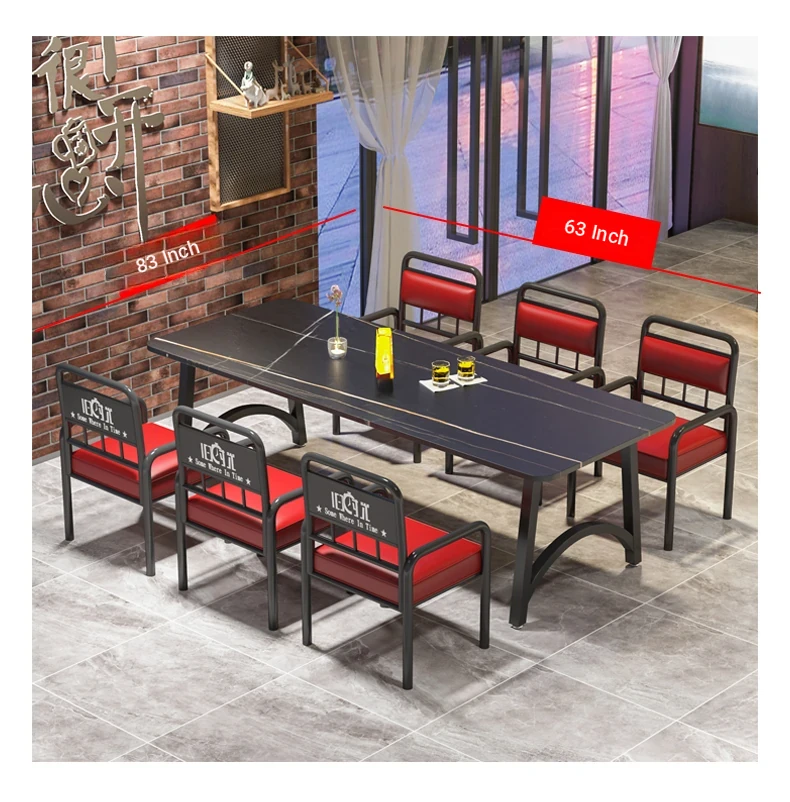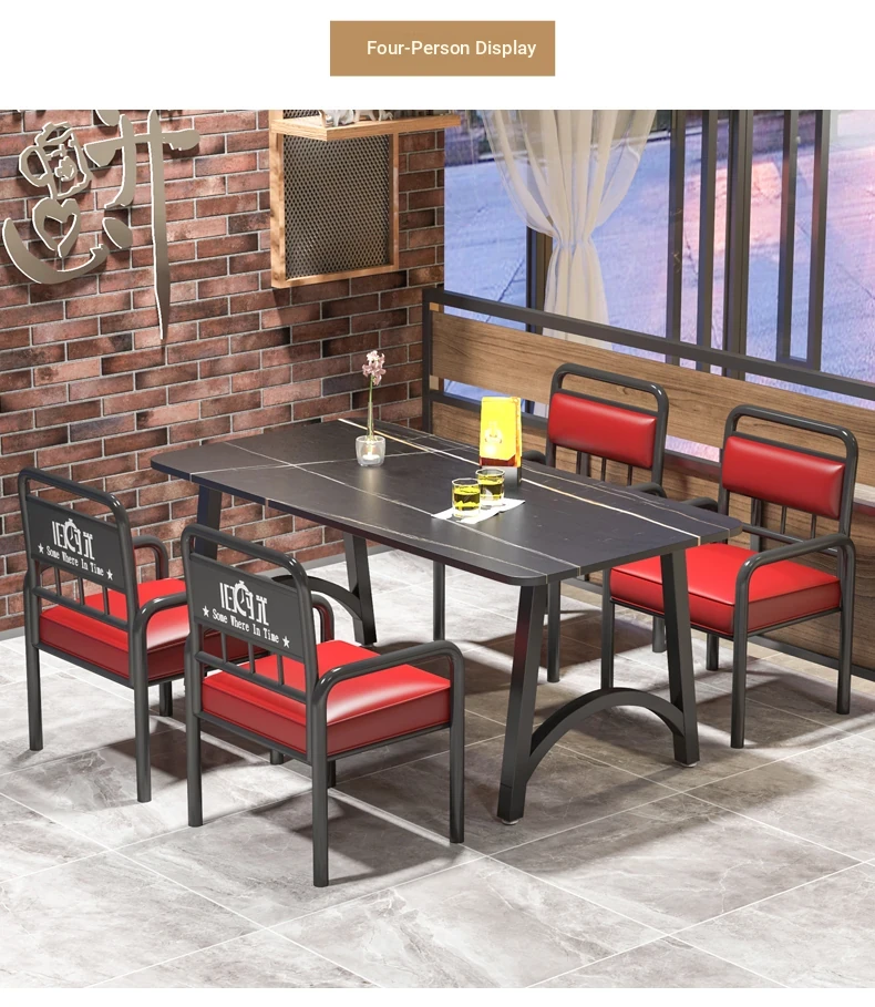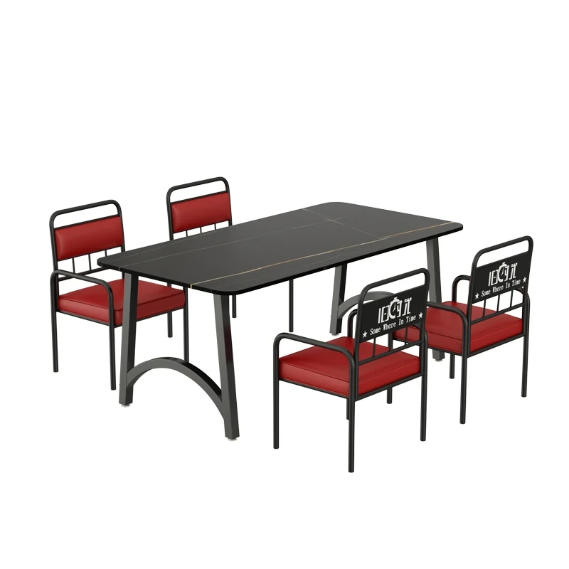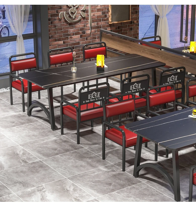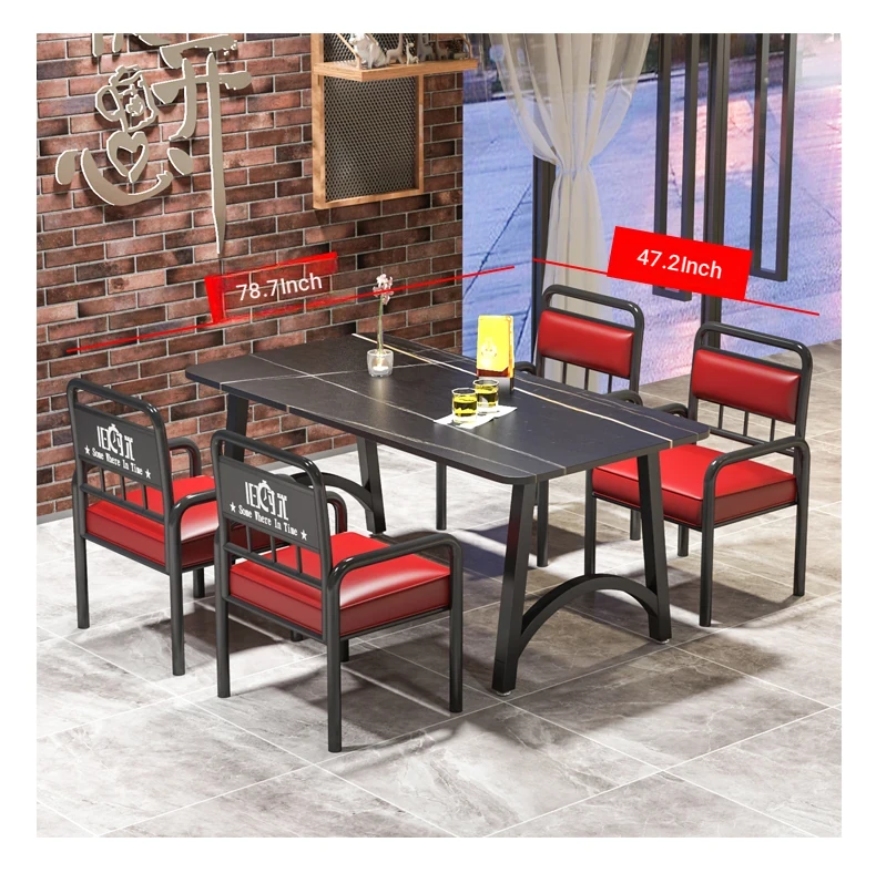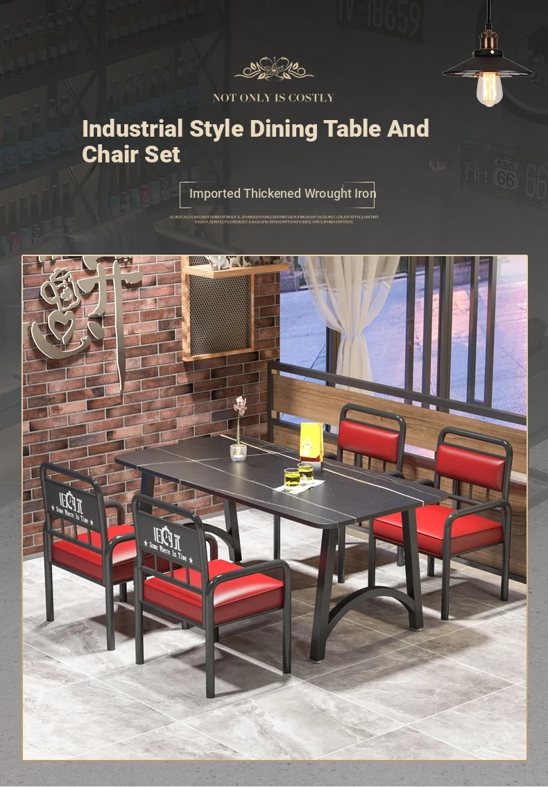 Trendy Industrial-Style Bar Dining Table and Chairs Set for Restaurants, BBQ Joints, Hot Pot Spots, and Chill Lounges – Elegant Rock Slab Design for Modern Dining Experiences