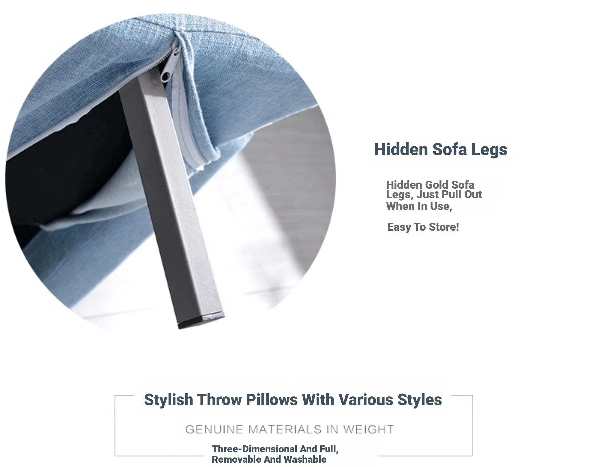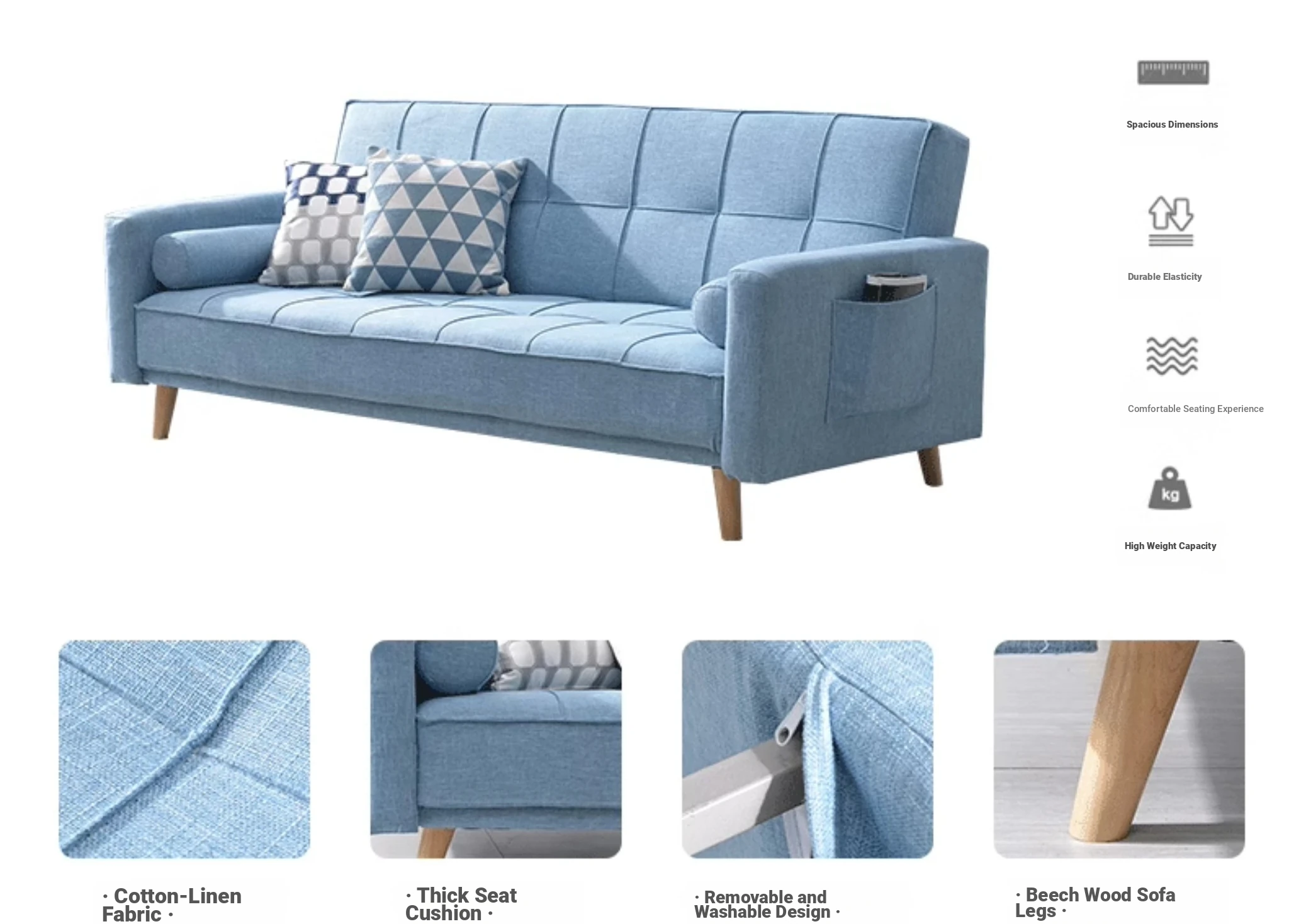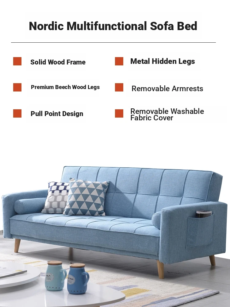 Versatile Foldable Sofa Bed for Living Room – 1.8m Double and 2m Triple Use, Space-Saving Fabric Design, Washable, Ideal for Small Apartments, Scandinavian Style