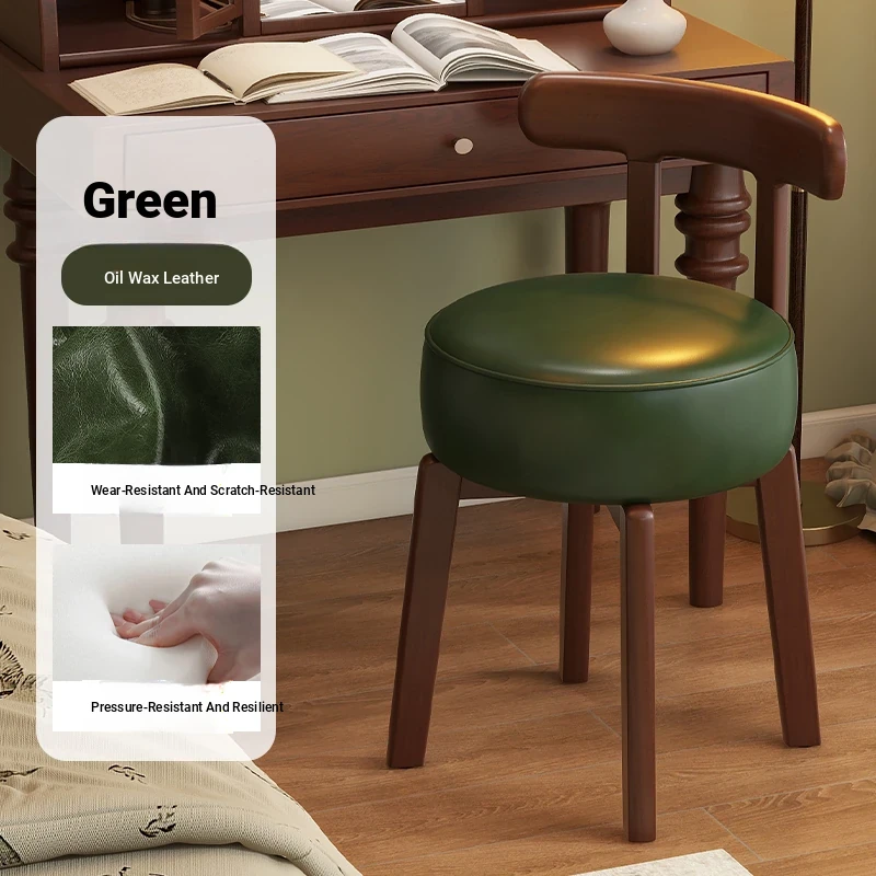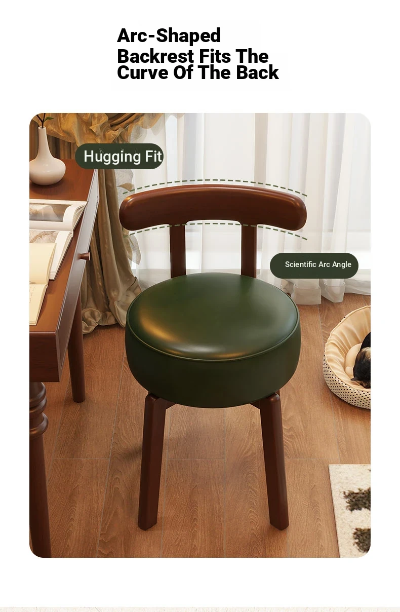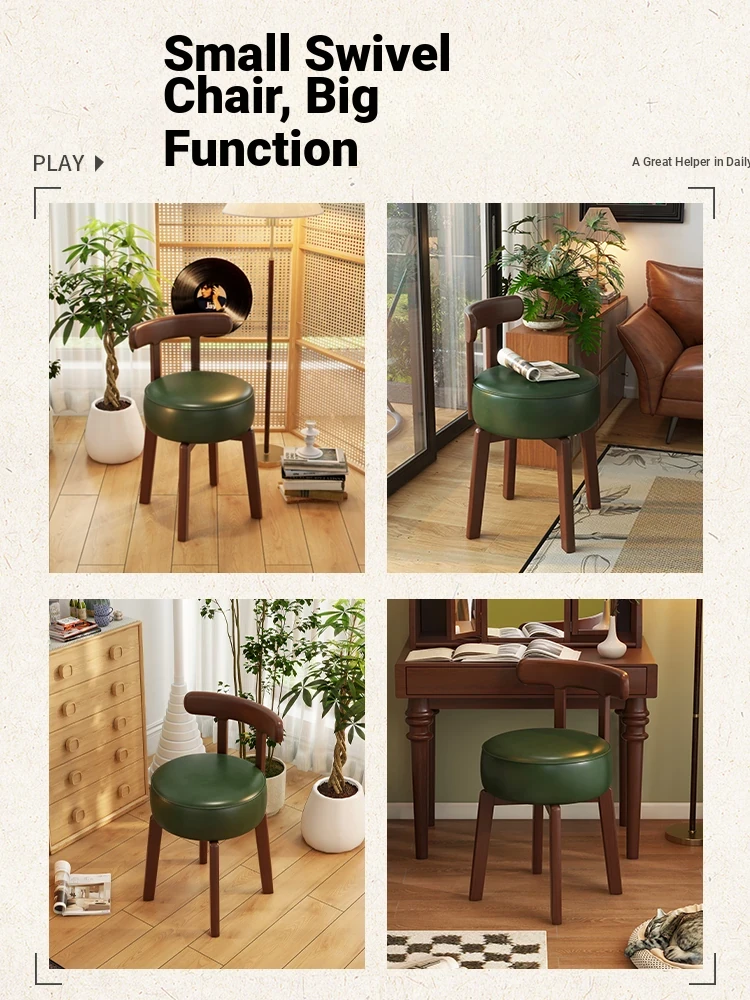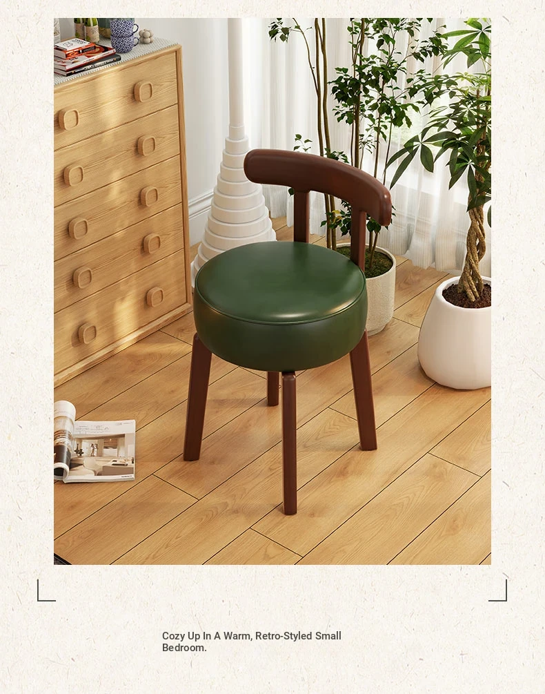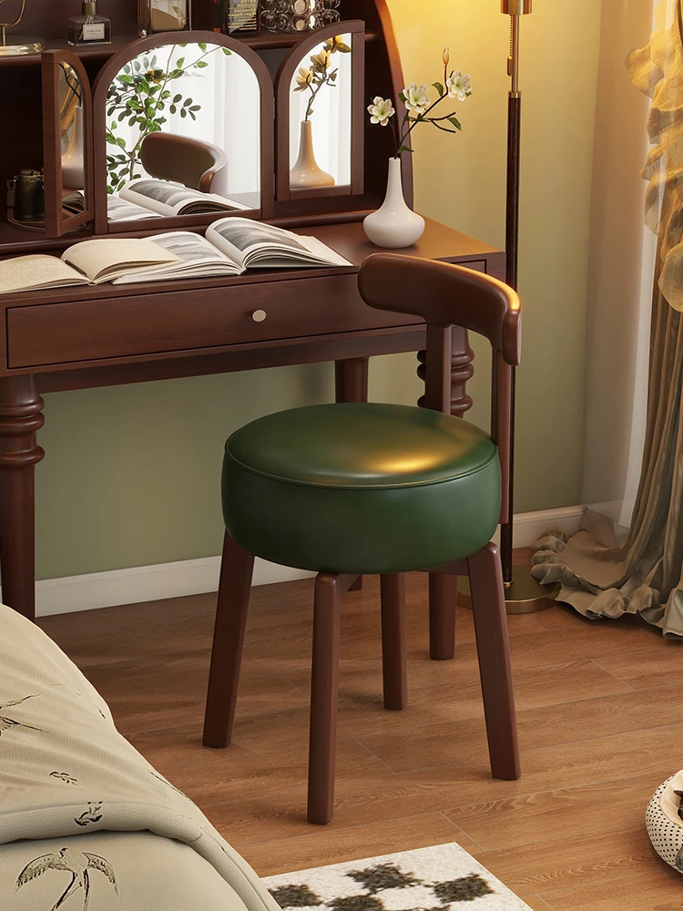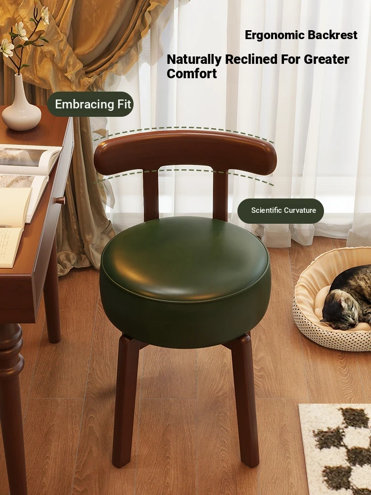 Vintage-Style Rotating Makeup Chair - Solid Wood Vanity Stool with Backrest for Girls' Bedrooms - Retro Elegance Meets Modern Luxury