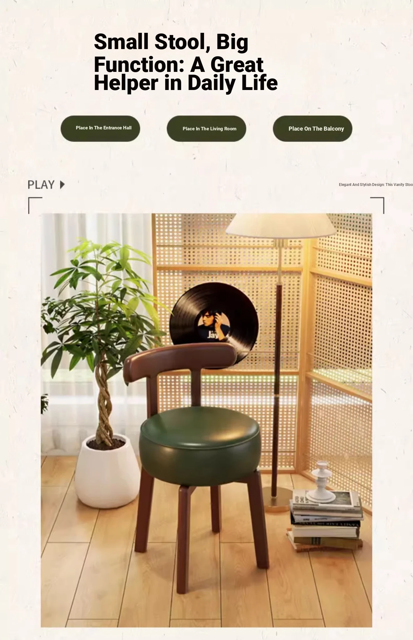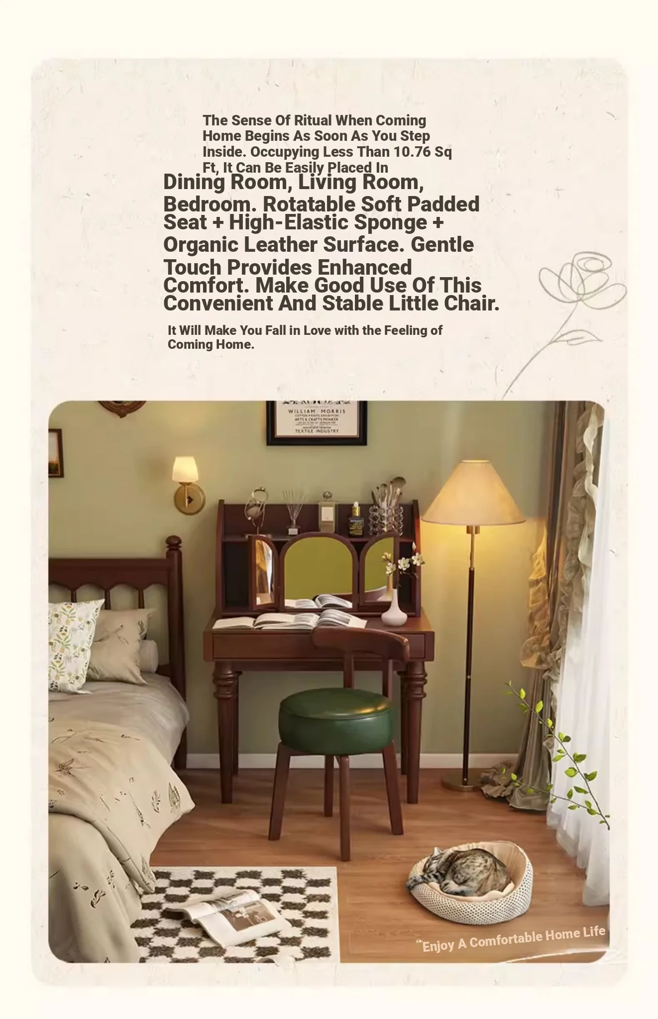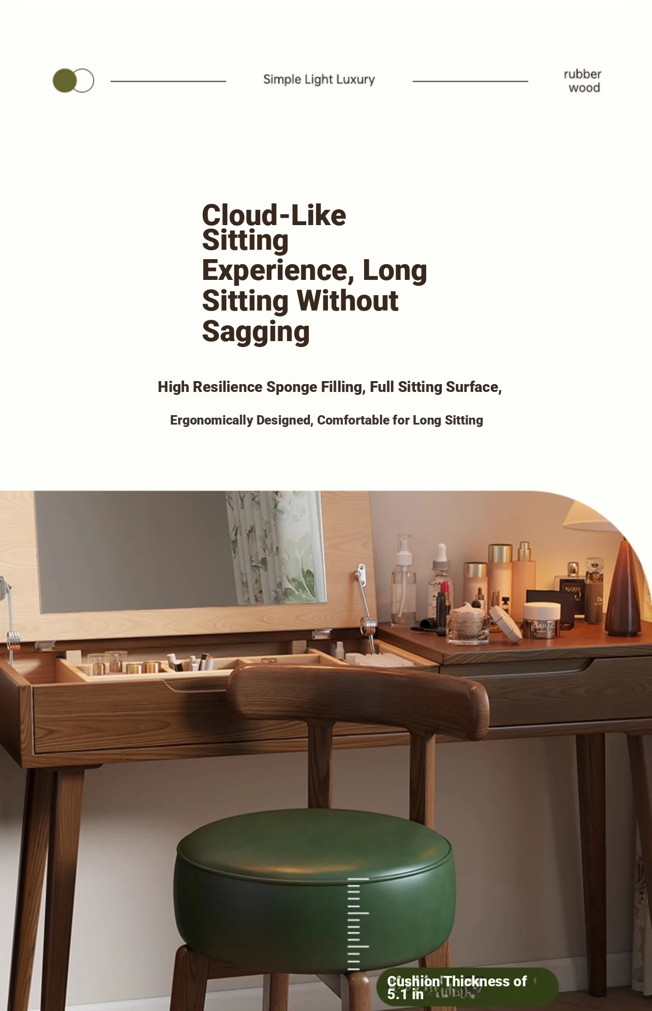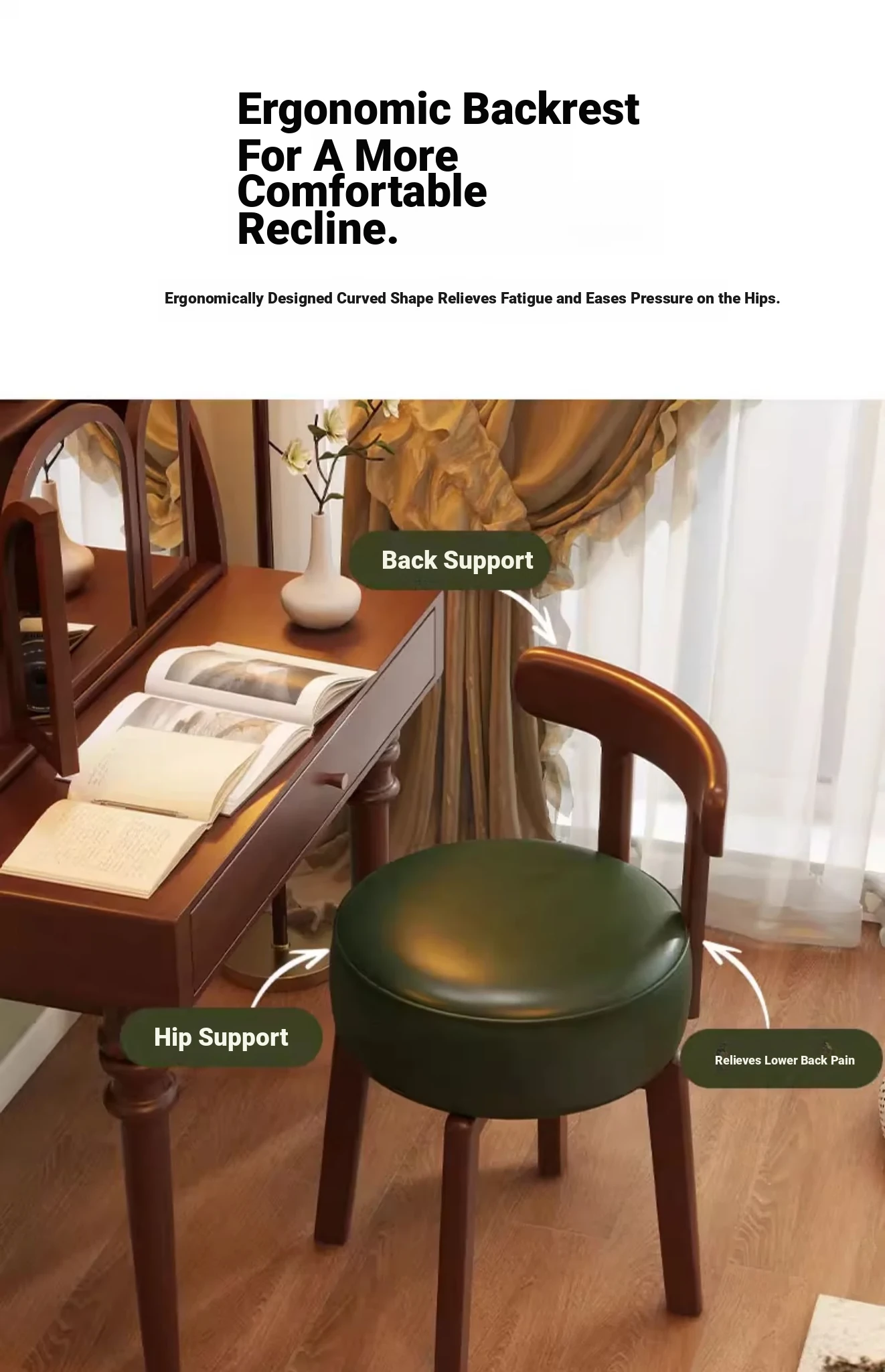Vintage-Style Rotating Makeup Chair - Solid Wood Vanity Stool with Backrest for Girls' Bedrooms - Retro Elegance Meets Modern Luxury