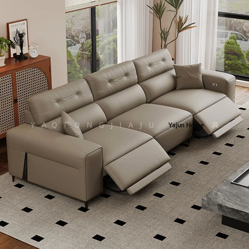 Modern Minimalist Genuine Leather Multifunctional Electric Sofa - Adjustable Luxury Space Capsule Design with Premium Top-Grain Leather for Three People