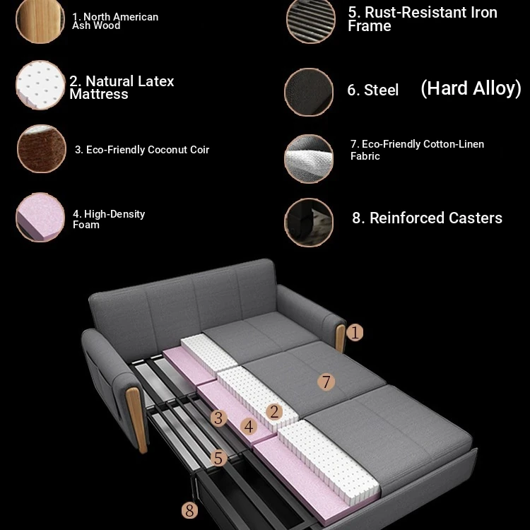 "【Free Shipping to Hong Kong】Multi-Functional Sofa Bed - Space-Saving Folding Design for Small Living Rooms, Adjustable Solid Wood Pull-Out Couch for Sitting and Sleeping"