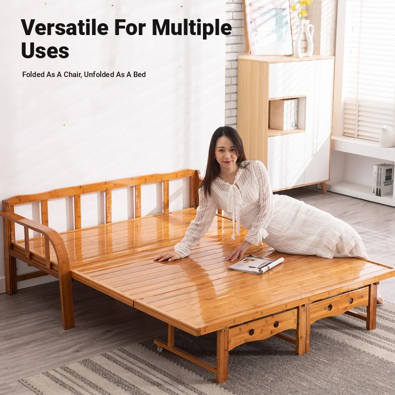 Versatile Sofa Bed for Small Spaces - Foldable Bamboo Couch for Living Room, Balcony, and Guest Use - Perfect for Singles and Couples, Economical Design