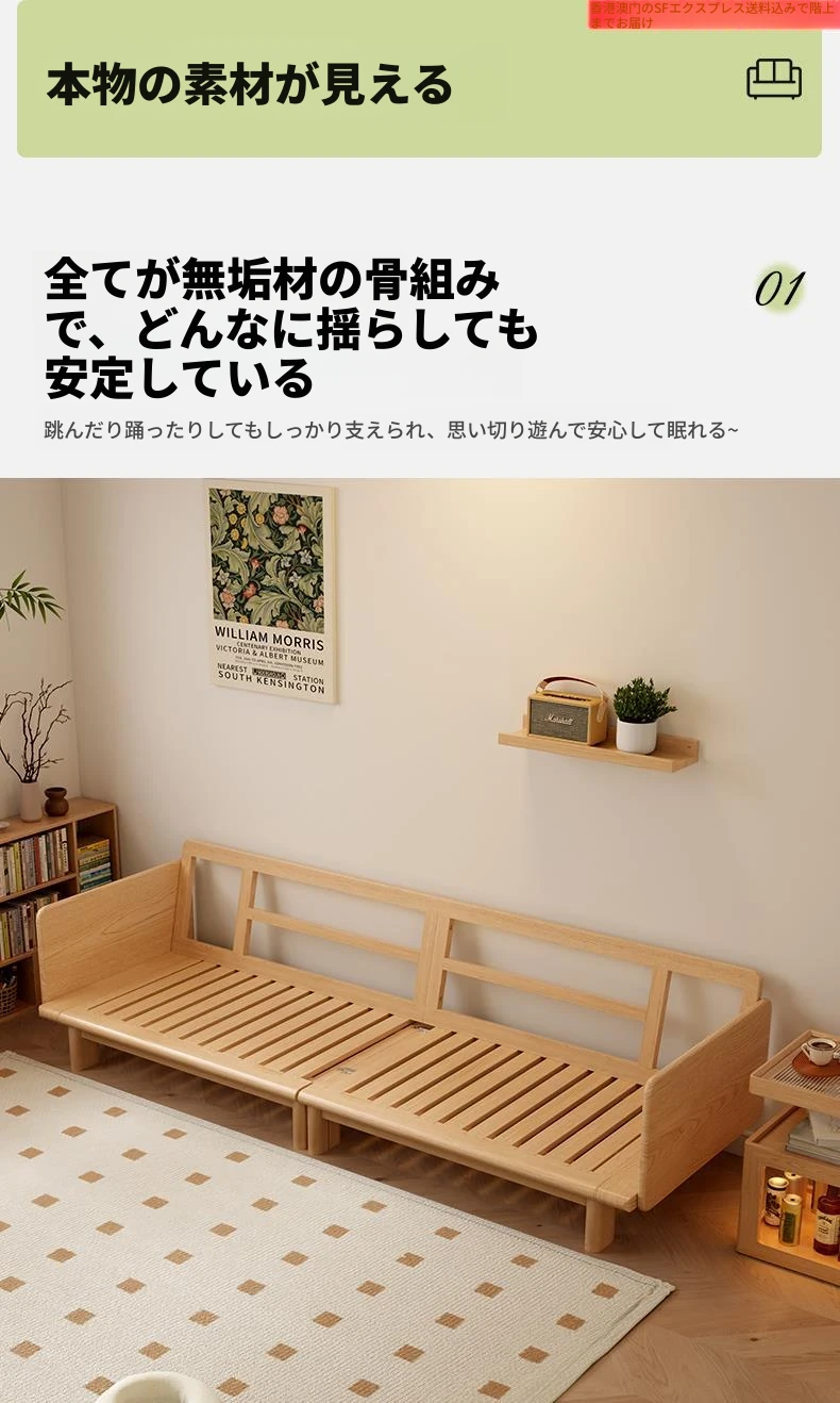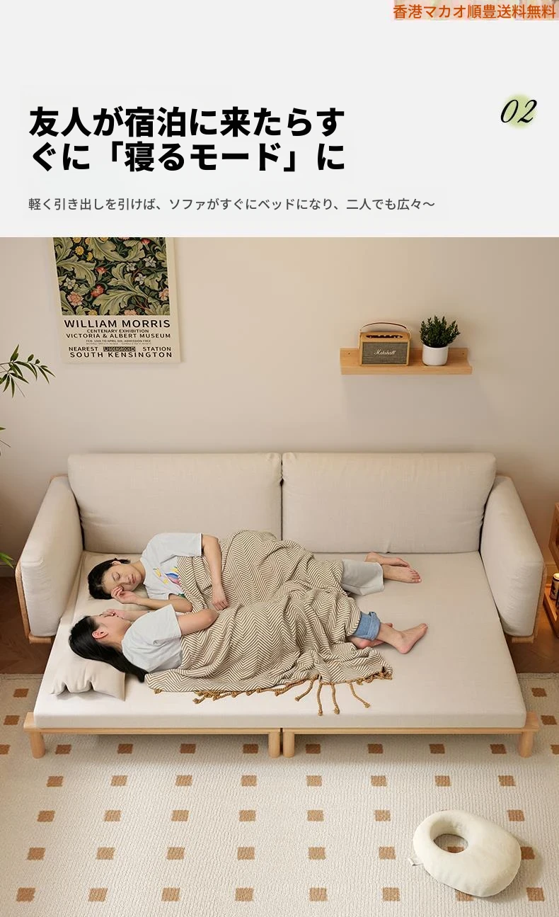 【香港製】全木製ソファベッド 2023年新作 折りたたみ式・2WAYデザイン!おしゃれなリビングにぴったりの伸縮式スリーピングソリューション!