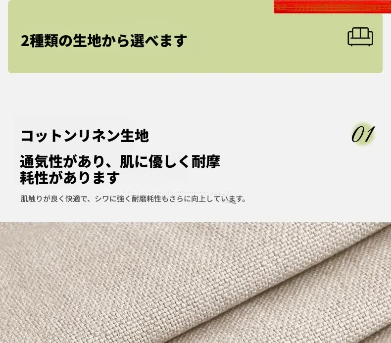 【取り外し可能なコットンリネン】2.07M二人用 アイボリー