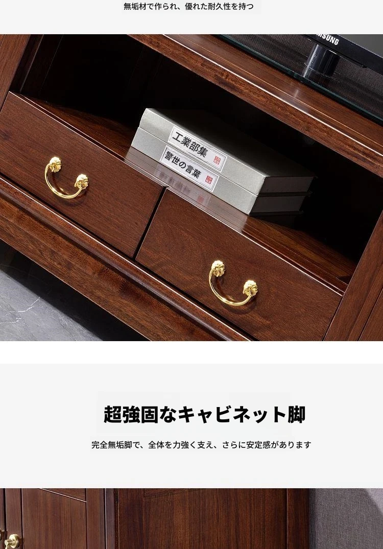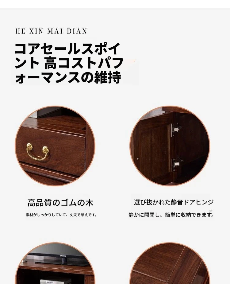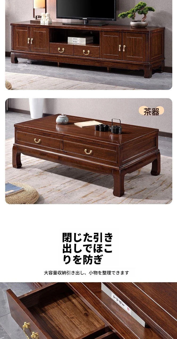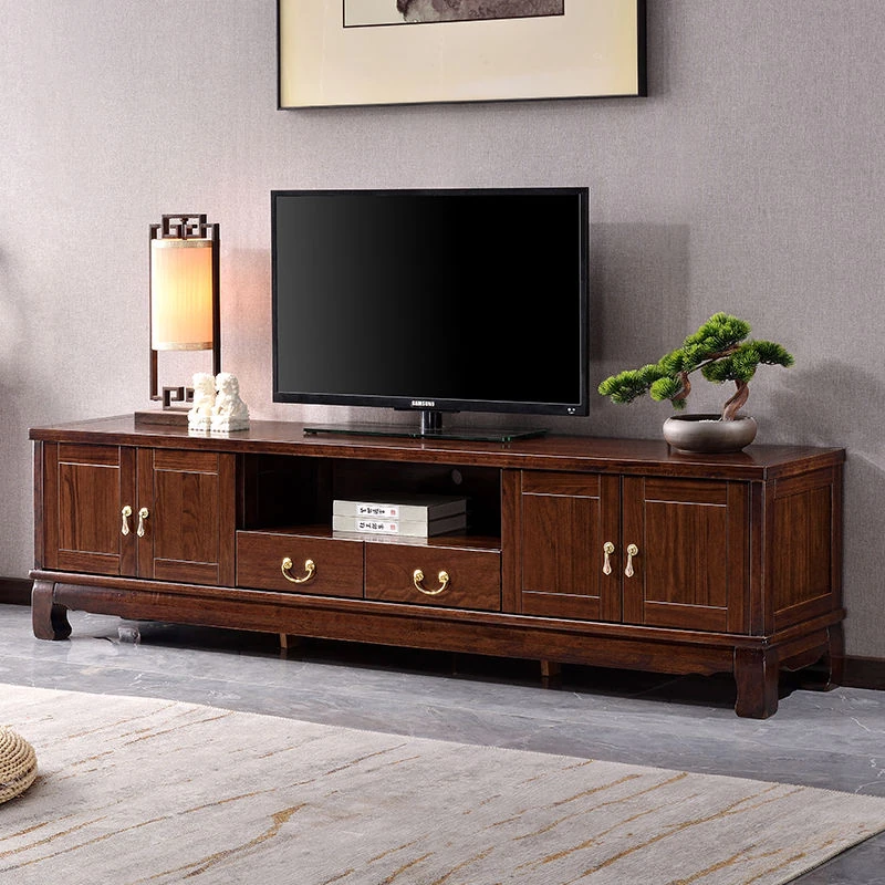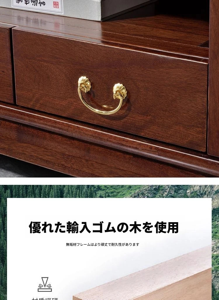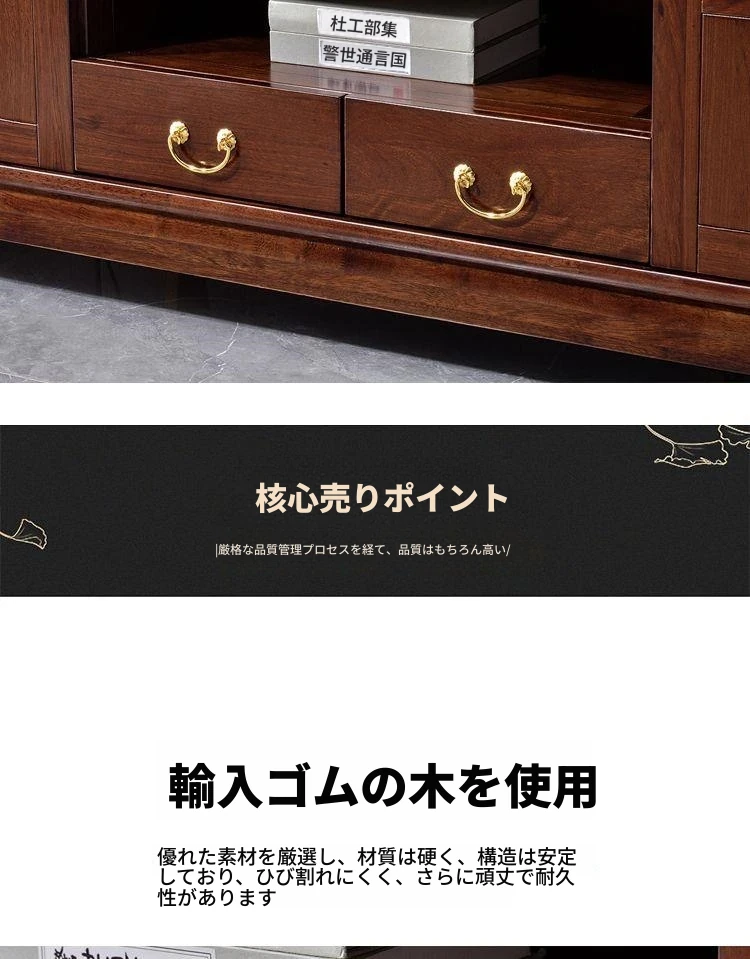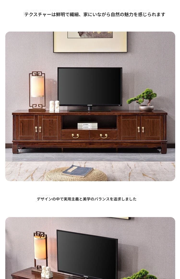 新中式高級実木テレビ台 - 2024年新作!シンプルでスタイリッシュなゴムの木製収納キャビネット。リビングルームに最適な一体型デザインで、使い勝手抜群!おしゃれで機能的な空間を演出します。