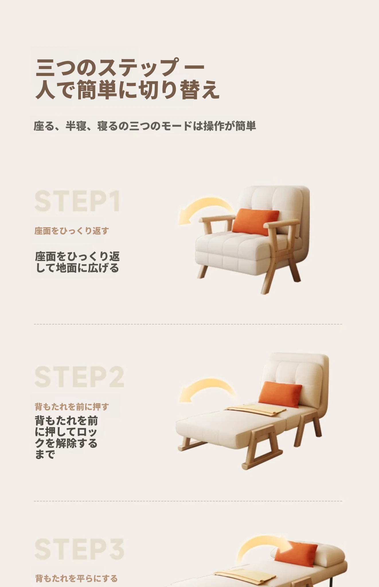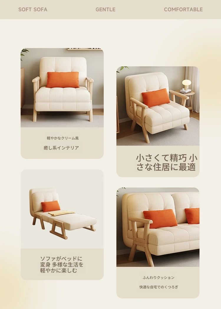 2024年新作!コンパクトな和風ソファベッド - 折りたたみ式で多機能、小さなリビングやバルコニーに最適な一人用ソファ!スタイリッシュなデザインで、お部屋をおしゃれに演出します。