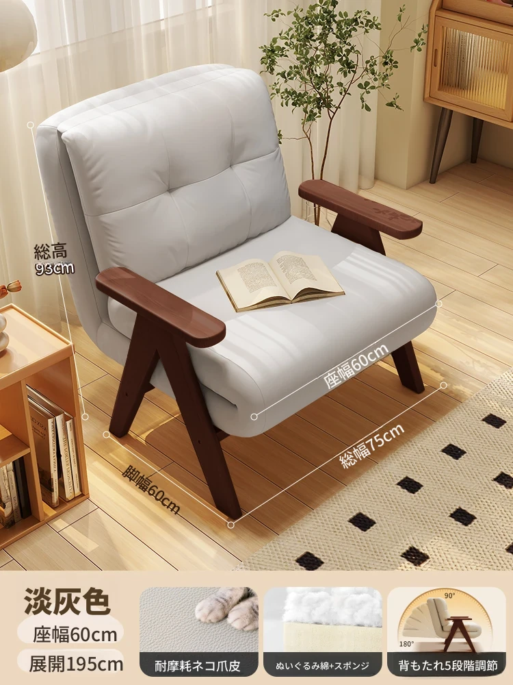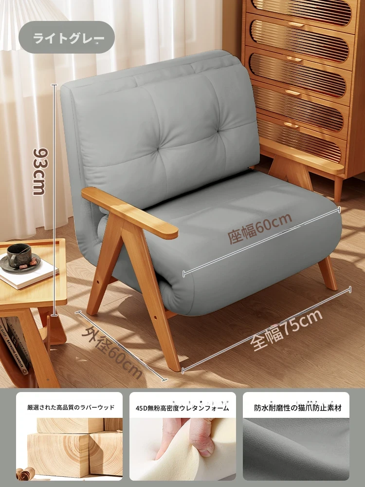 75*195cmソファベッド【ライトグレーキャットクロー】