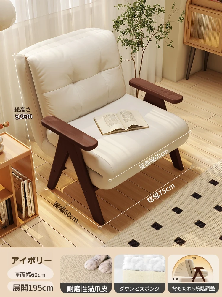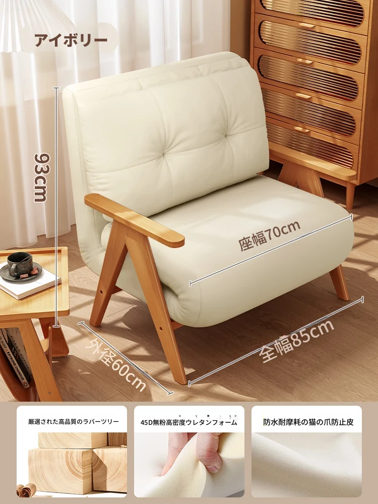75*195cmソファベッド【アイボリーキャットクロー】ウォールナット