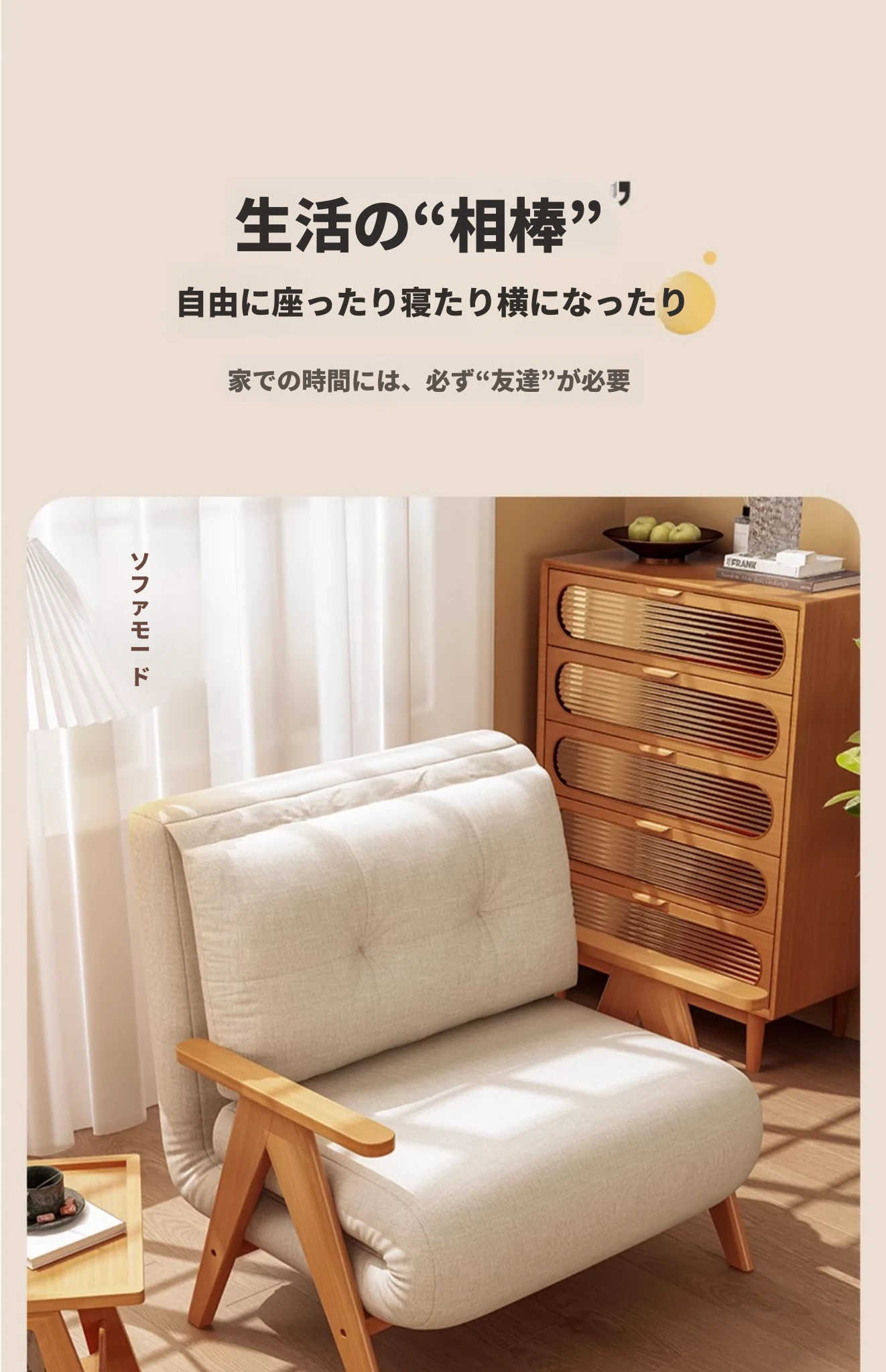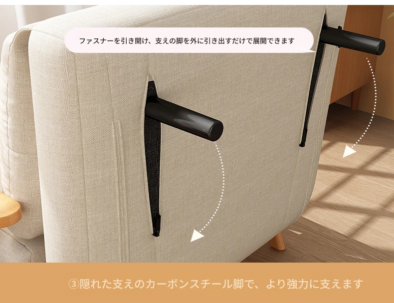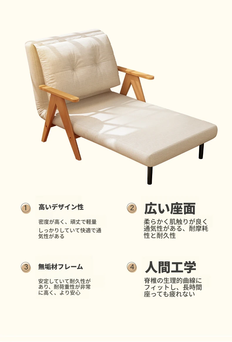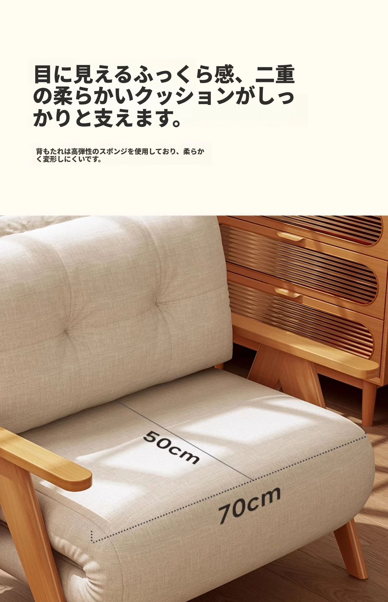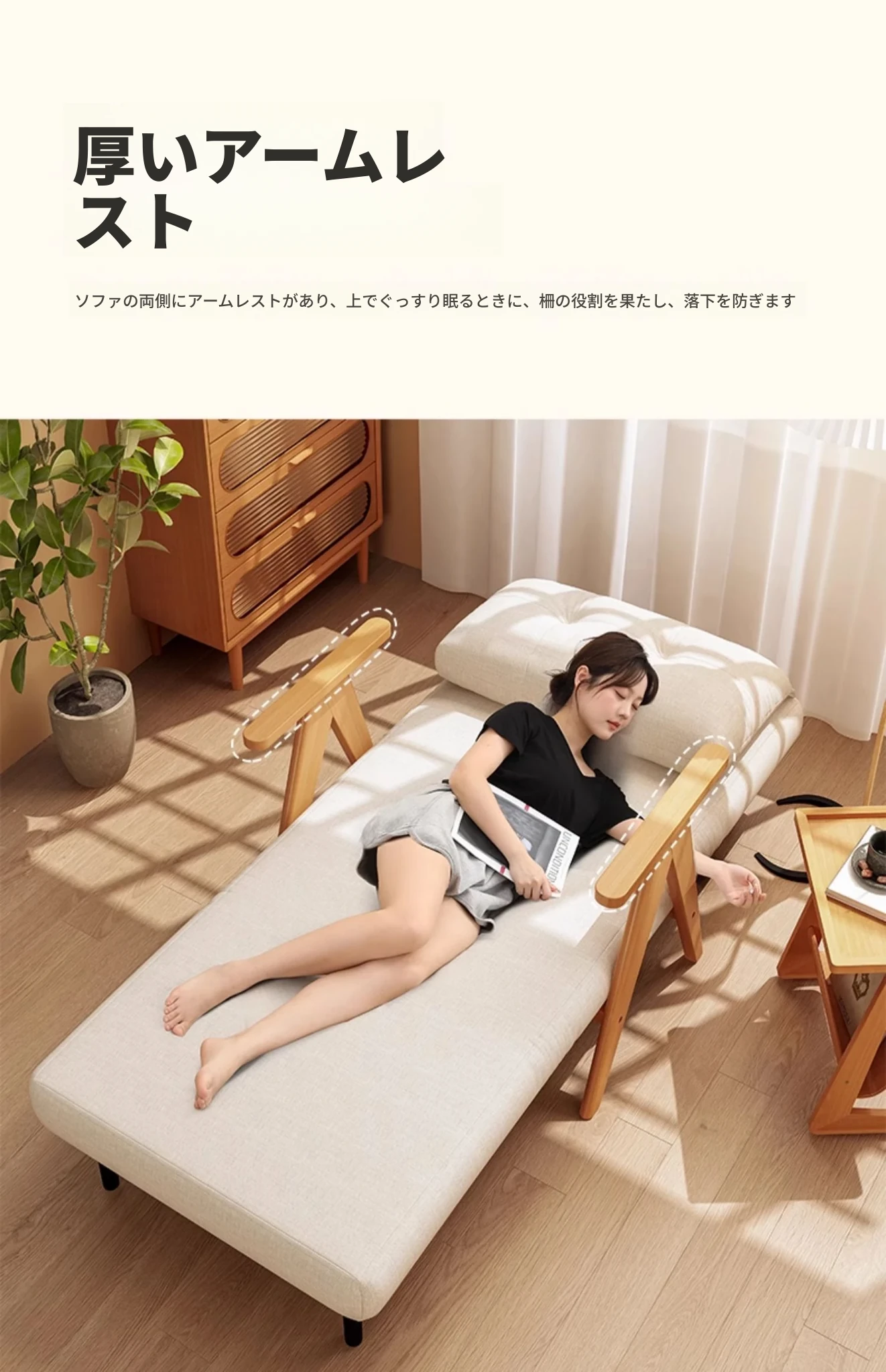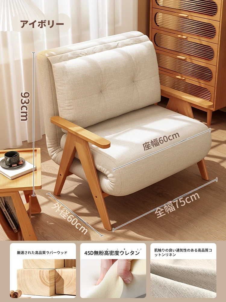 75*195cmソファベッド【アイボリーコットンリネン】ウォールナット