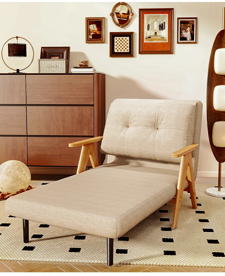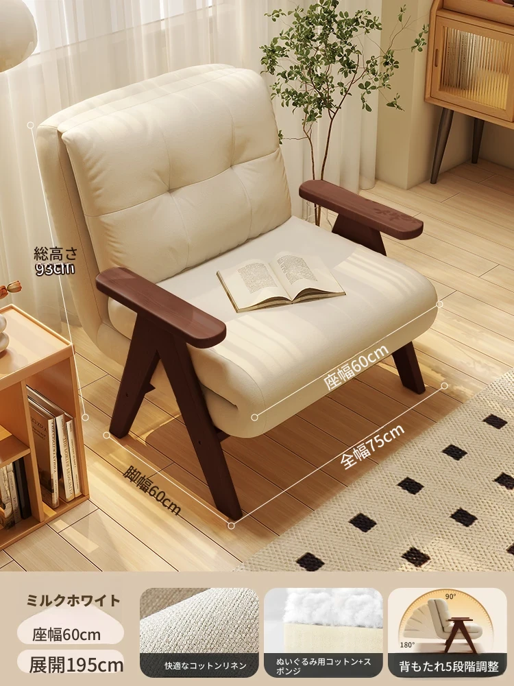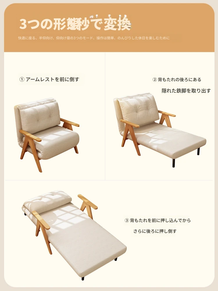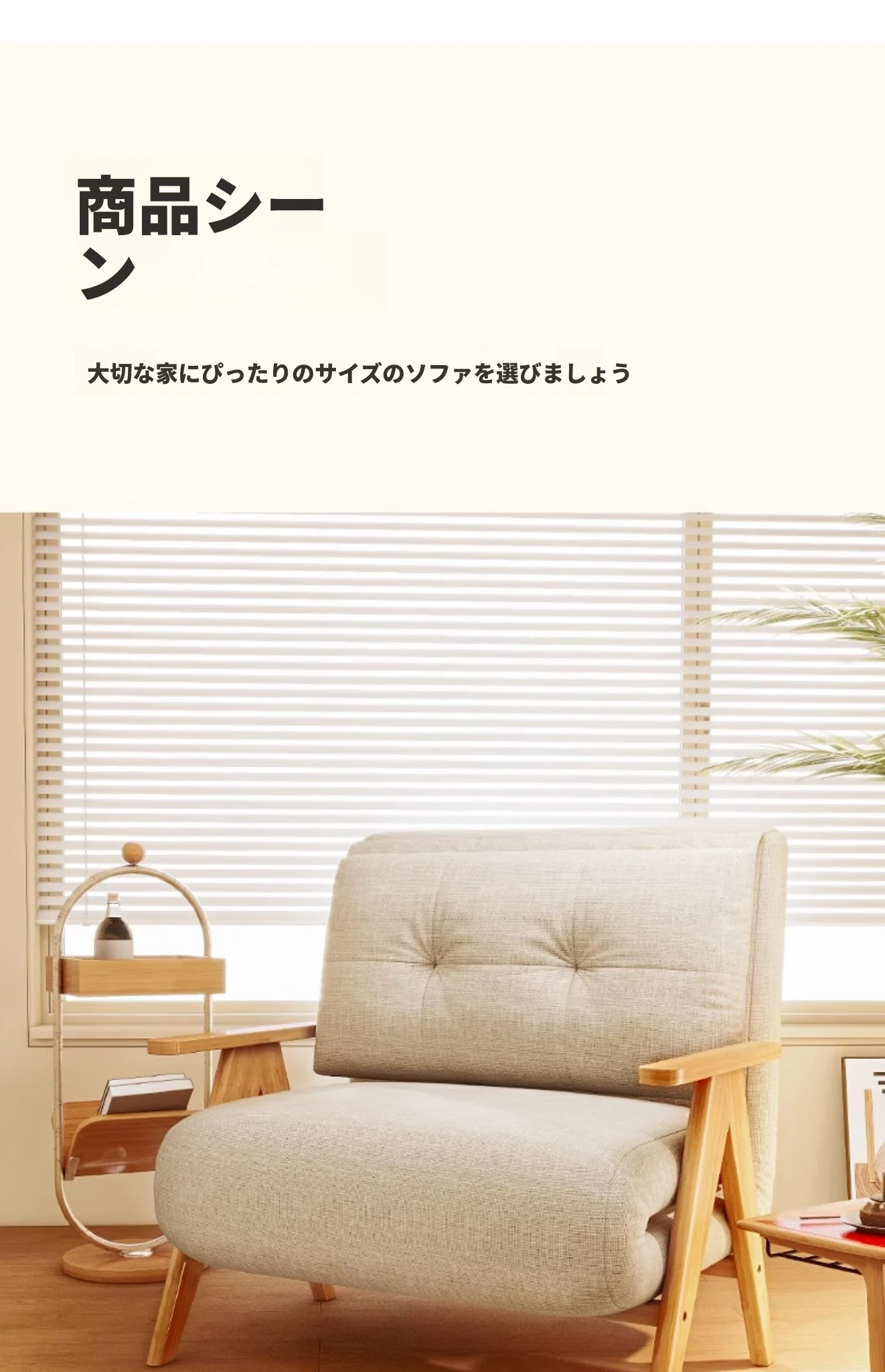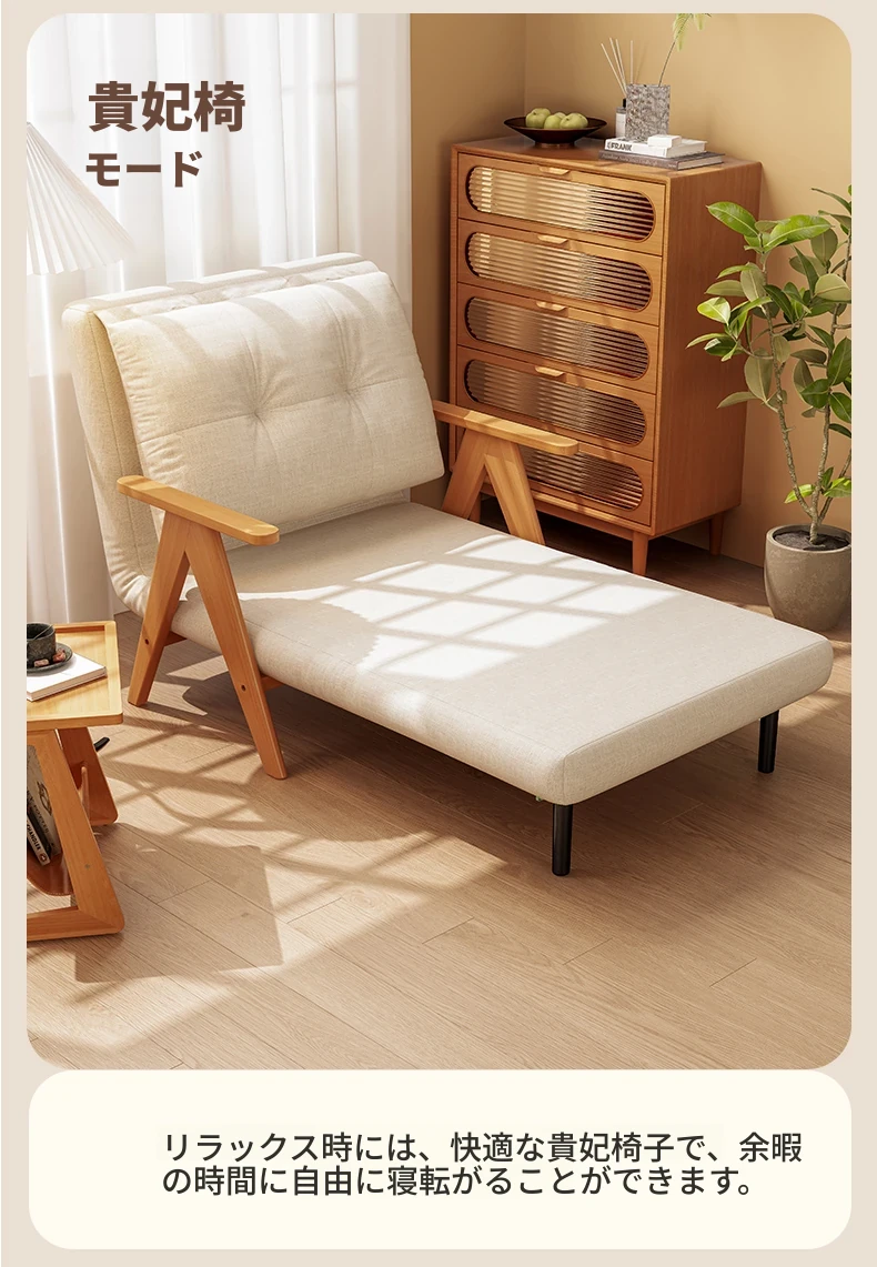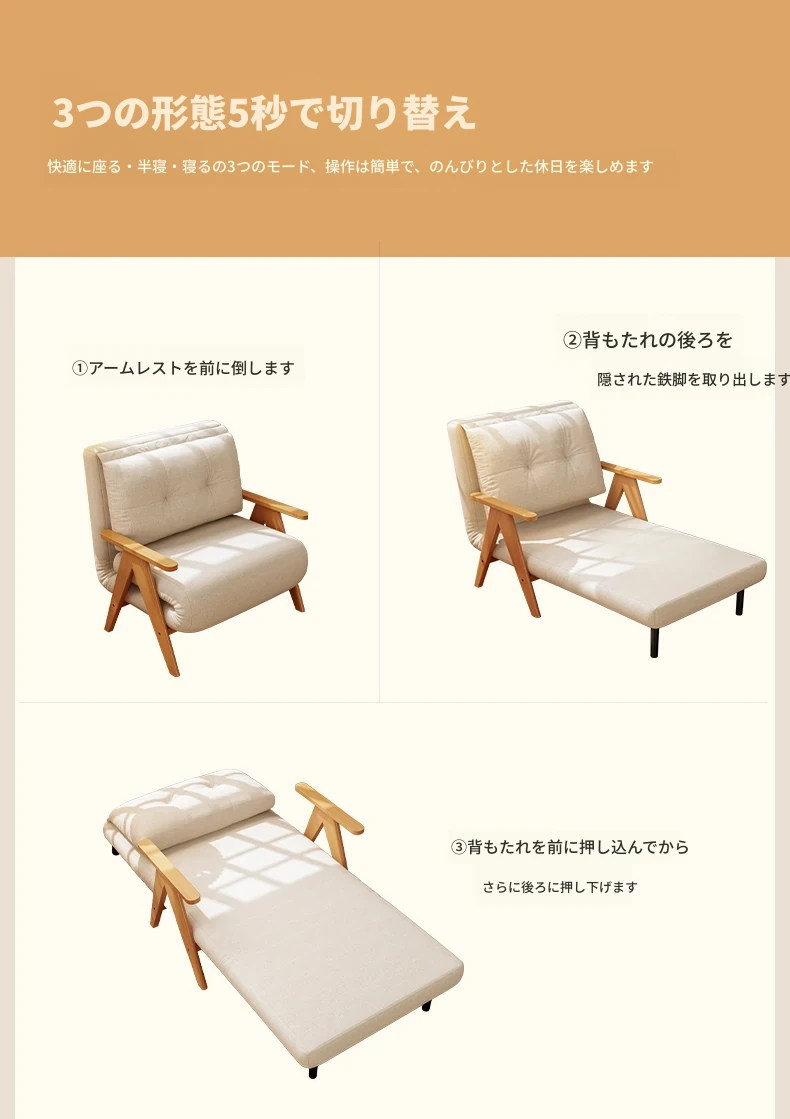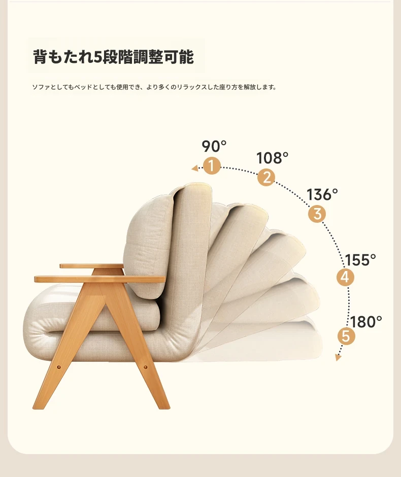 75*195cmソファベッド【アイボリーコットンリネン】ウォールナット
