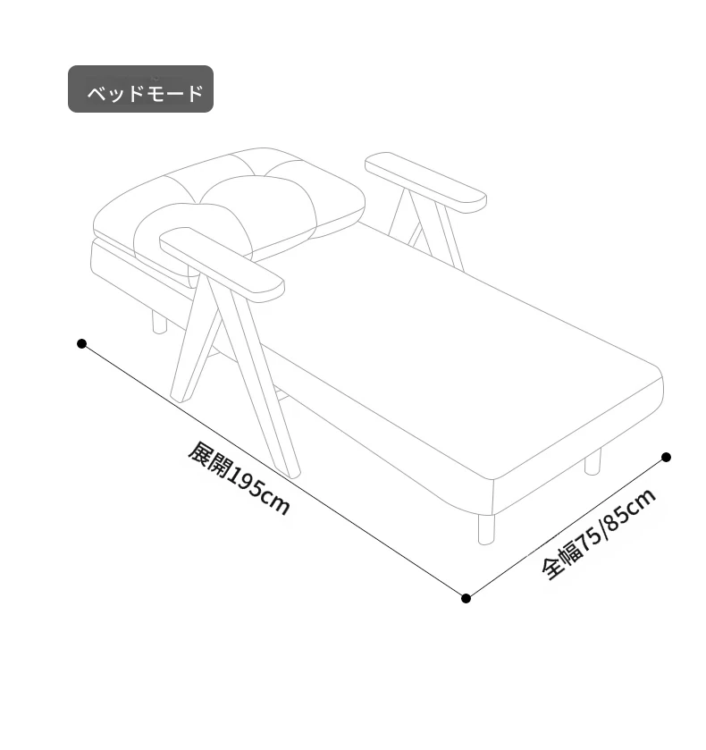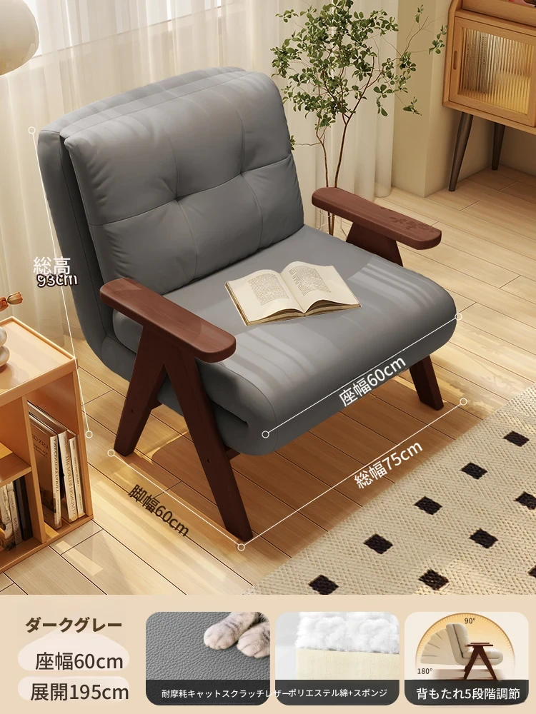 75*195cmソファベッド【ダークグレーキャットクロー】