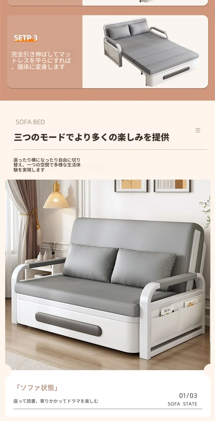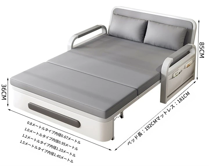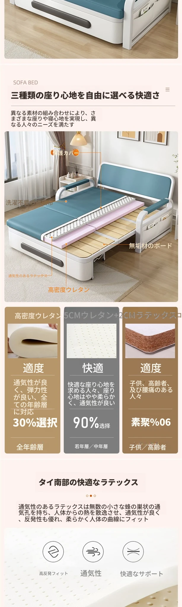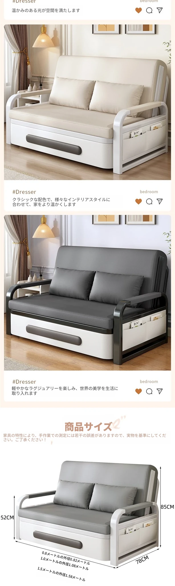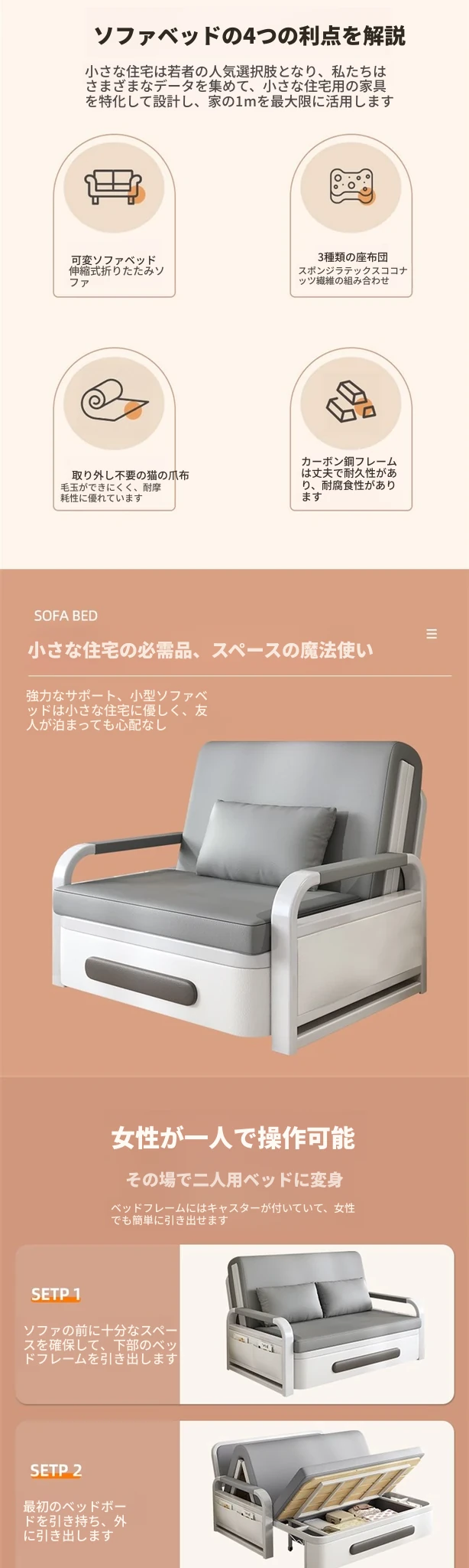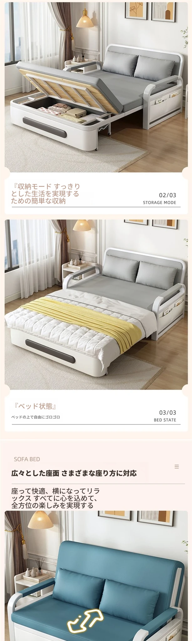 2024年新作!折りたたみソファベッド - 小型バルコニーに最適な多機能ベッド!収納スペース付きで、二人用の伸縮式デザイン。限られた空間でも快適に使える、インスタ映えするおしゃれなアイテム!