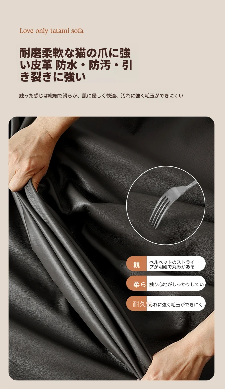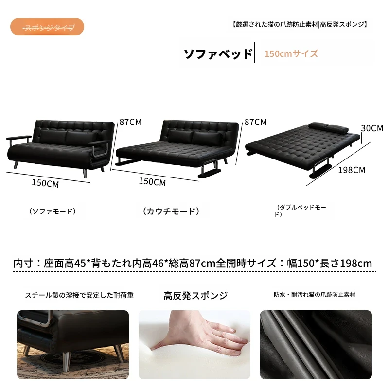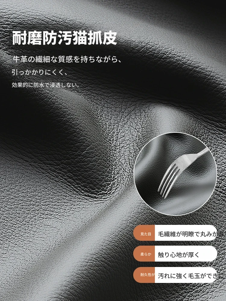 【総丈150CM】クラシックブラック-キャットグラブレザー-クッション2個付き
