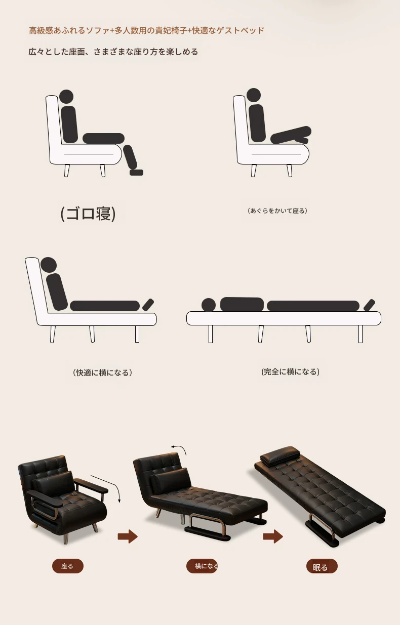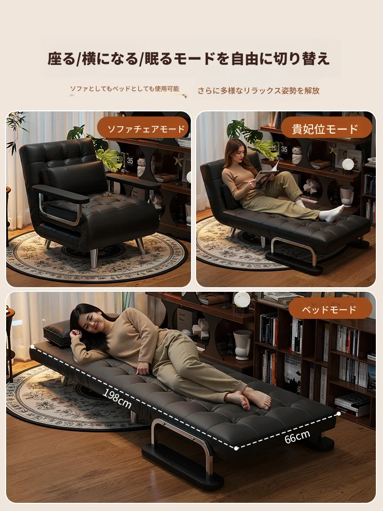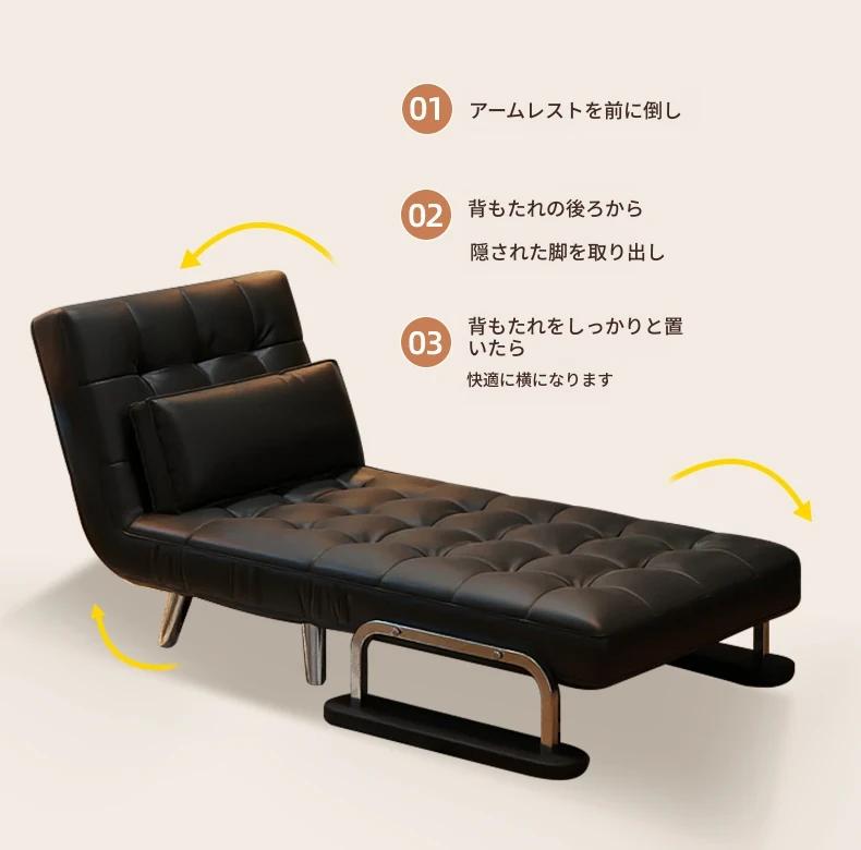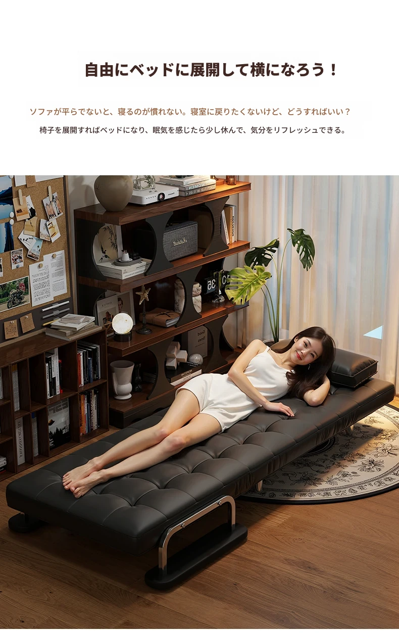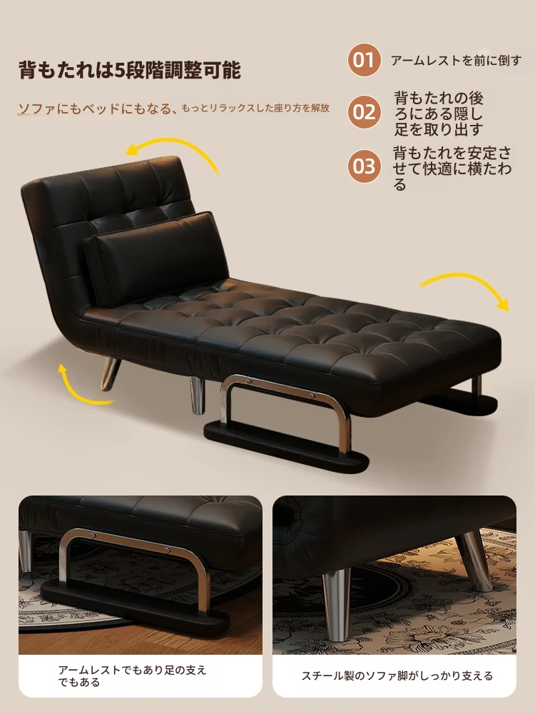 2025年新作!折りたたみソファベッド - 1人用・小型スペースに最適!伸縮可能なモダンデザイン、クラシックな黒色でおしゃれな宿泊用ソファ。お部屋をスタイリッシュに演出!