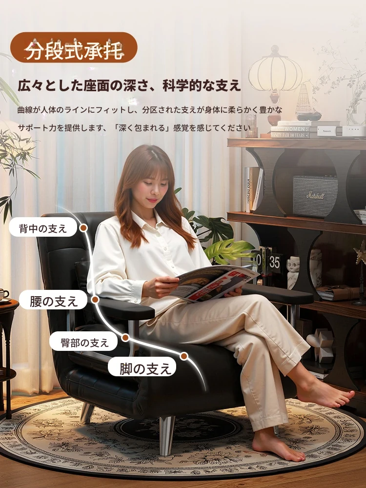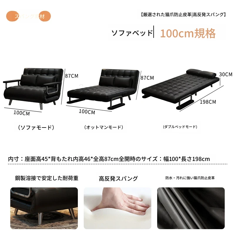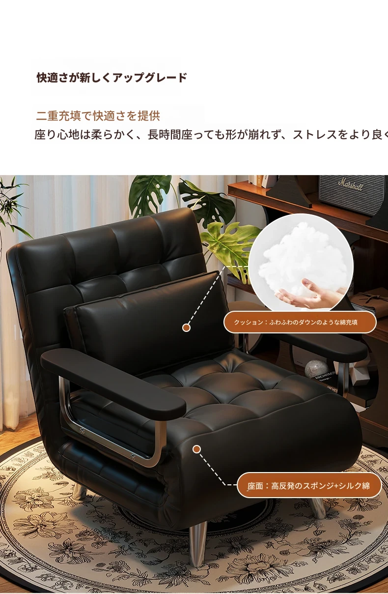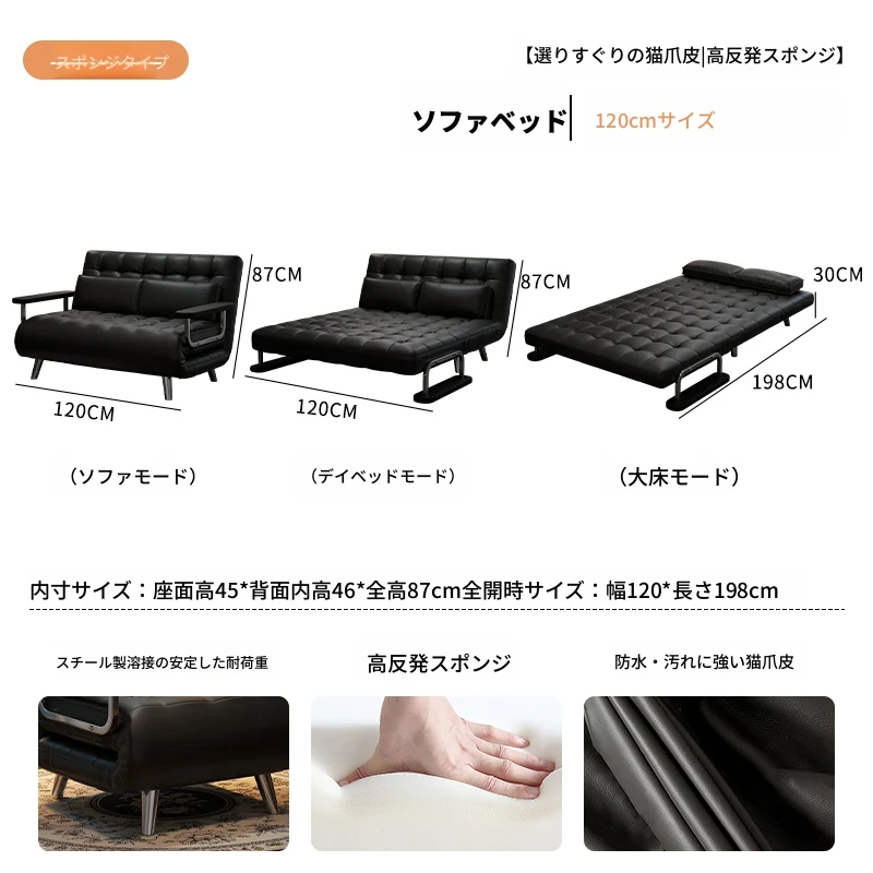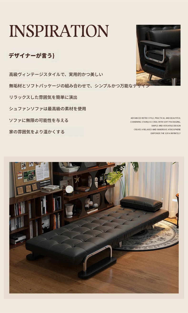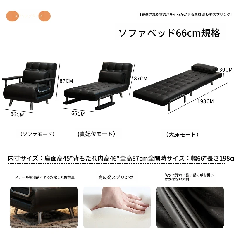 2025年新作!折りたたみソファベッド - 1人用・小型スペースに最適!伸縮可能なモダンデザイン、クラシックな黒色でおしゃれな宿泊用ソファ。お部屋をスタイリッシュに演出!