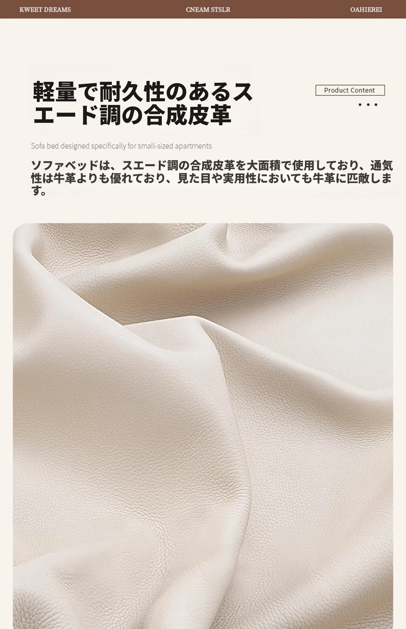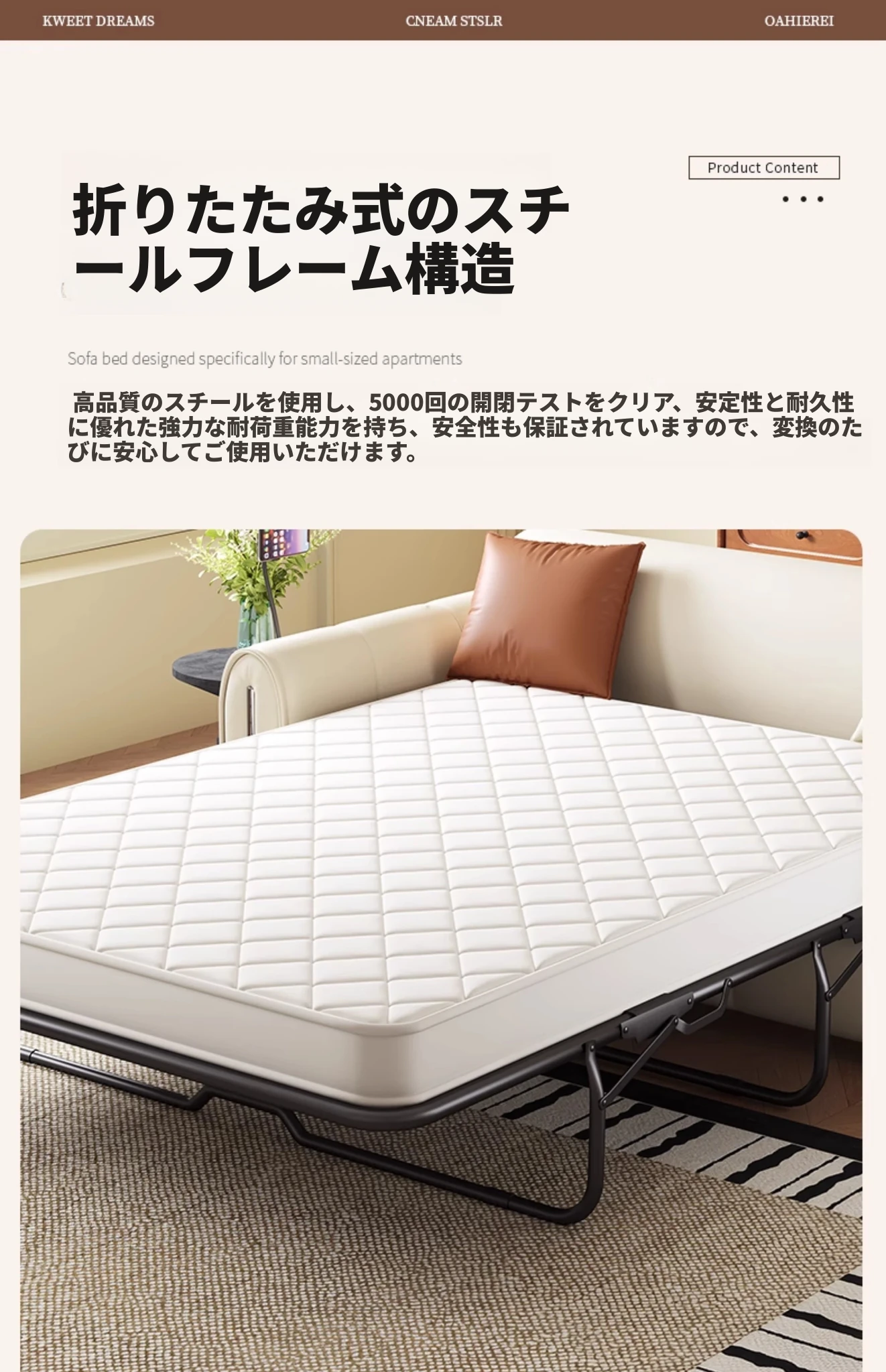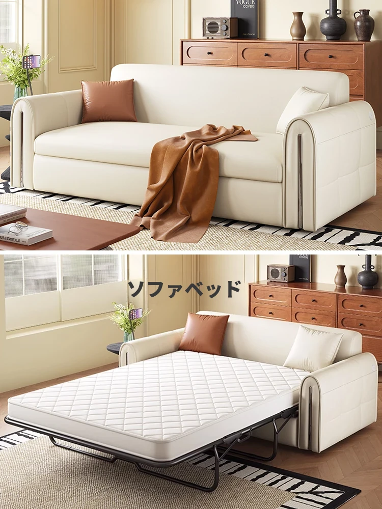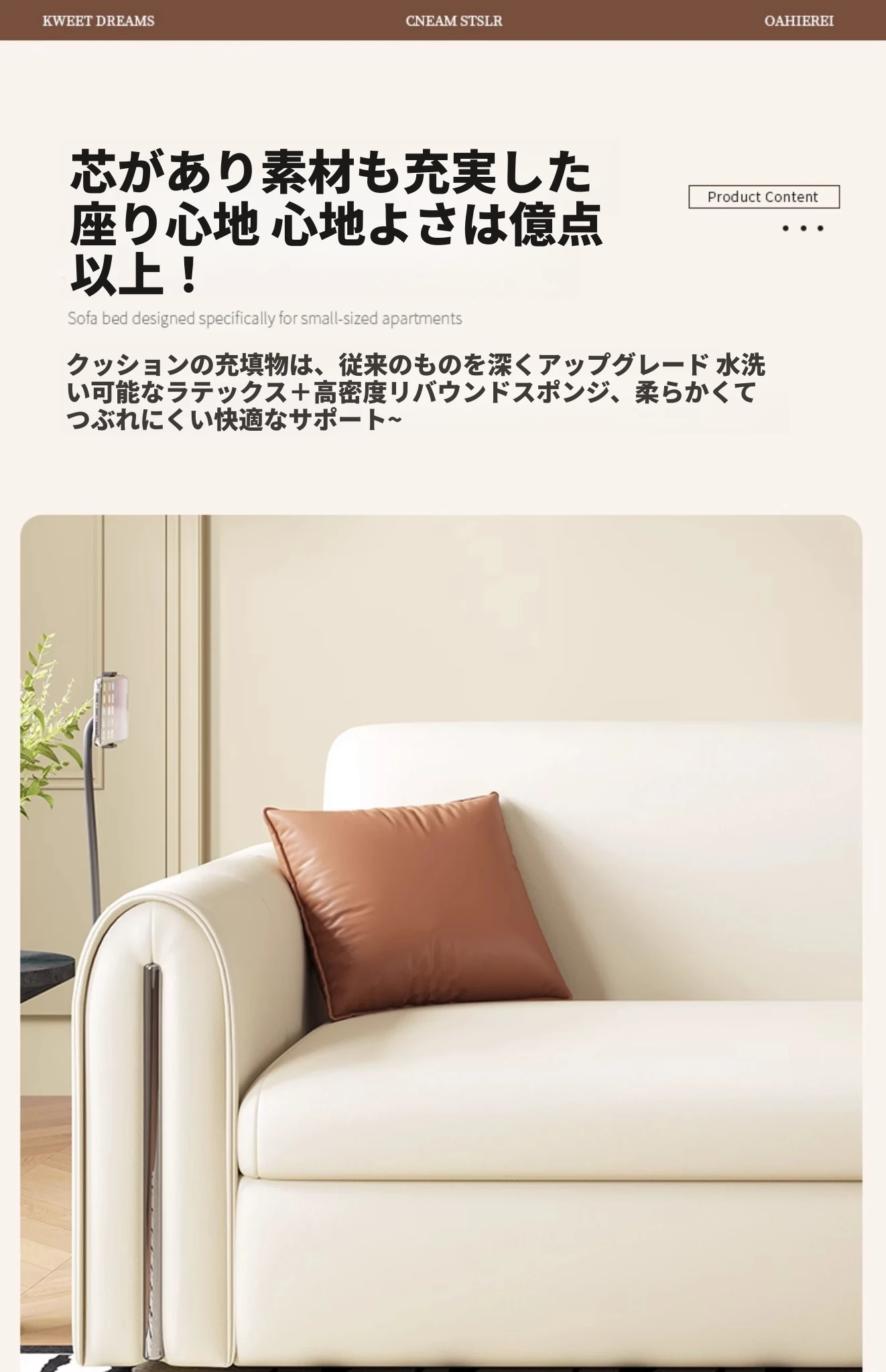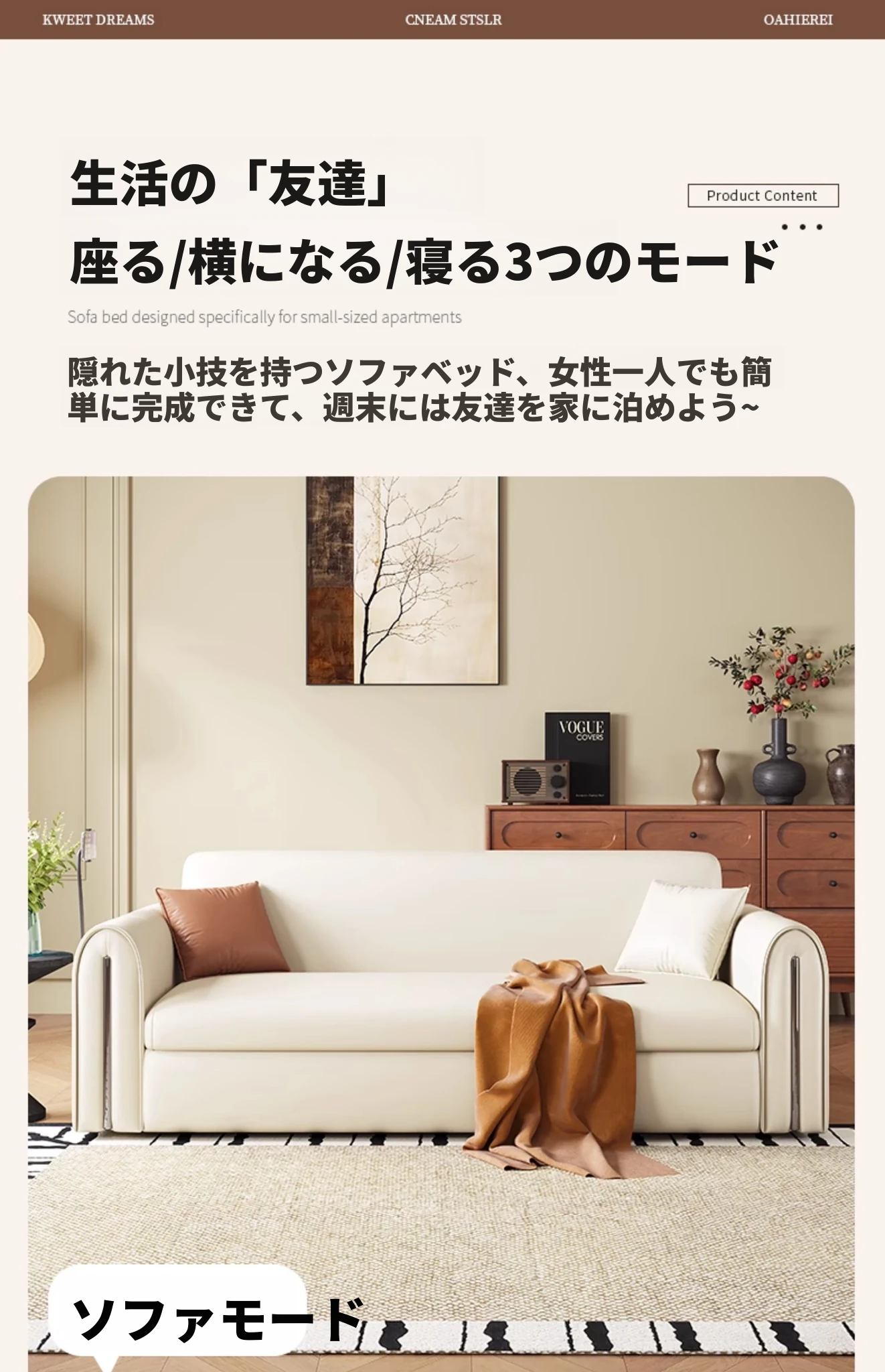 【香港送料無料】海設云造クリーム風折りたたみソファベッド - 小型スペースに最適なリビングルーム用、引き出し式で便利な2WAYデザイン!