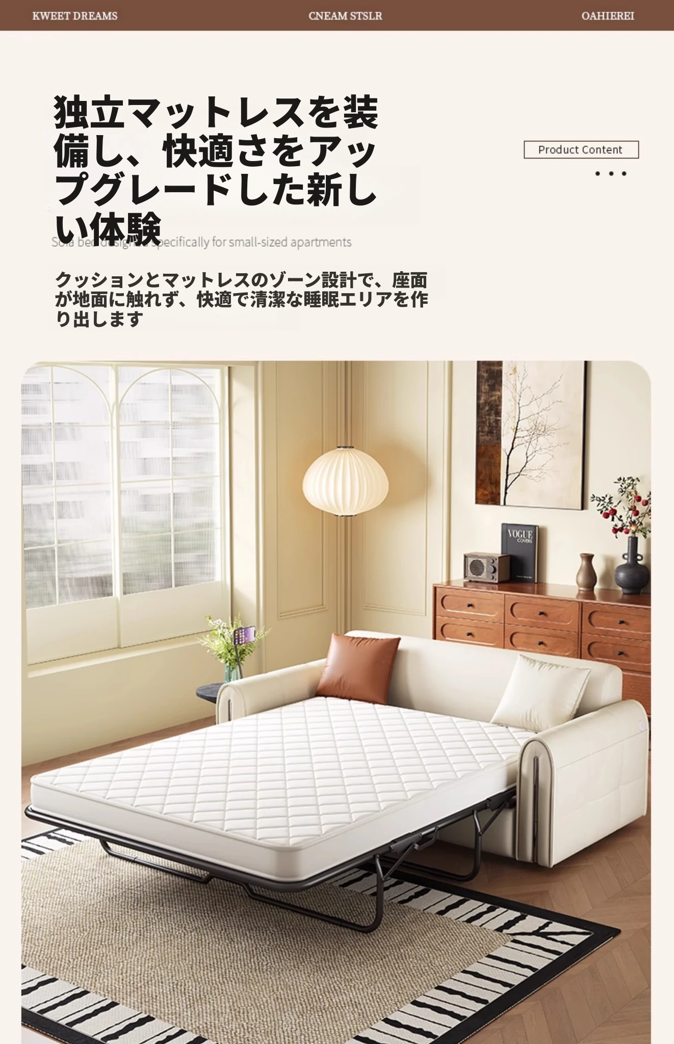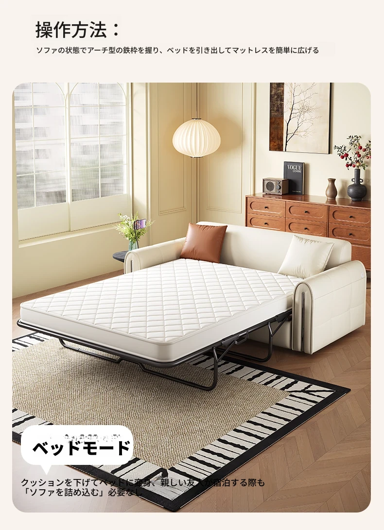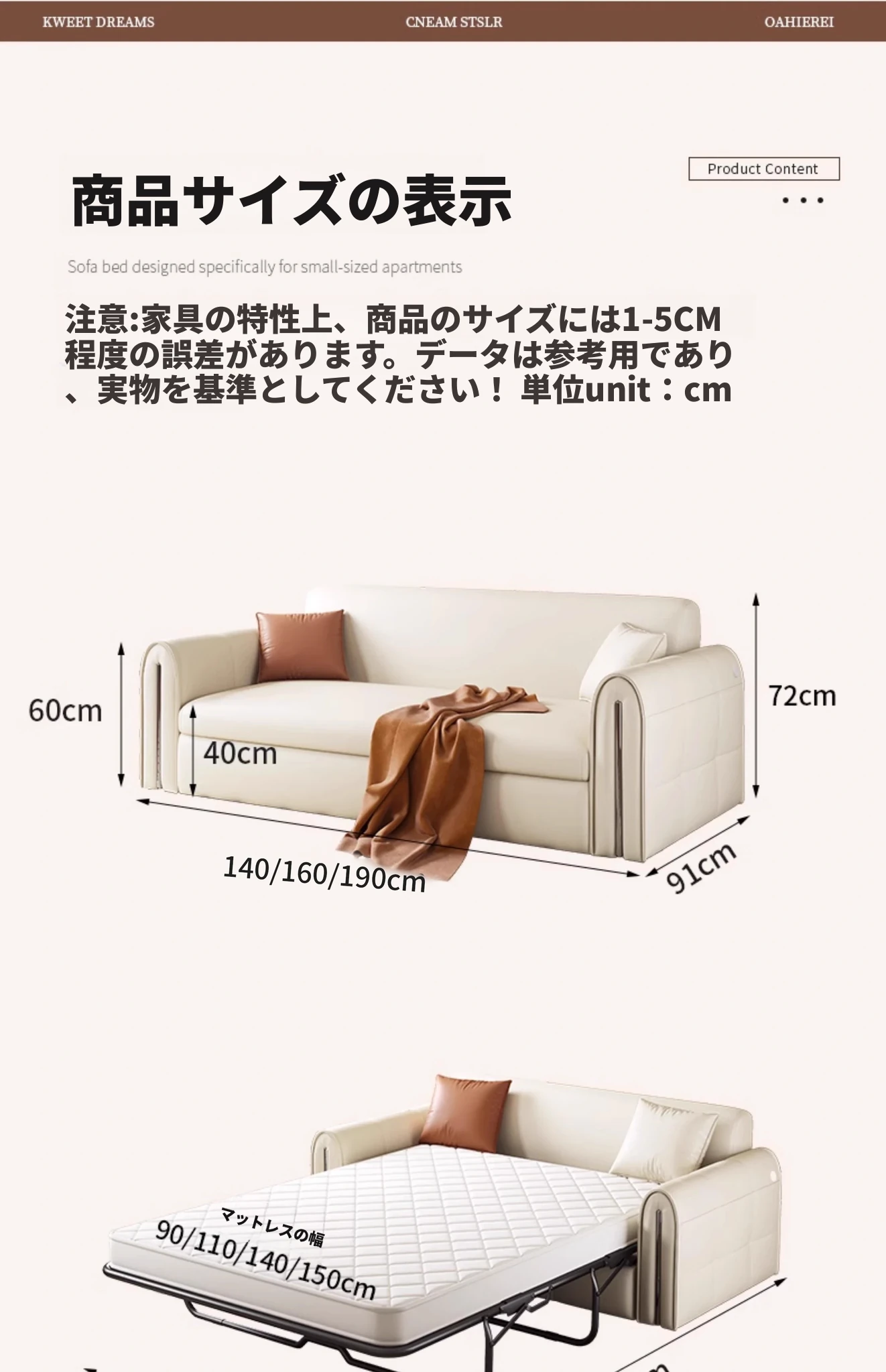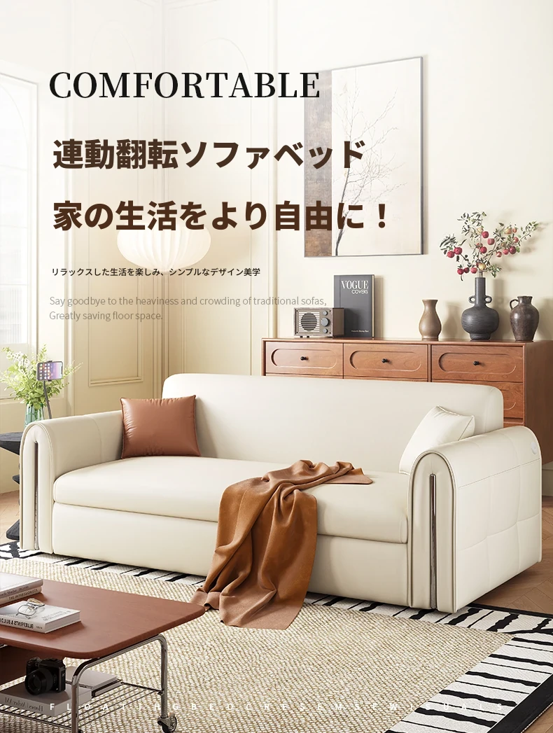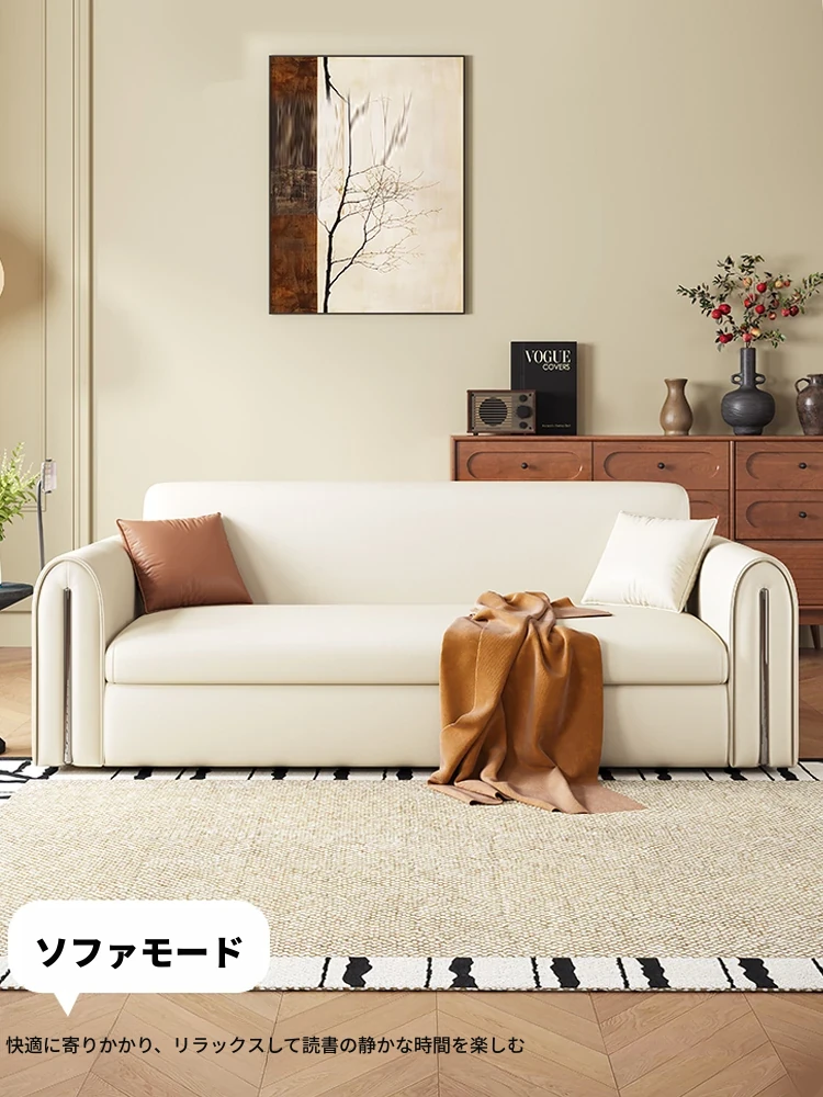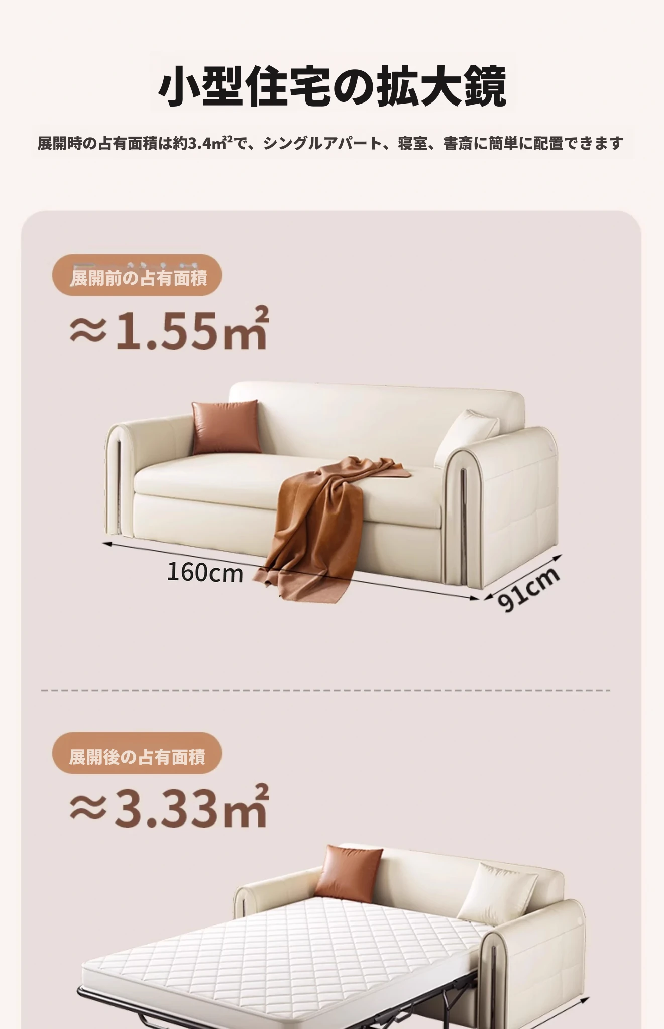 【香港送料無料】海設云造クリーム風折りたたみソファベッド - 小型スペースに最適なリビングルーム用、引き出し式で便利な2WAYデザイン!