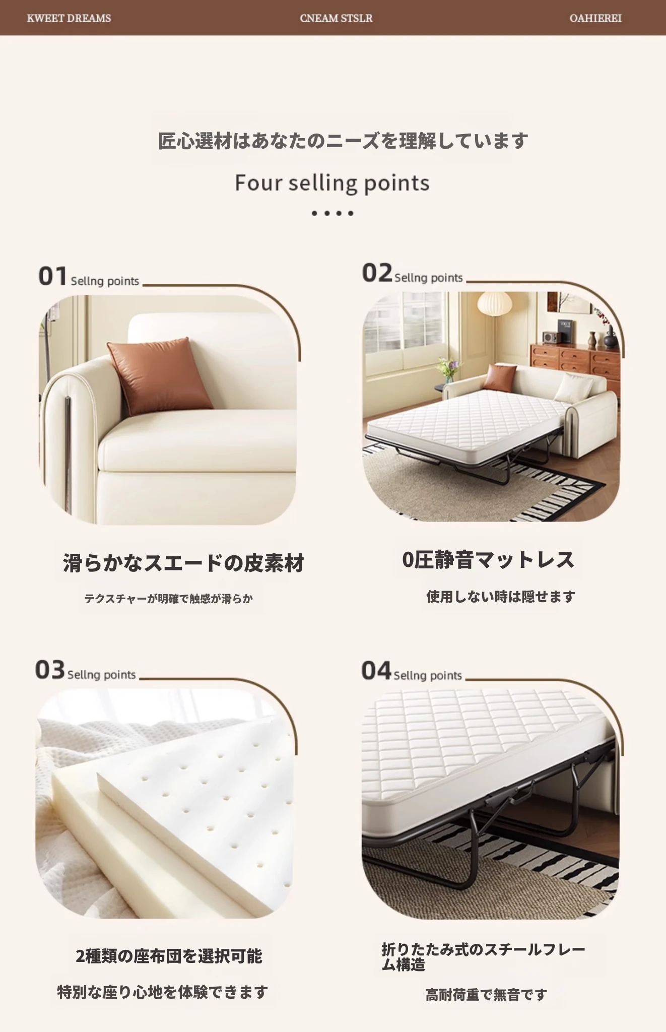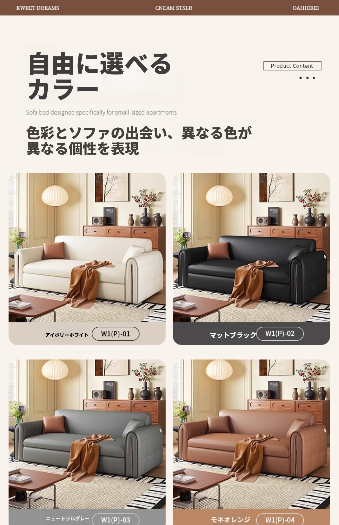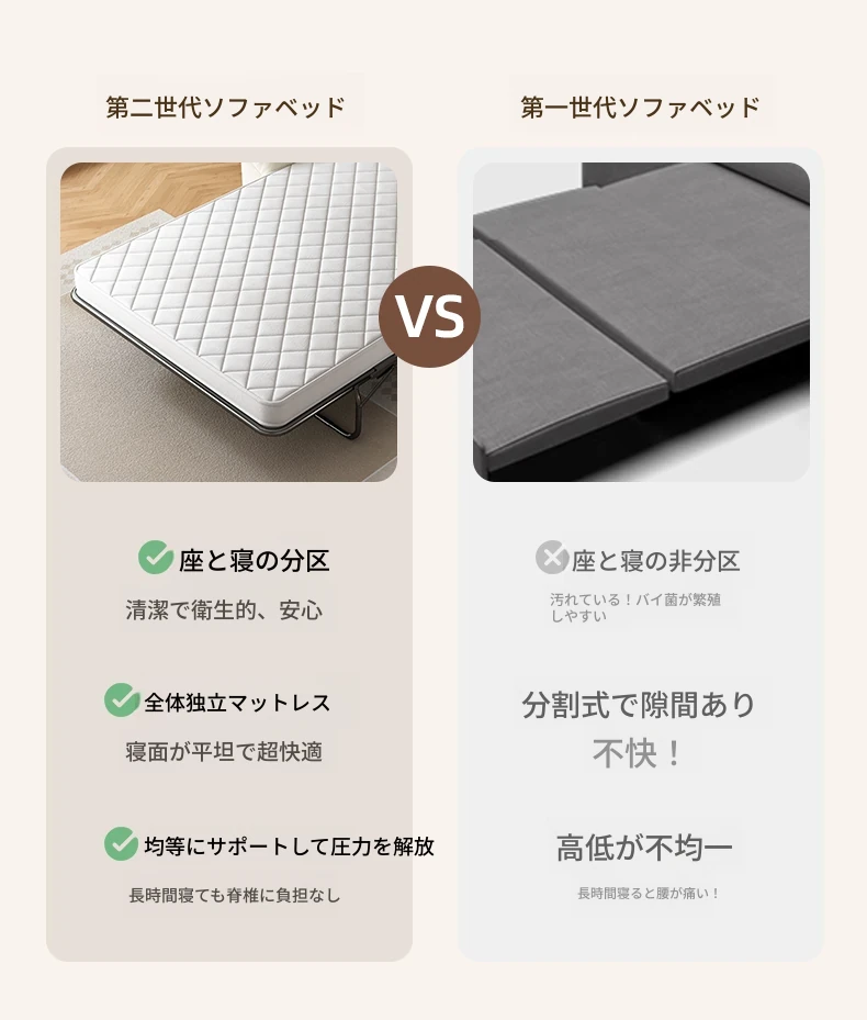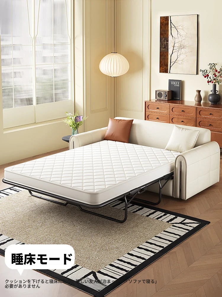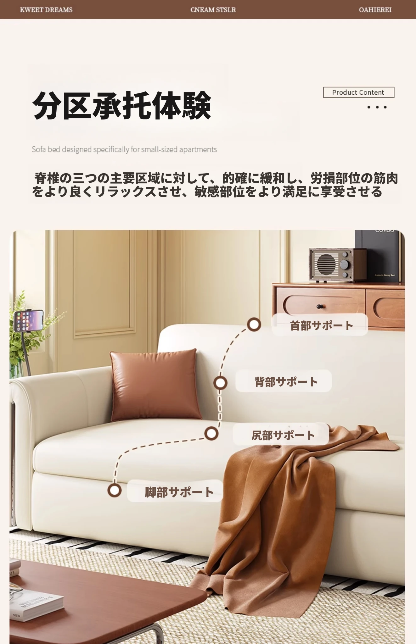 【香港送料無料】海設云造クリーム風折りたたみソファベッド - 小型スペースに最適なリビングルーム用、引き出し式で便利な2WAYデザイン!