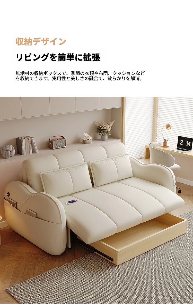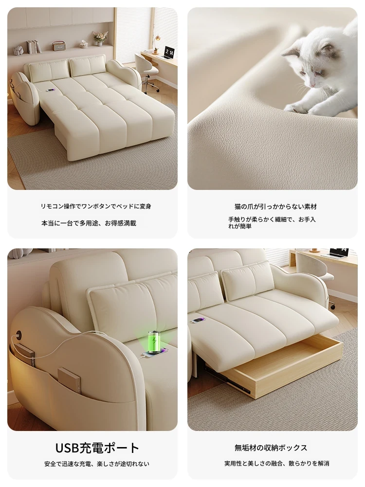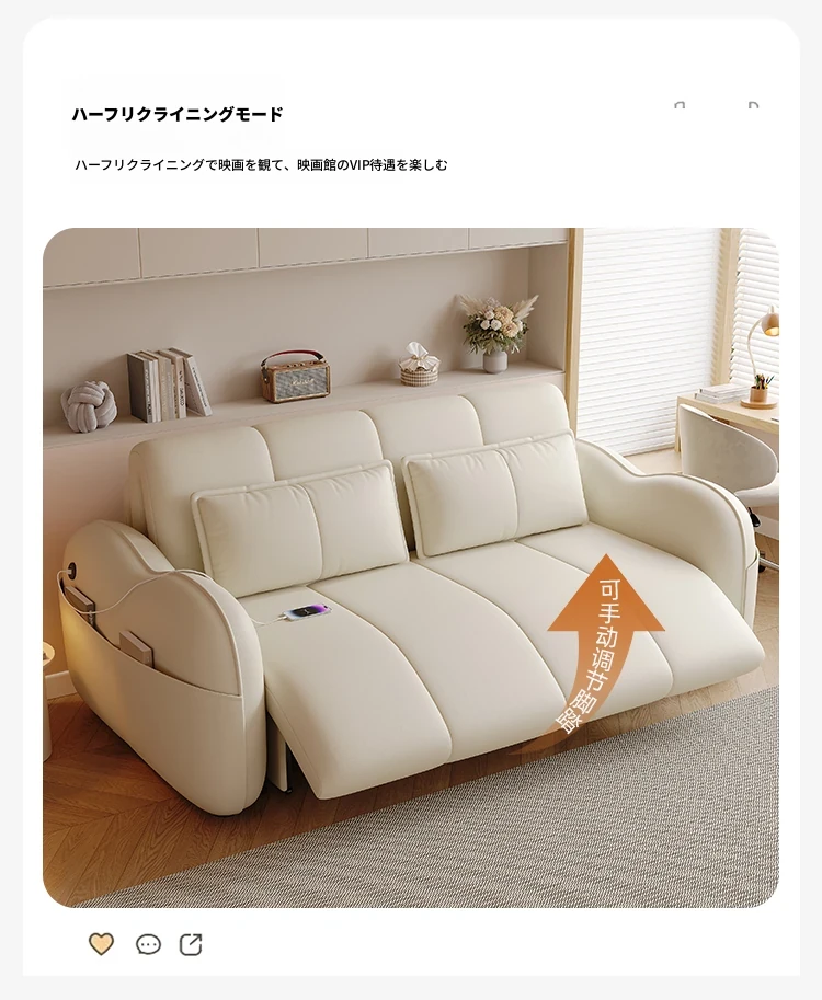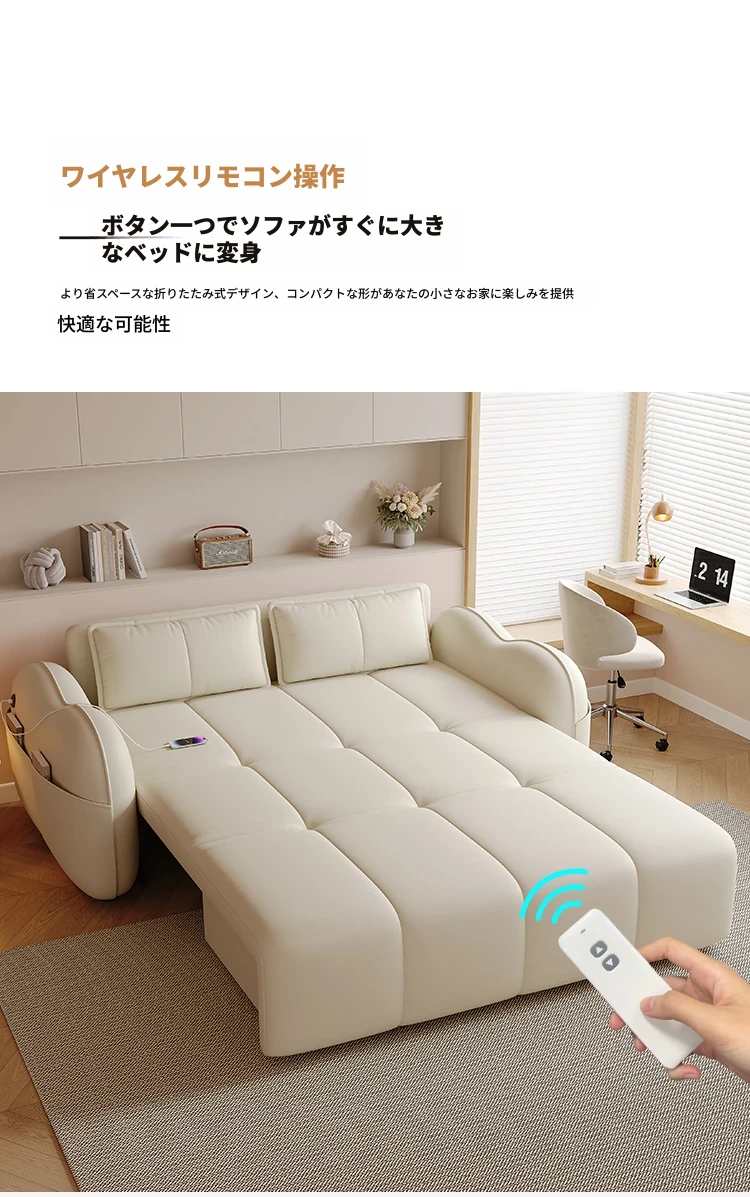 2025年新款電動リクライニングソファベッド!折りたたみ式で狭い部屋にも最適な一体型マルチ機能全自動伸縮ベッド。快適な睡眠とリラックスタイムを実現!
