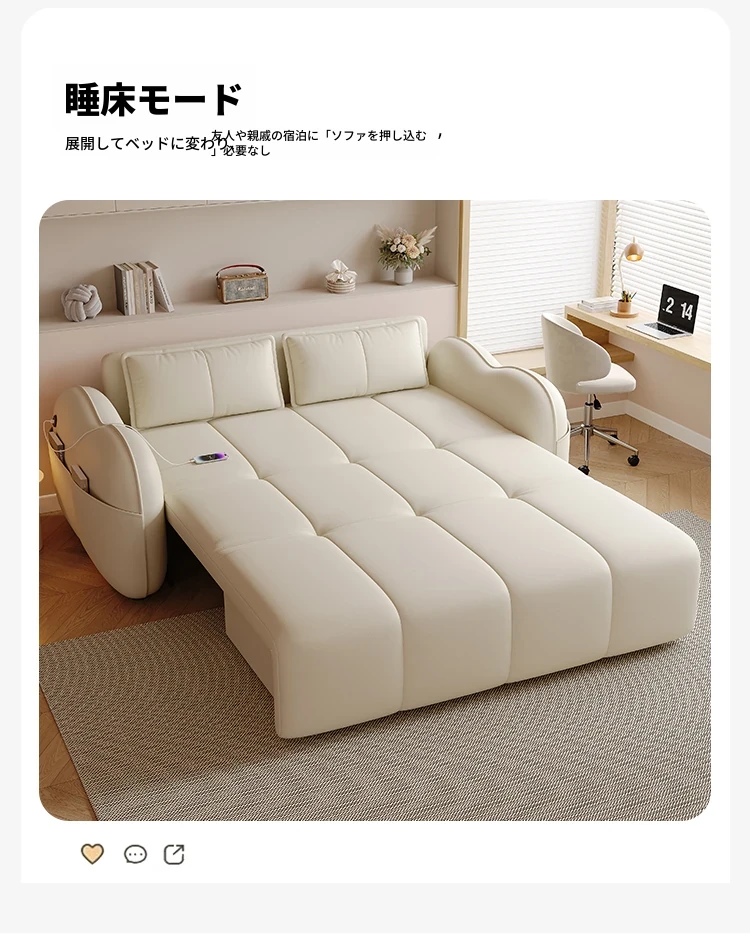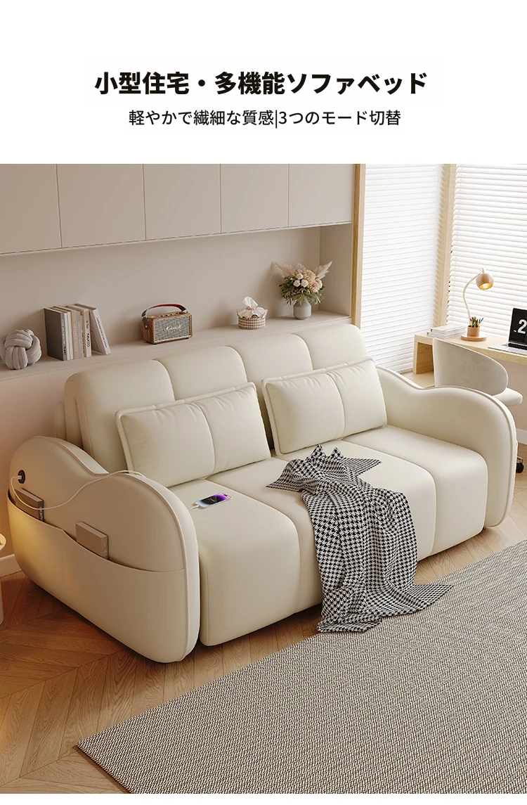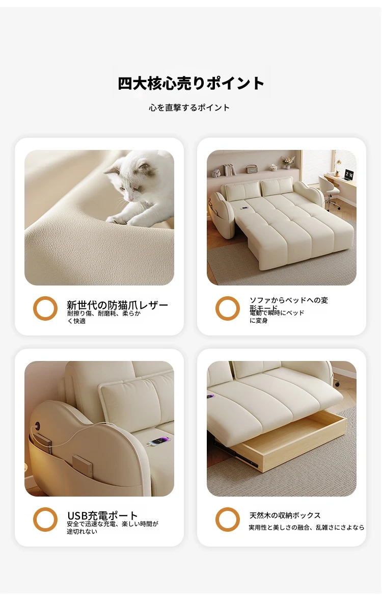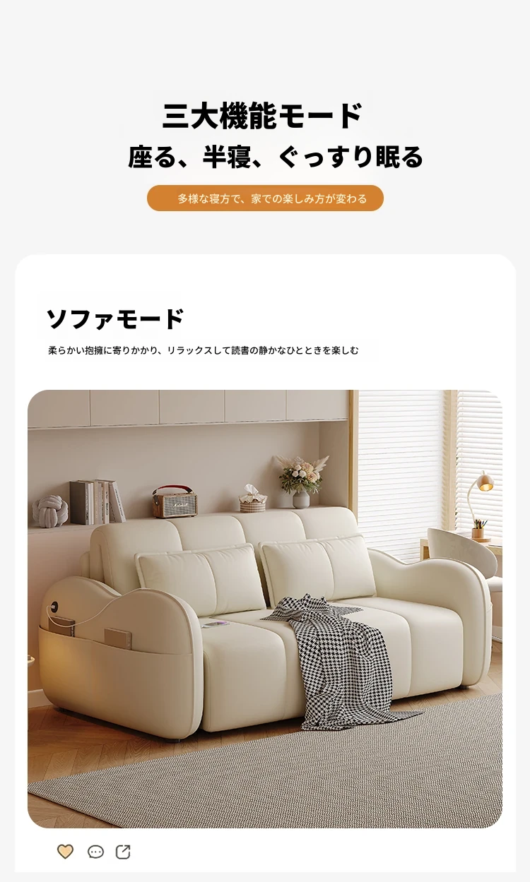 2025年新款電動リクライニングソファベッド!折りたたみ式で狭い部屋にも最適な一体型マルチ機能全自動伸縮ベッド。快適な睡眠とリラックスタイムを実現!