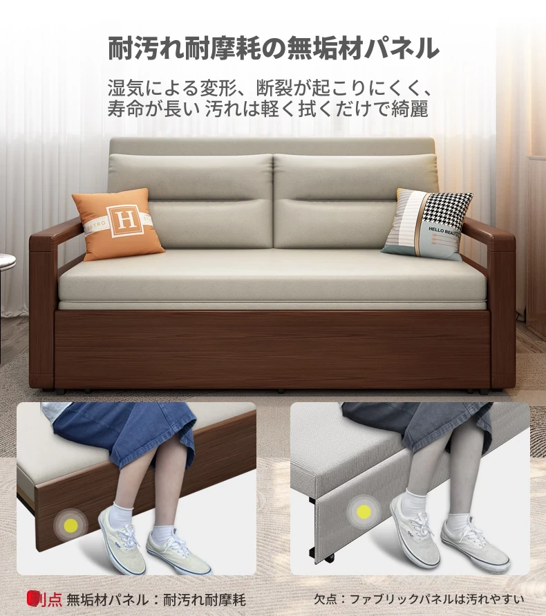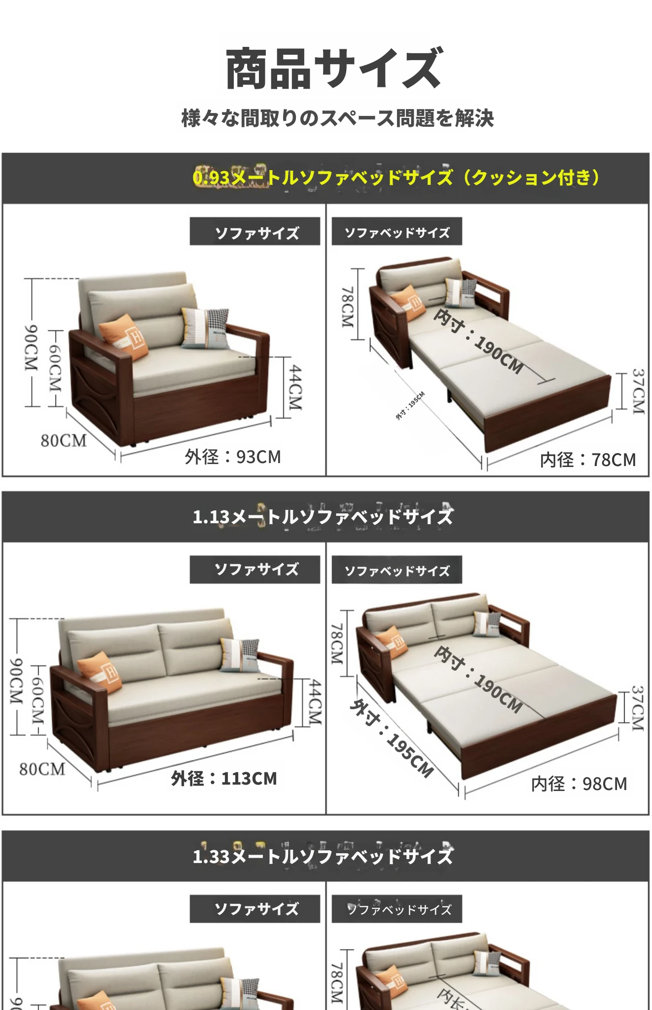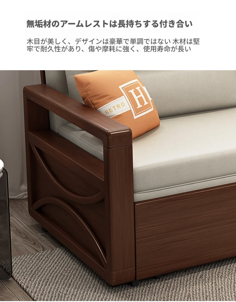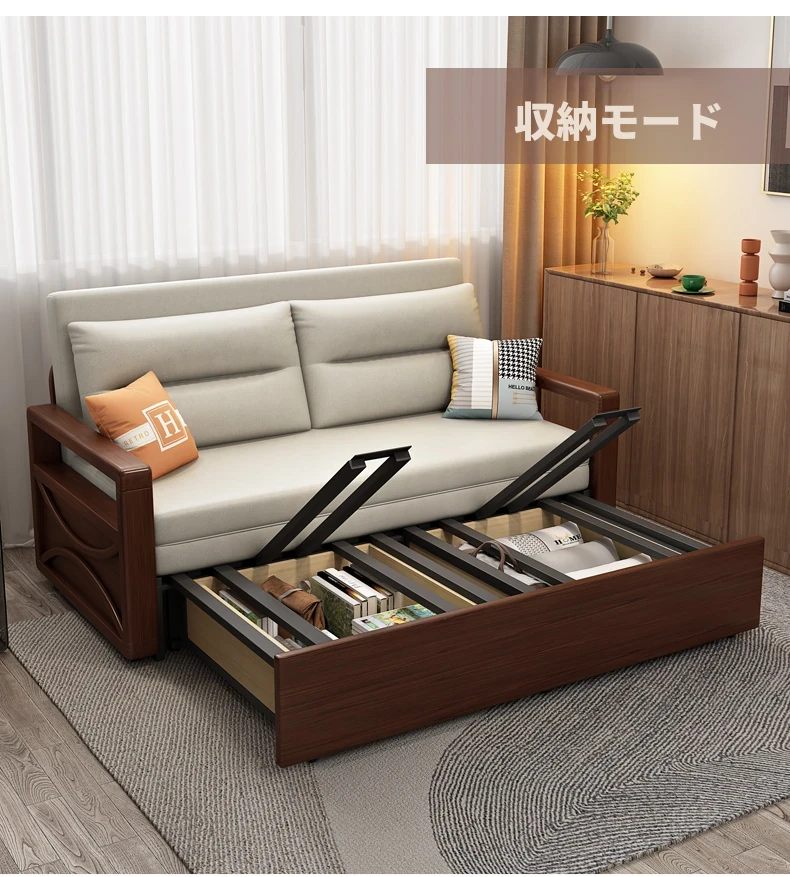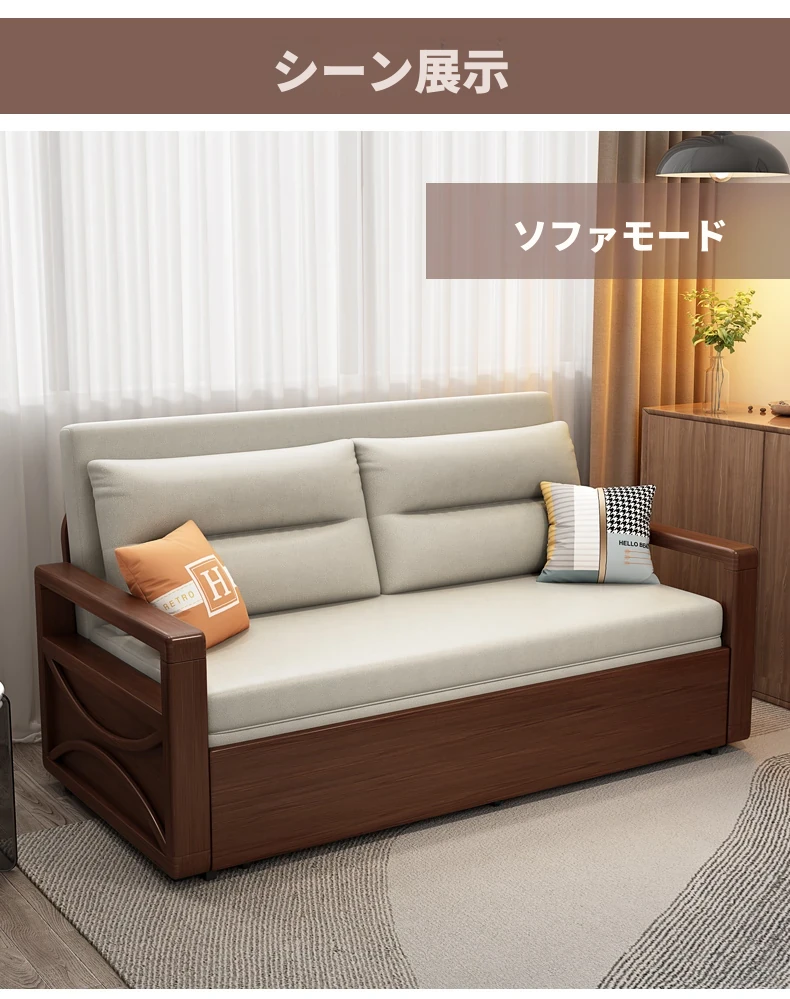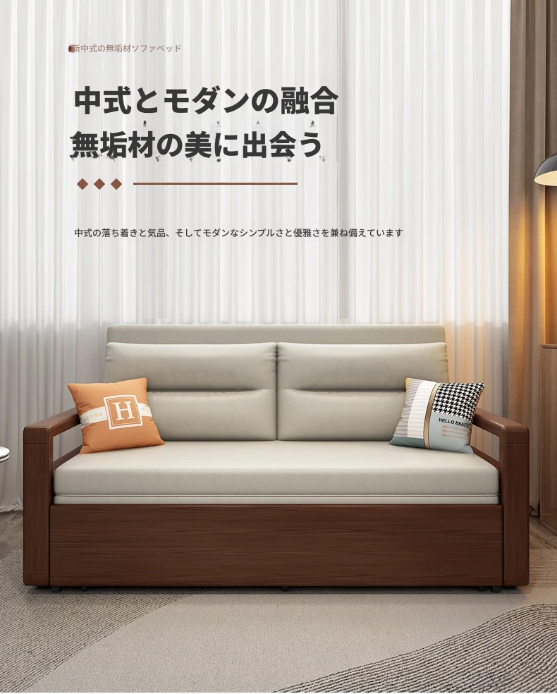 2025年新款!折りたたみ式1人用ソファベッド。小型住宅に最適な人気デザイン!リビングにぴったりの多機能無垢材ソファベッド。快適な睡眠とスタイリッシュな空間を実現!