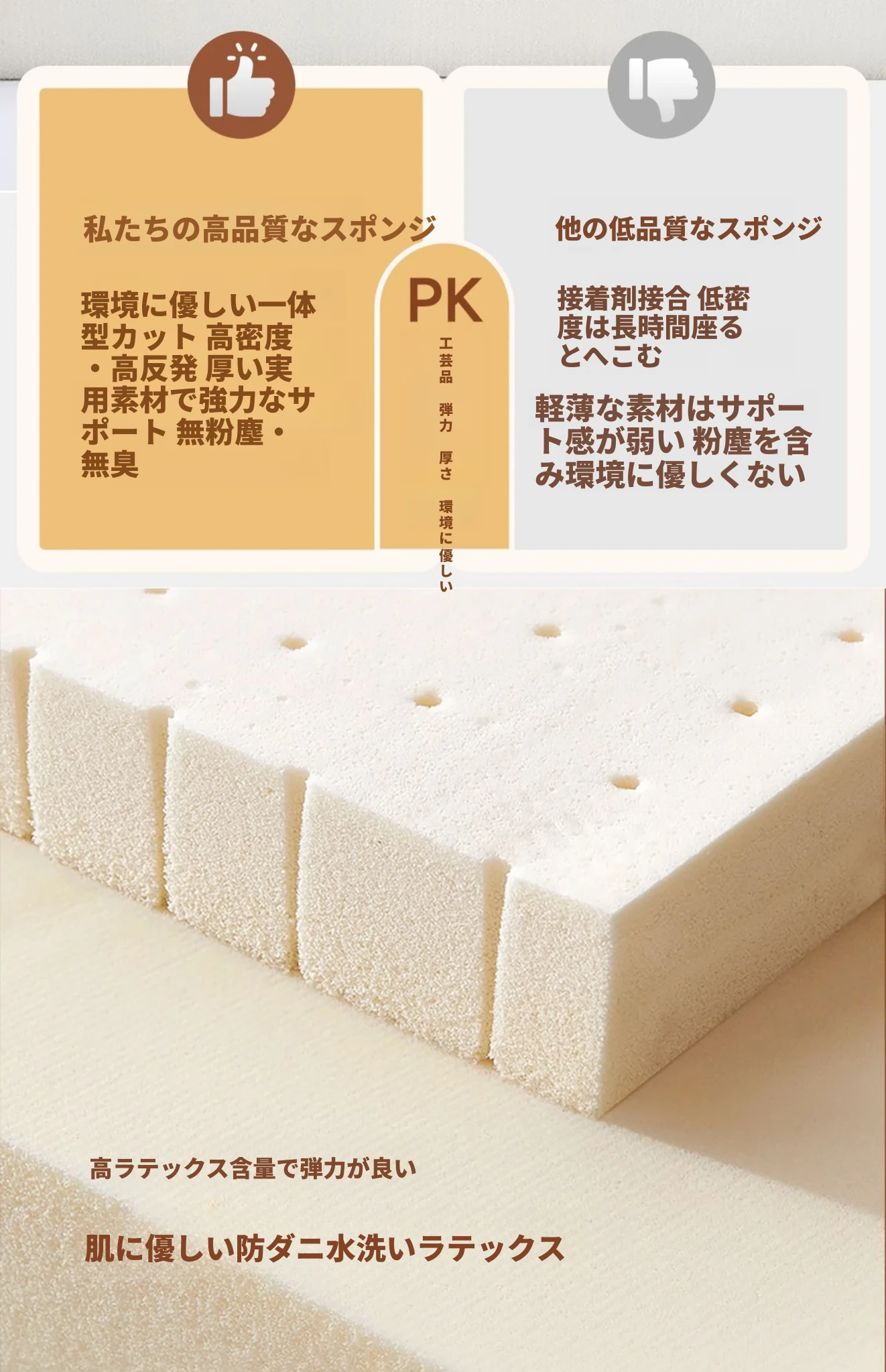 2.2メートル【粉なし高反発ウレタン+ラテックス層】
