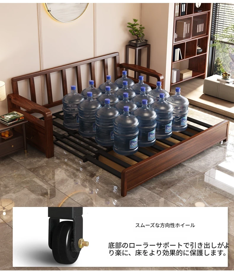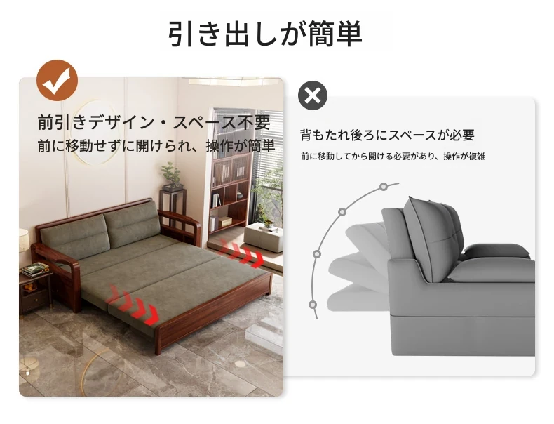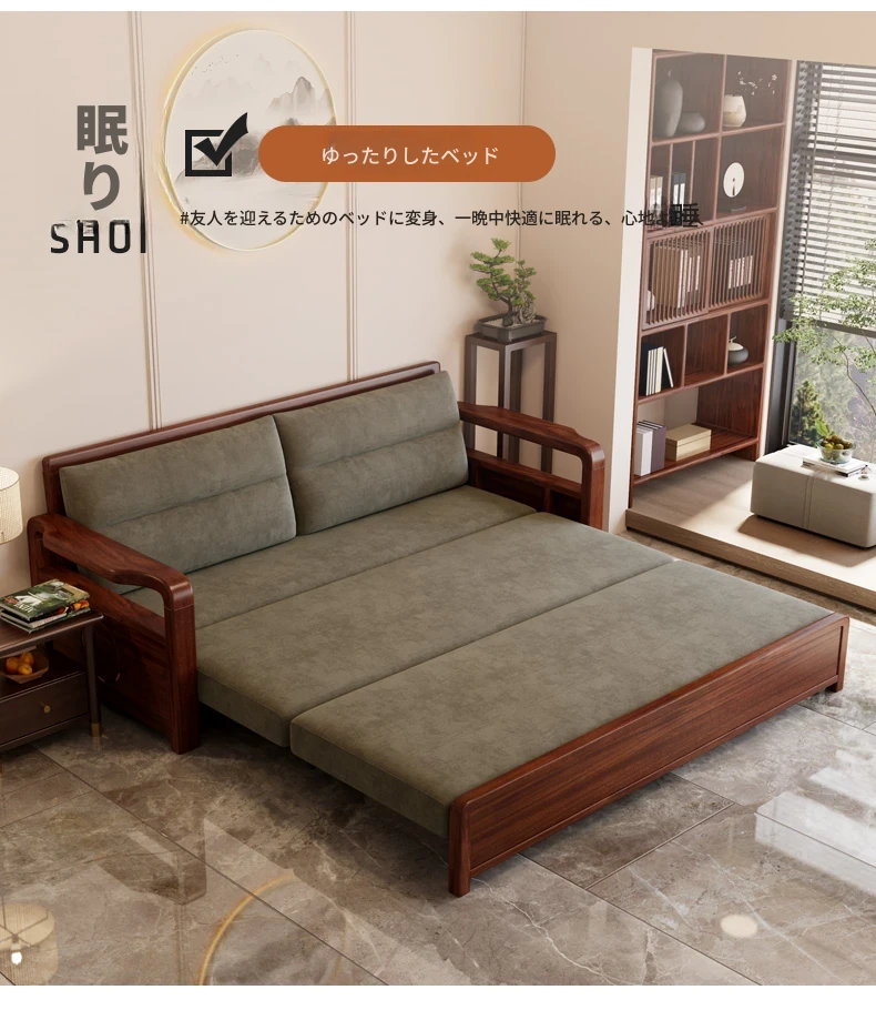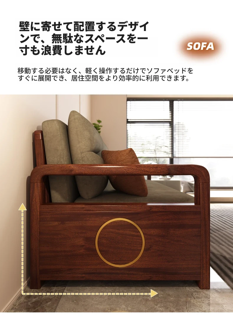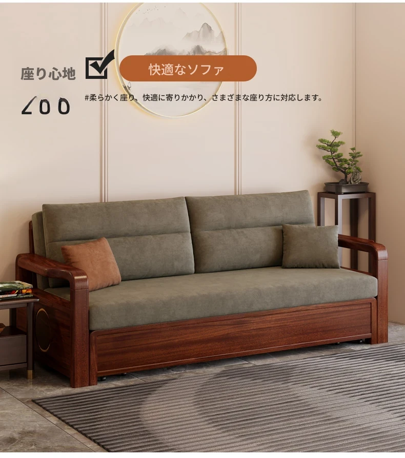 新作!ウコンウッド折りたたみソファベッド 2025年モデル 小型リビングに最適な実木製ソファベッド シングルサイズでスペースを有効活用!