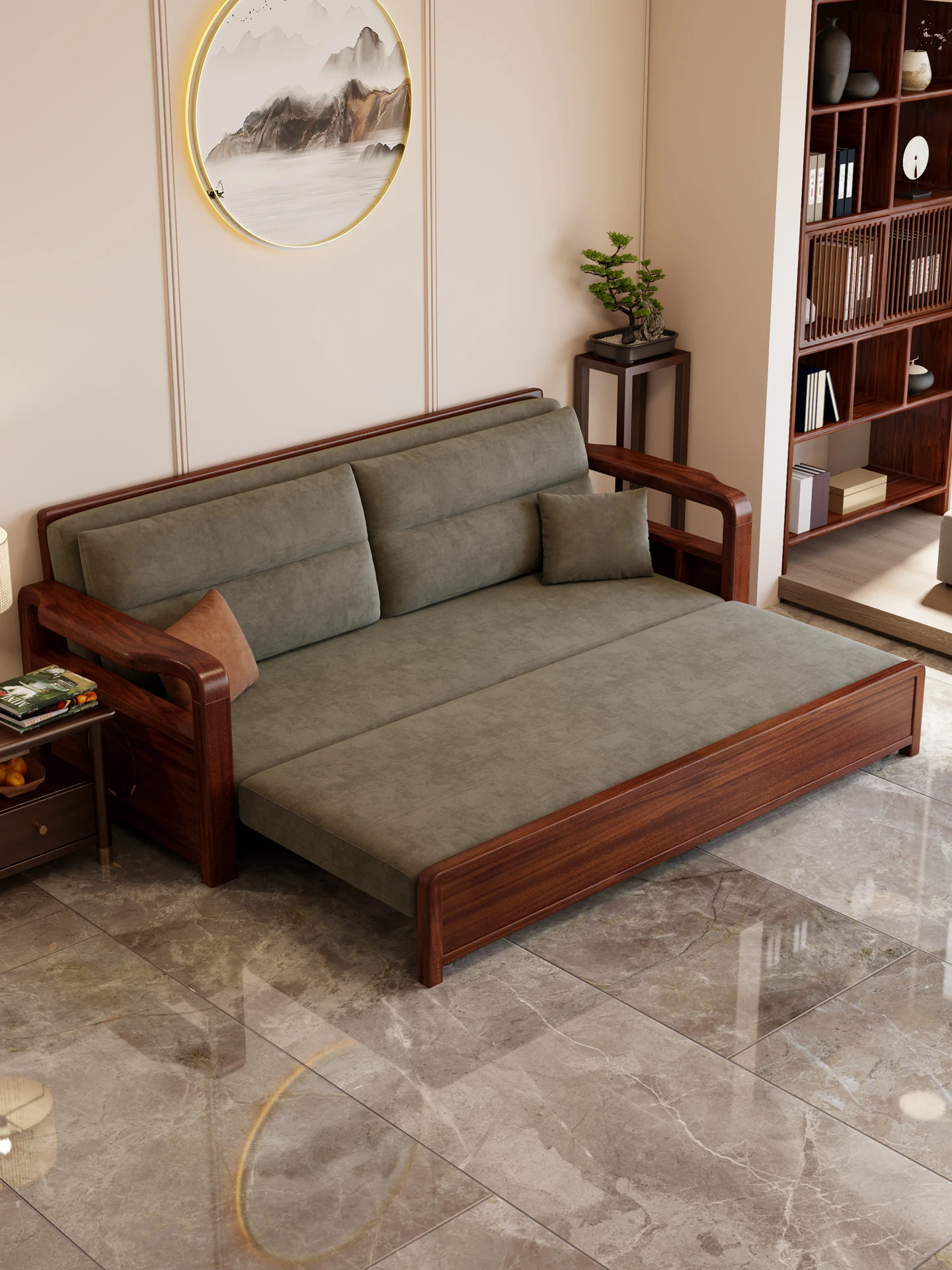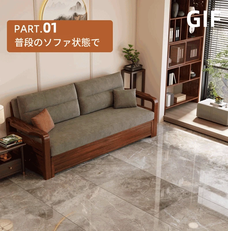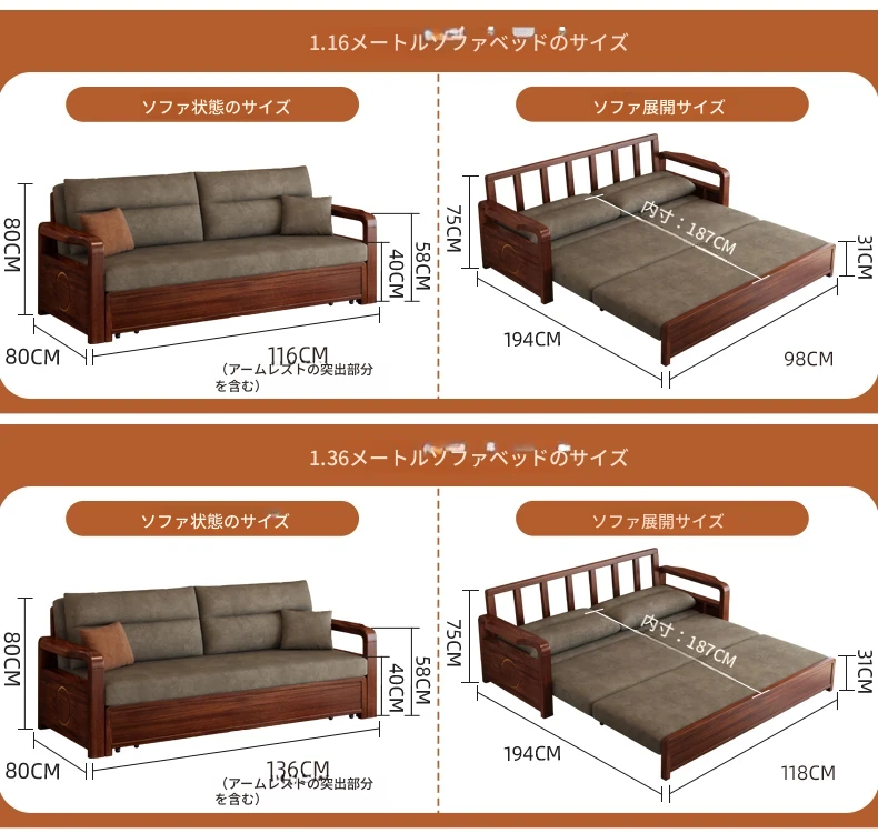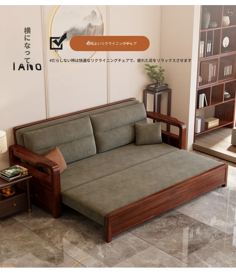 新作!ウコンウッド折りたたみソファベッド 2025年モデル 小型リビングに最適な実木製ソファベッド シングルサイズでスペースを有効活用!