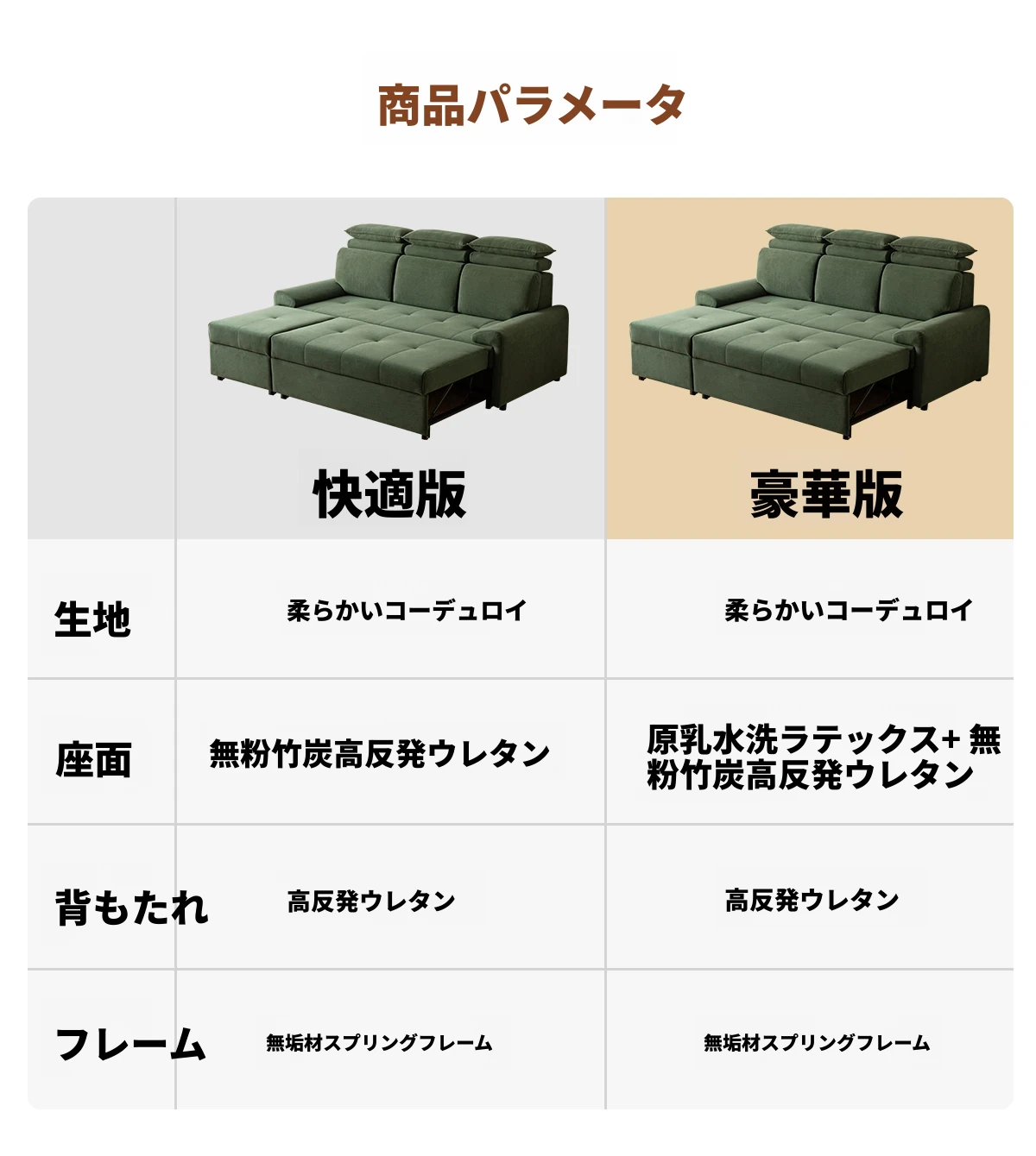 1.8メートル【粉なし高反発ウレタン+ラテックス層-コーデュロイ】