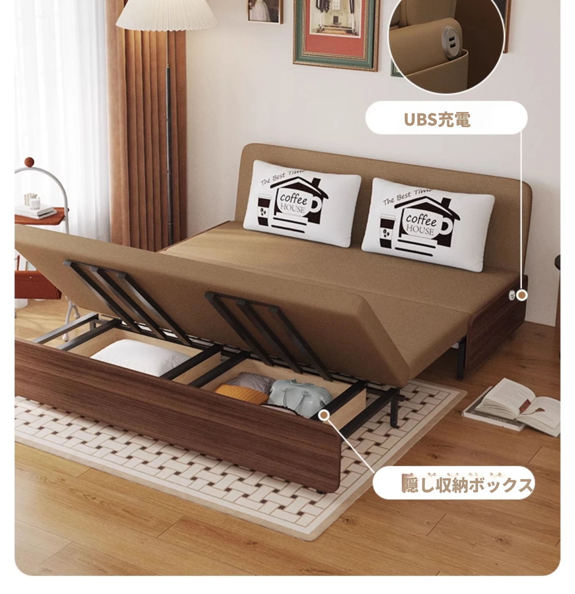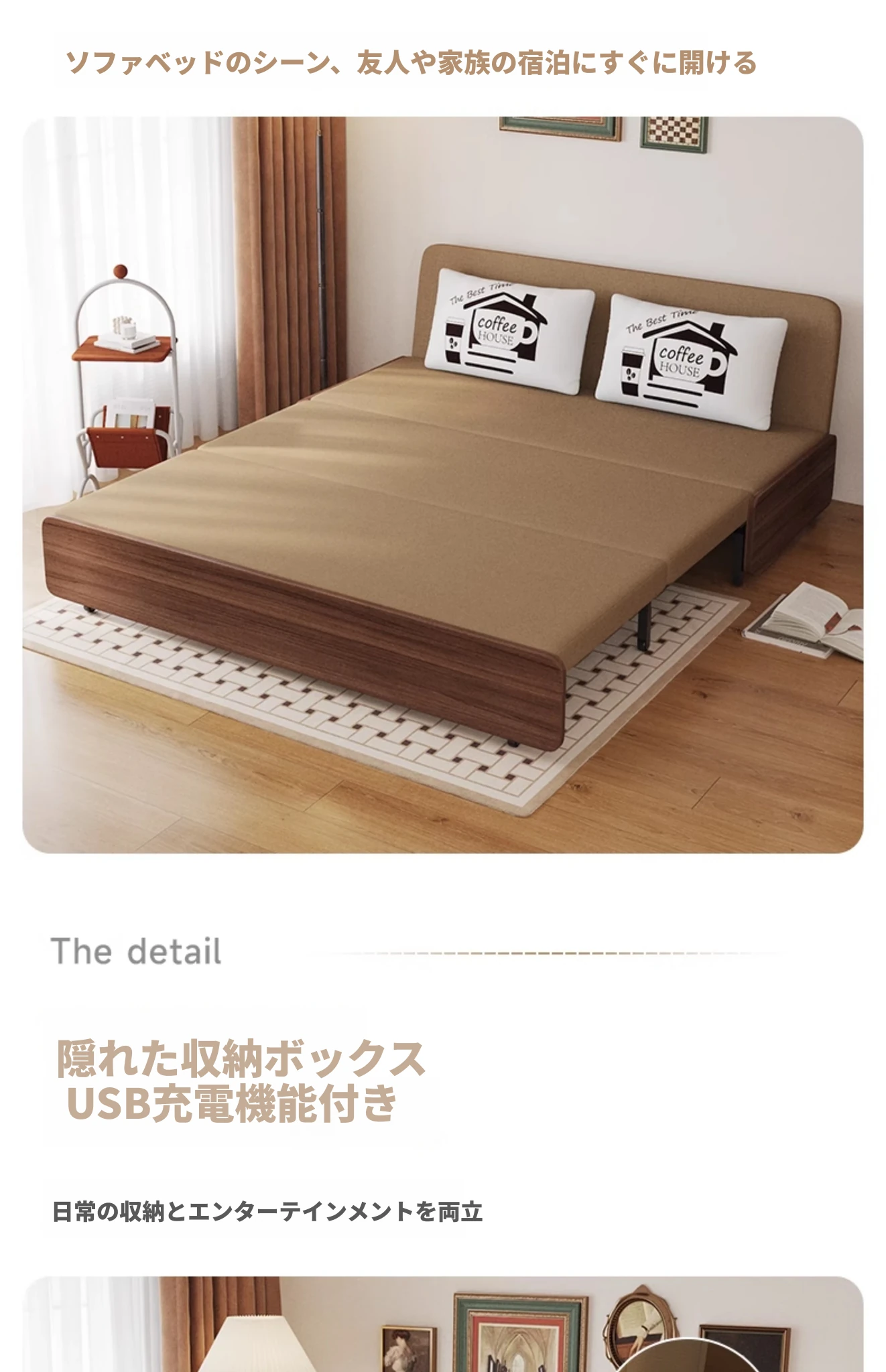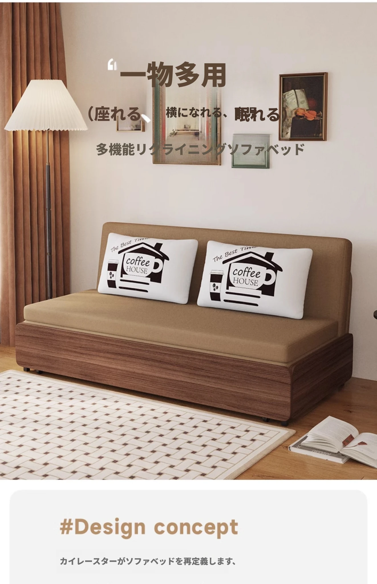 折りたたみソファベッド 2in1 多機能 小型アパート向け ウォルナット無垢材使用 2025年新作 リラックスできる小さなソファ