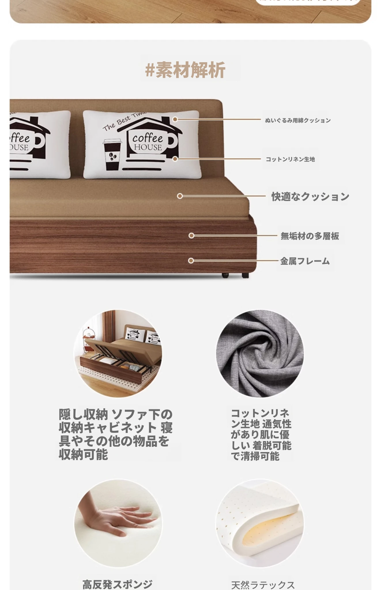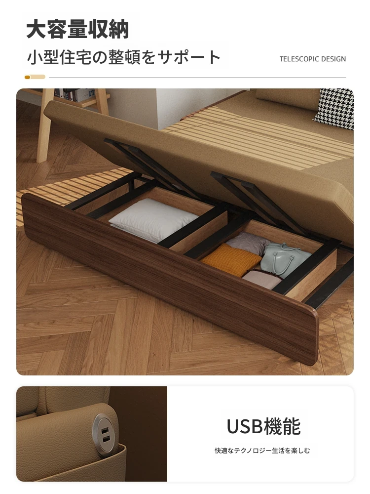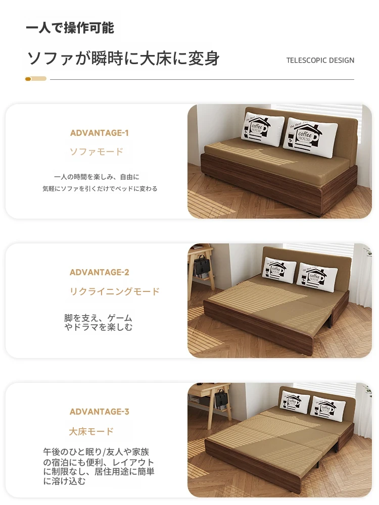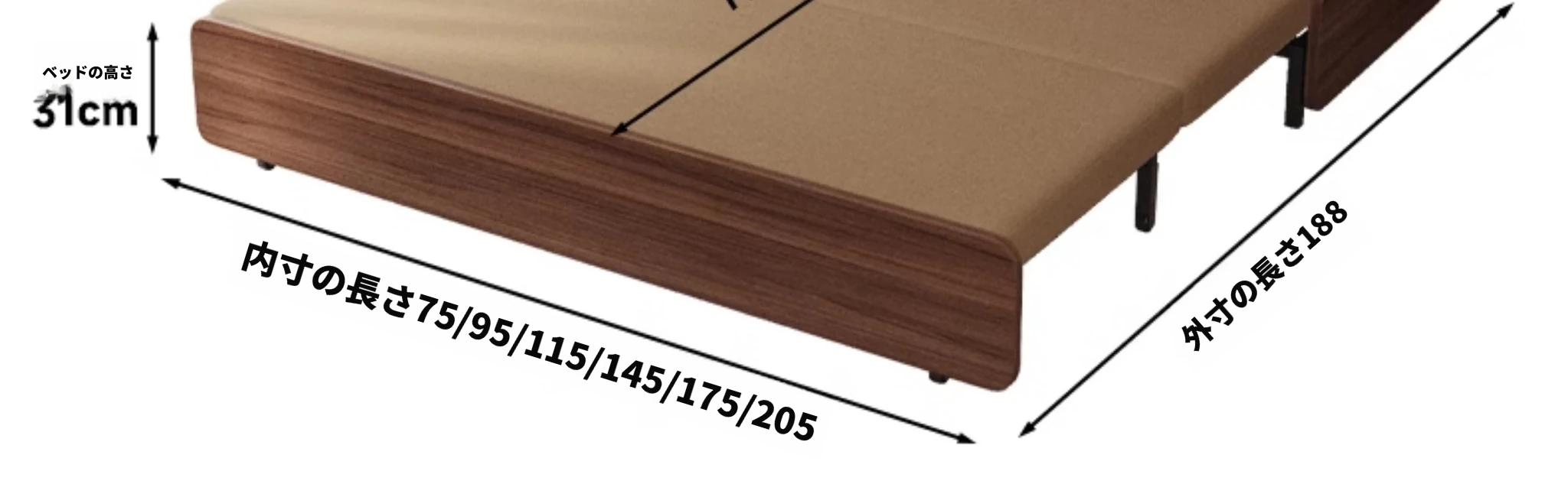 折りたたみソファベッド 2in1 多機能 小型アパート向け ウォルナット無垢材使用 2025年新作 リラックスできる小さなソファ