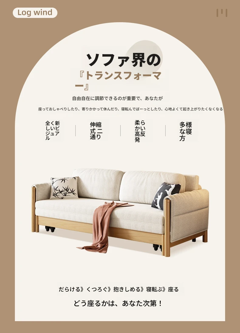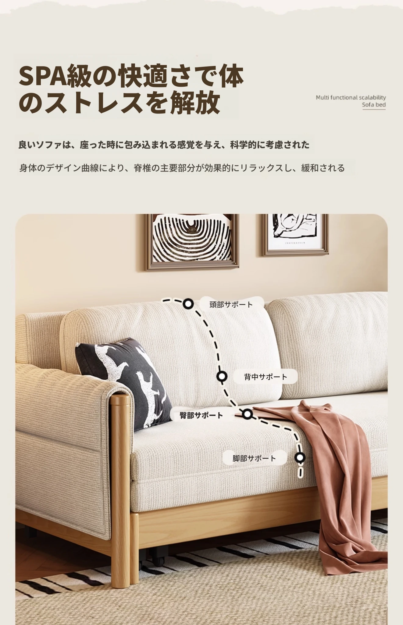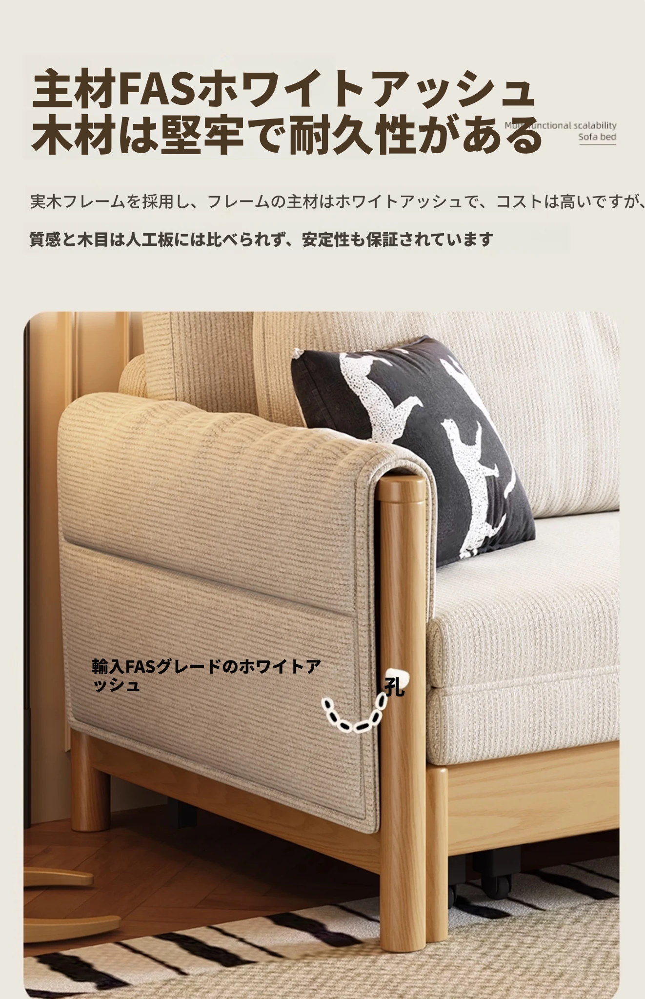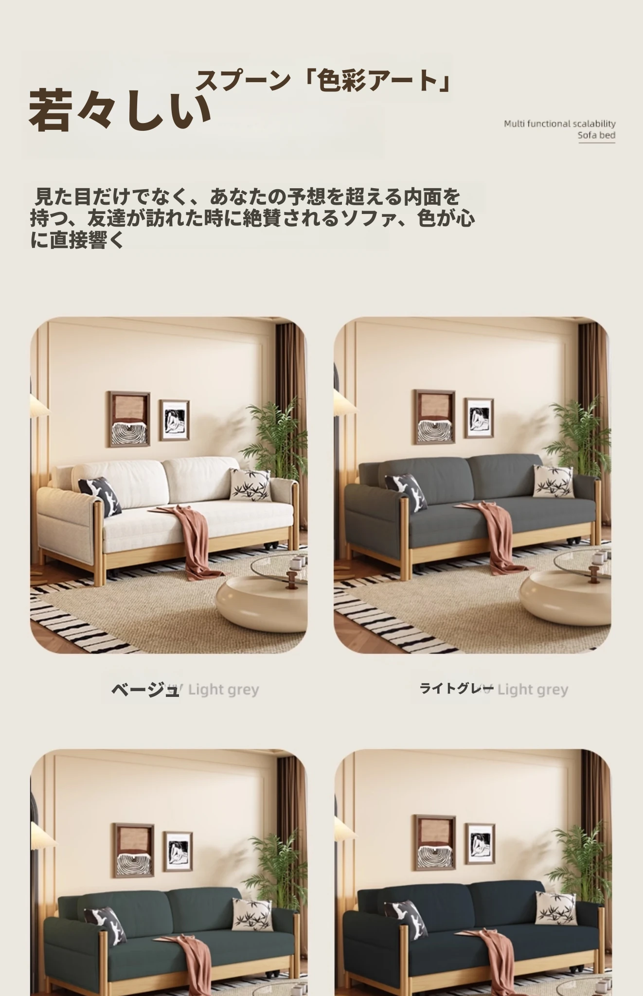 2025年新作 北欧スタイルの無垢材ソファベッド!折りたたみ可能で、リビングにぴったりな小型2人用。トレンド感満載のデザインで、座っても寝ても快適な空間を演出します!