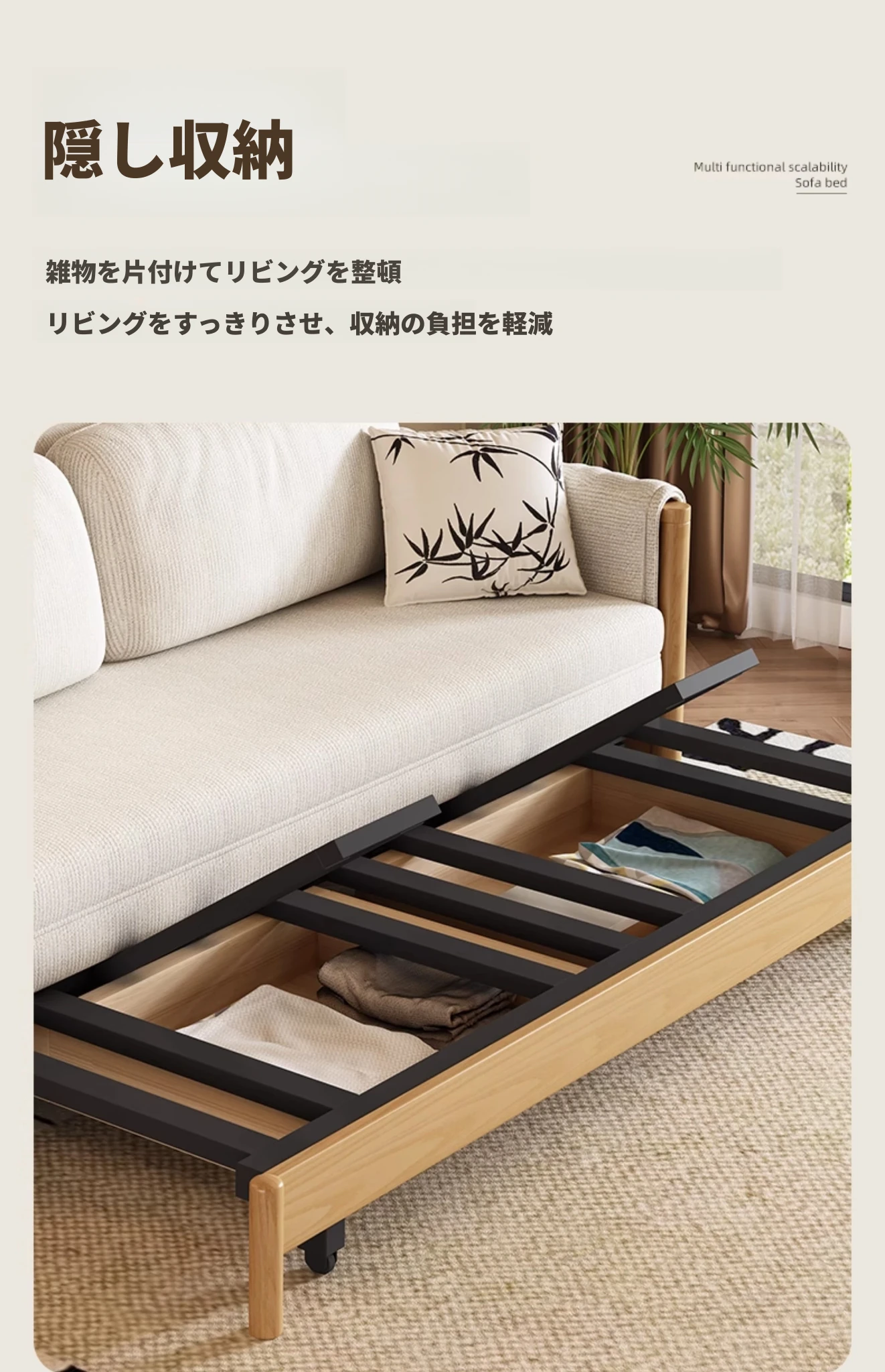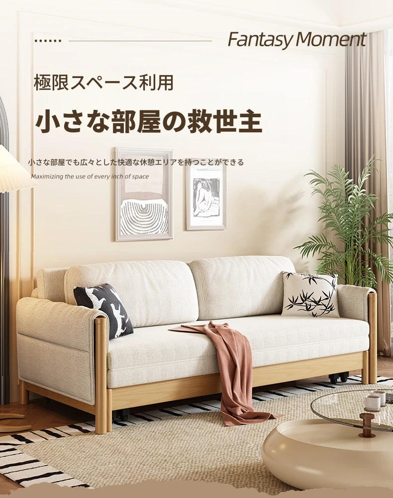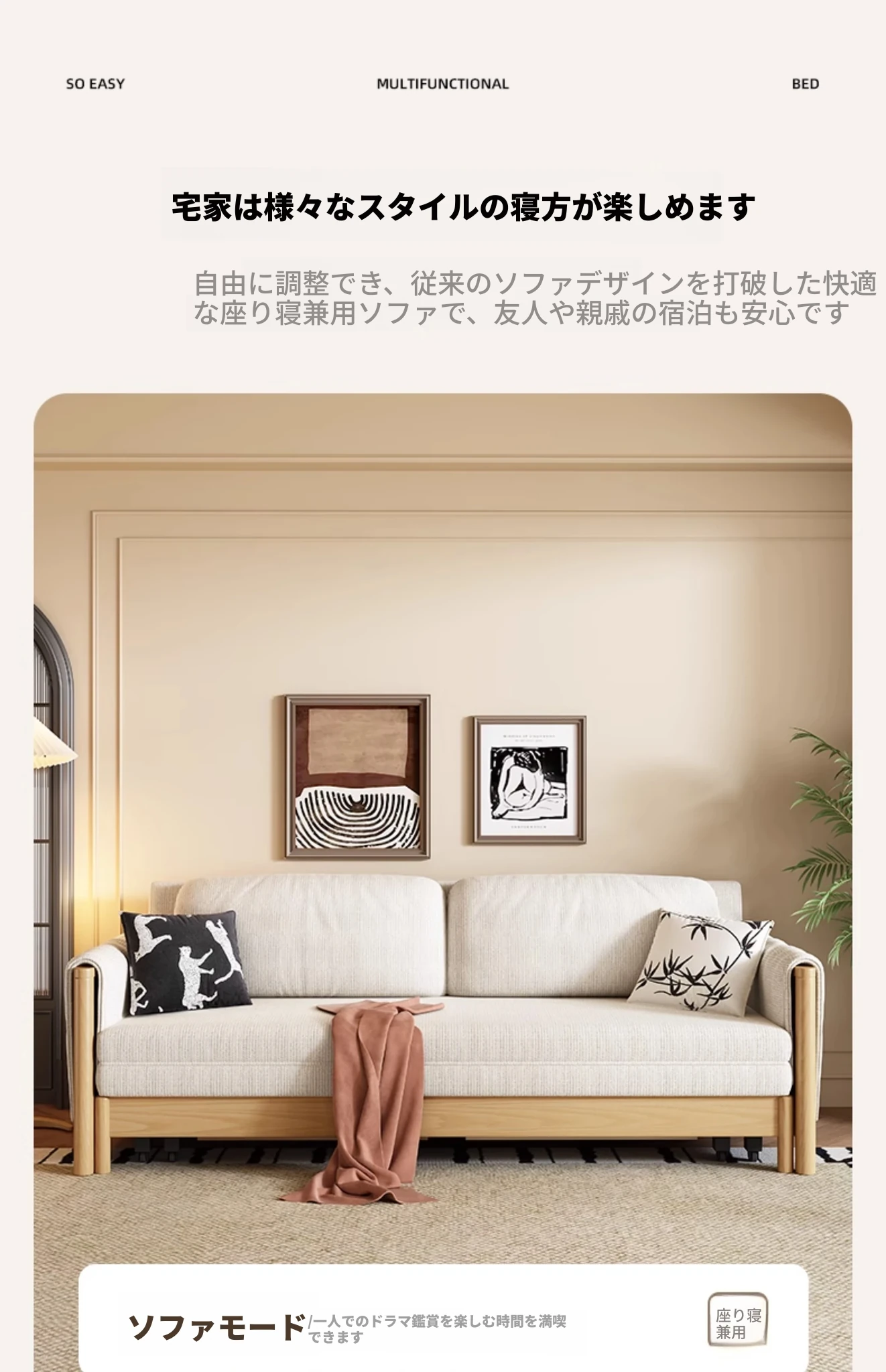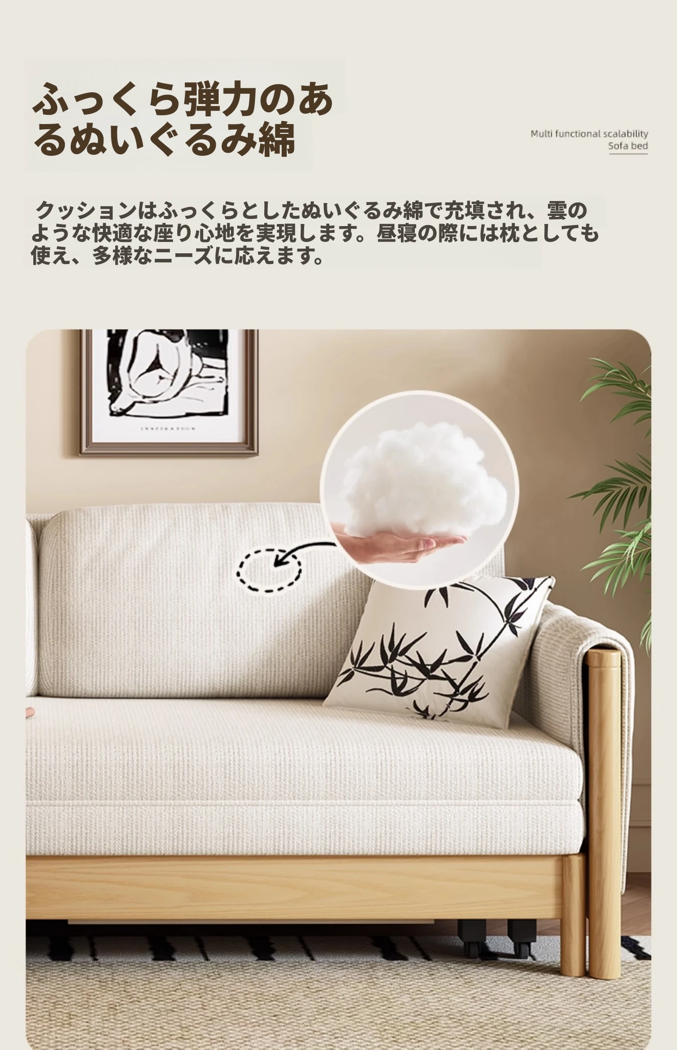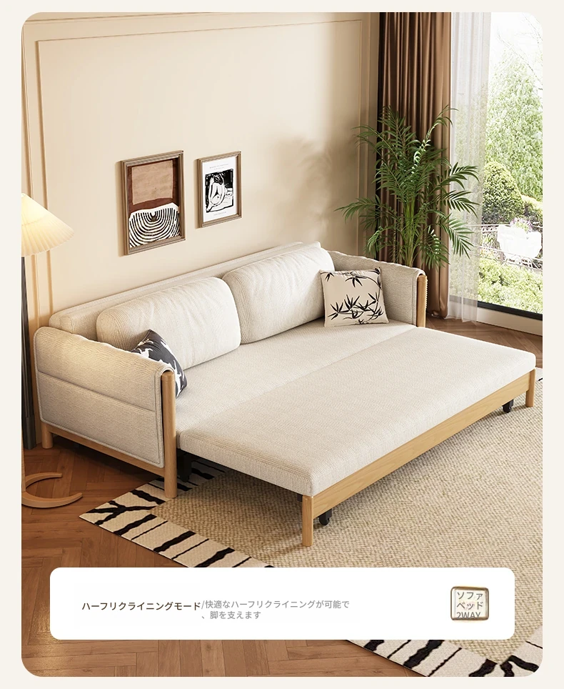 2025年新作 北欧スタイルの無垢材ソファベッド!折りたたみ可能で、リビングにぴったりな小型2人用。トレンド感満載のデザインで、座っても寝ても快適な空間を演出します!
