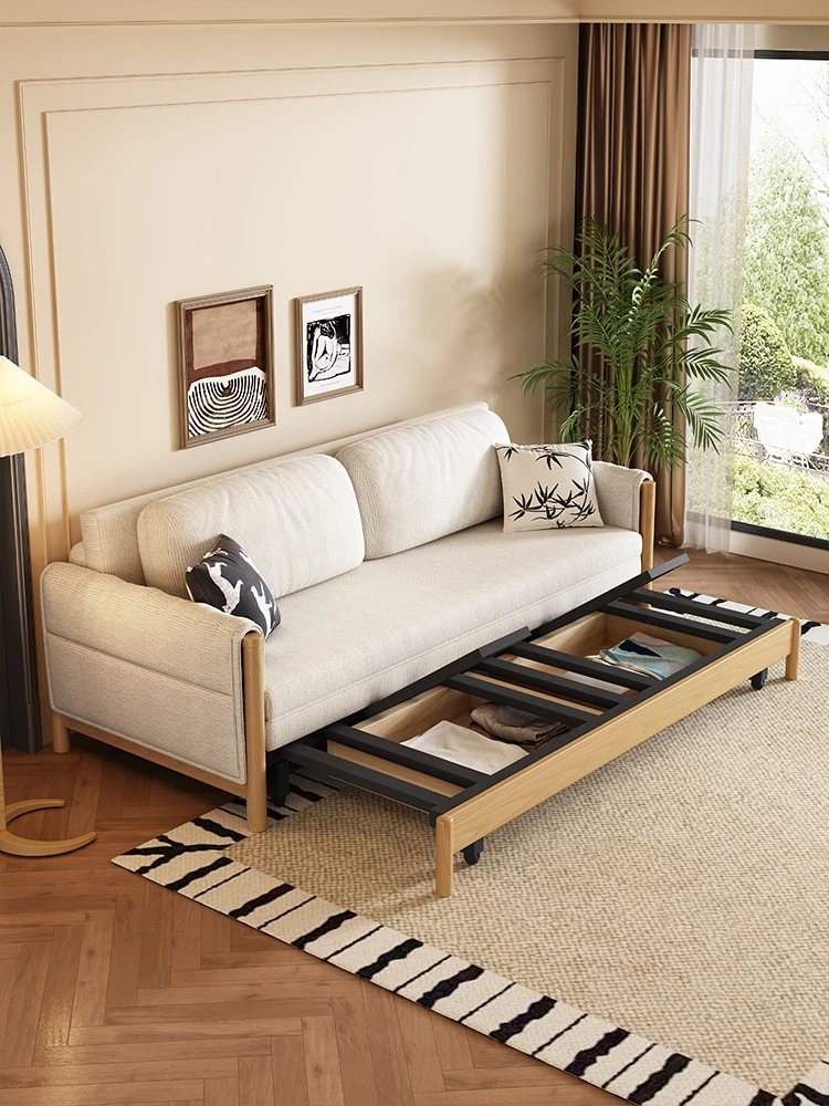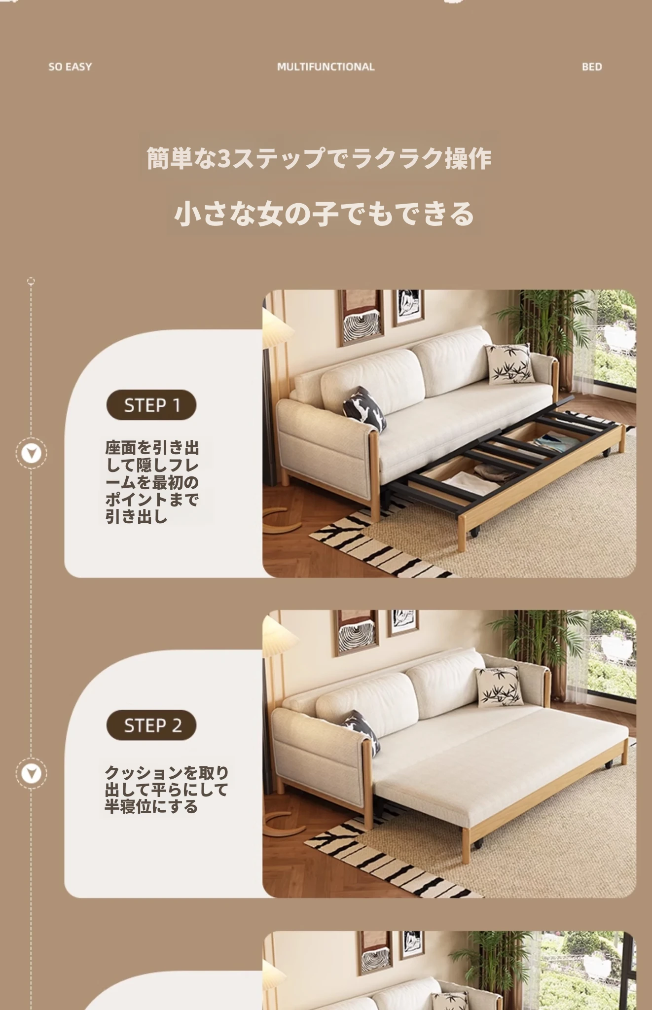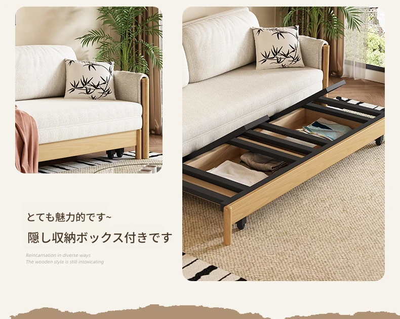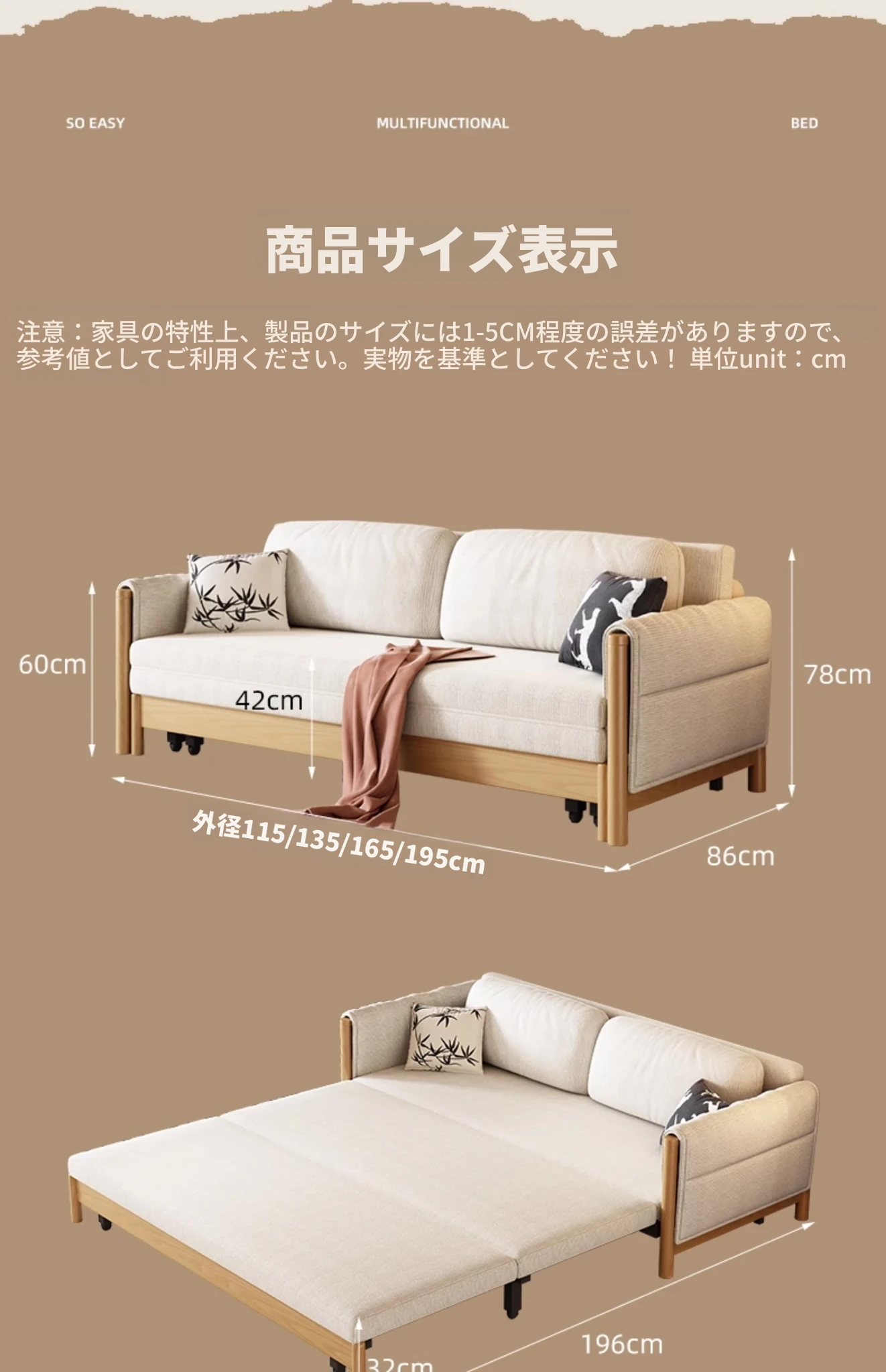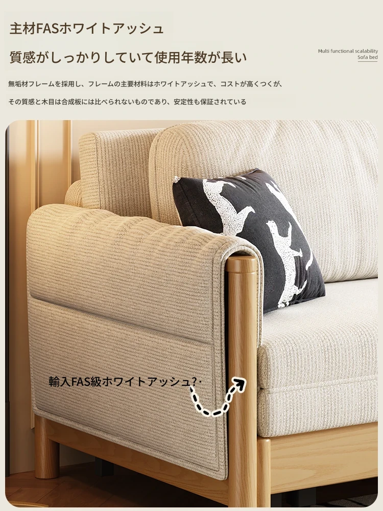 2025年新作 北欧スタイルの無垢材ソファベッド!折りたたみ可能で、リビングにぴったりな小型2人用。トレンド感満載のデザインで、座っても寝ても快適な空間を演出します!