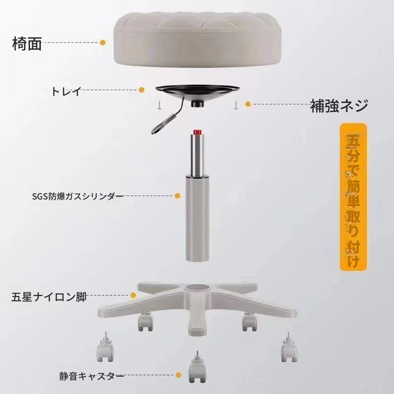 スライド式昇降スツール - ヘアサロンやネイルサロンに最適な360度回転するキャスター付きのコンパクトな低椅子、家でもプロの仕上がりを実現!