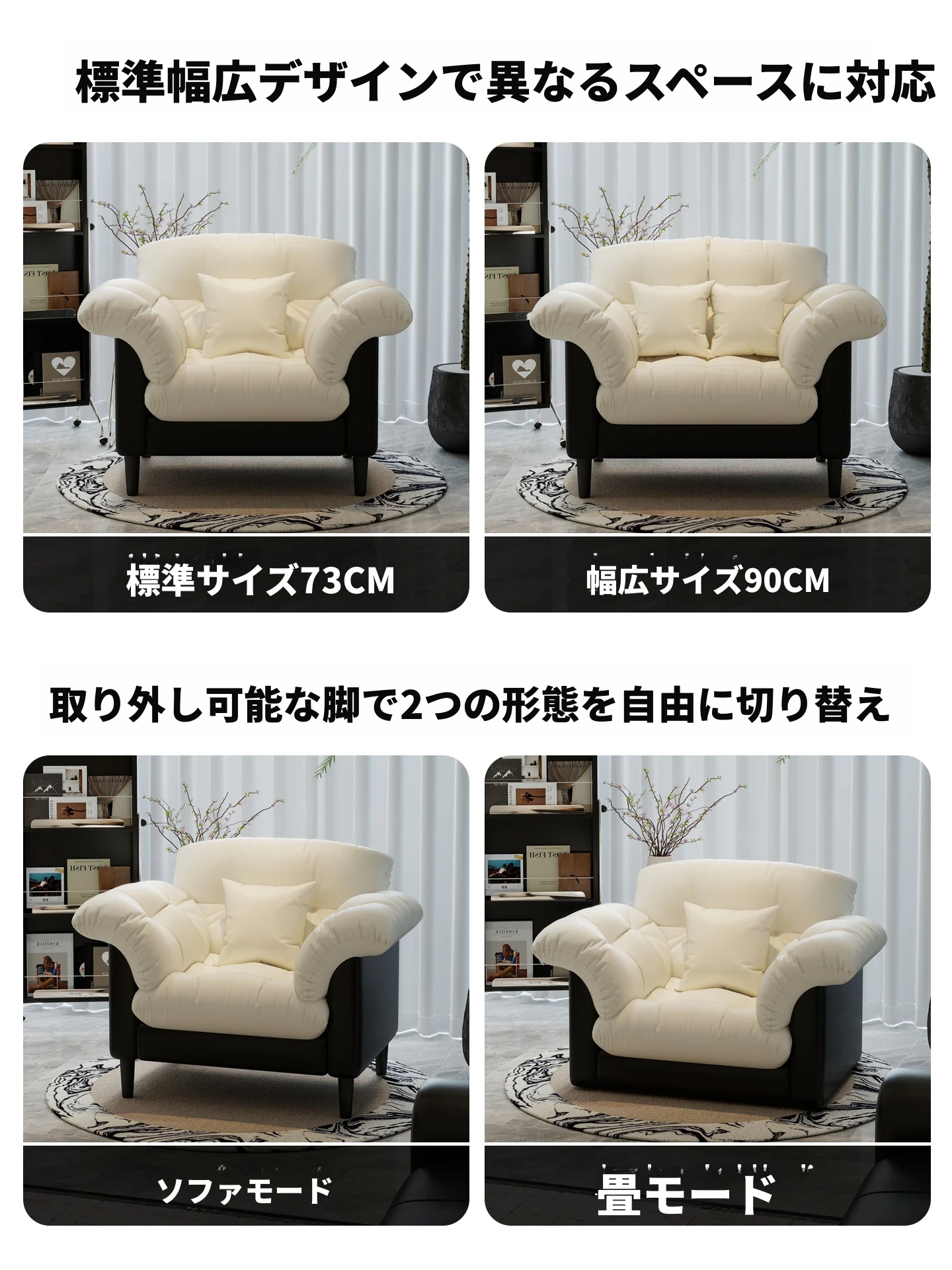 メイン画像スタイル&カメリア【アイボリー 幅広90CM】耐摩耗猫爪皮〖クッション2個付き〗