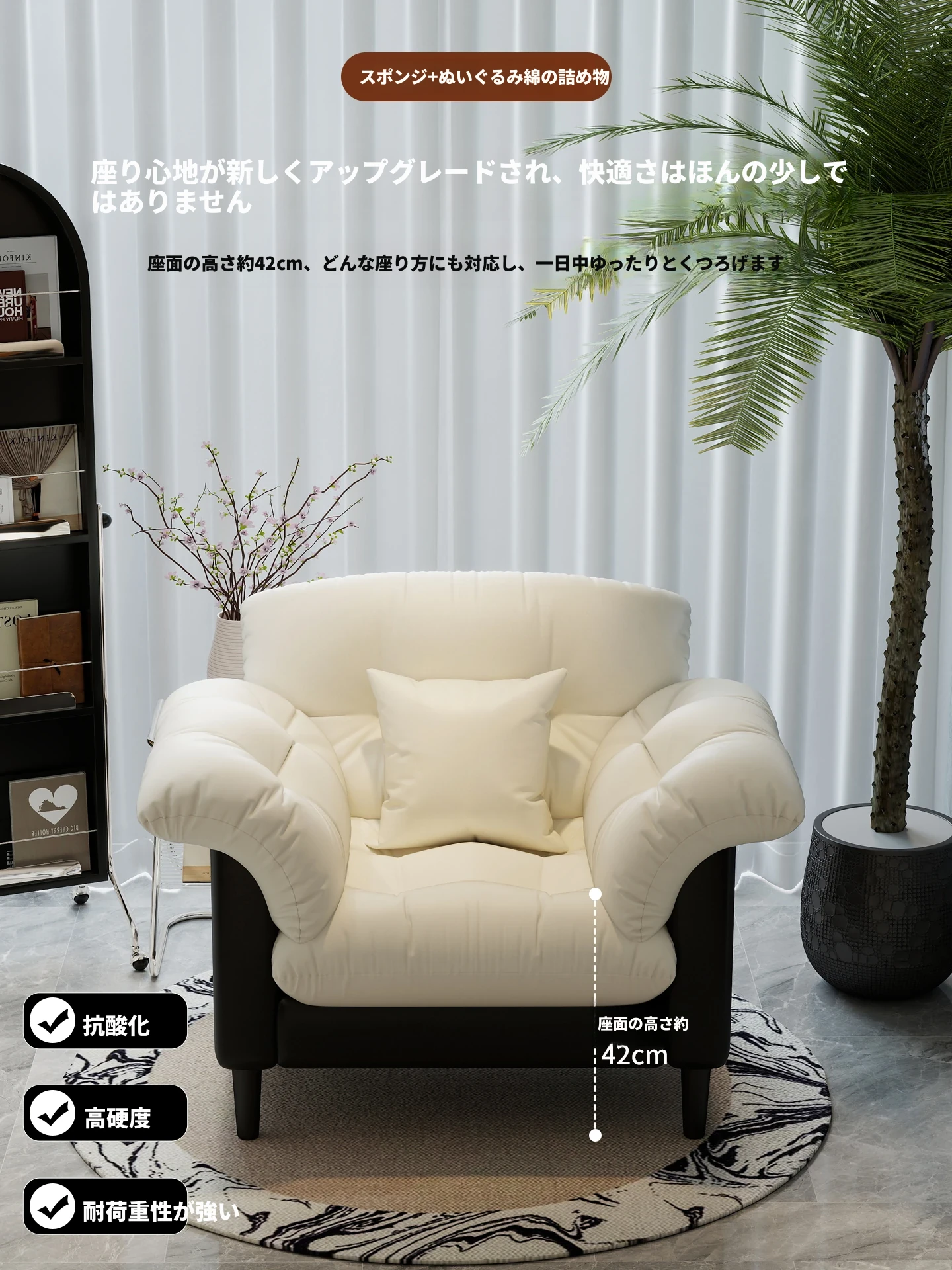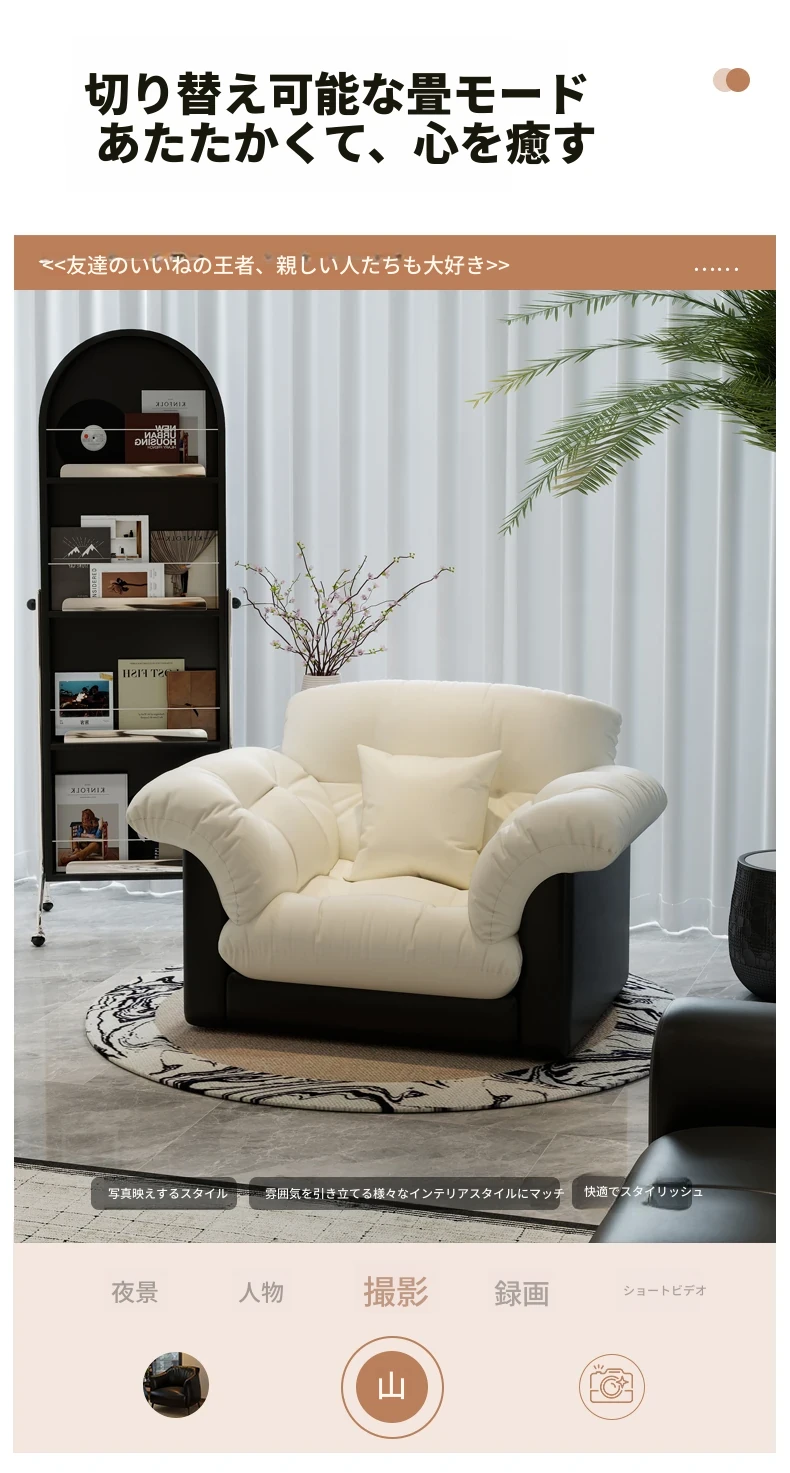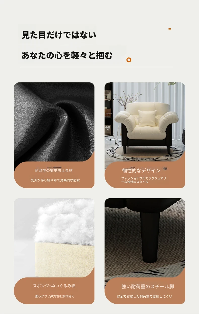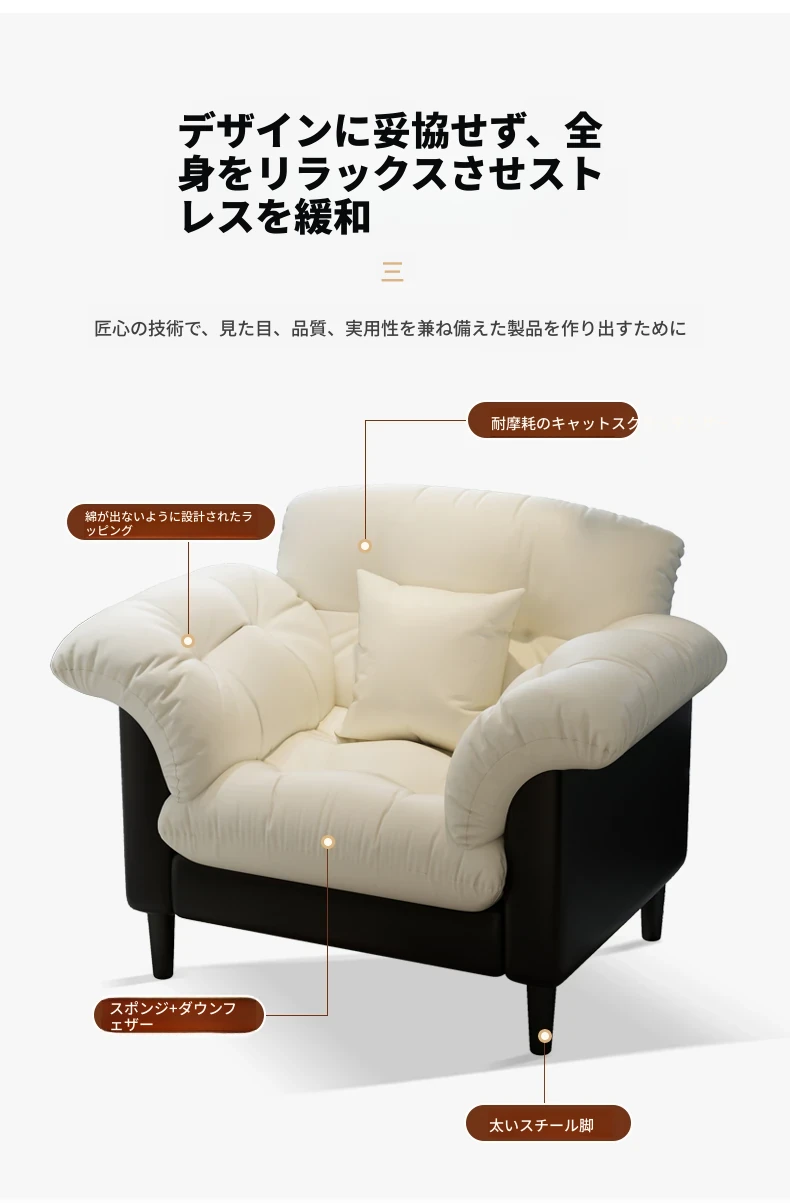 山茶花【米白73CM】耐磨猫爪皮〖クッションプレゼント〗