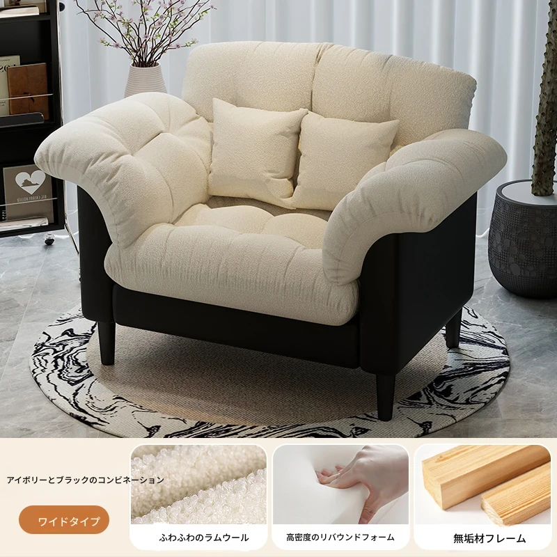 メイン画像スタイル&ツバキ【ホワイト+ブラック 幅広90CM】柔らかいラムファー〖2つのクッション付き〗