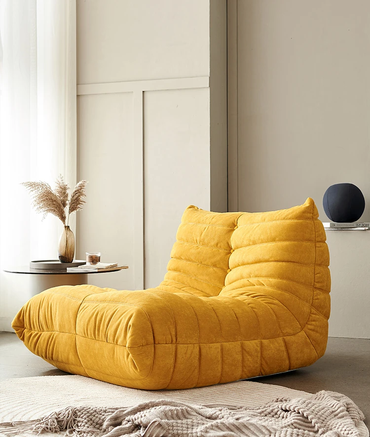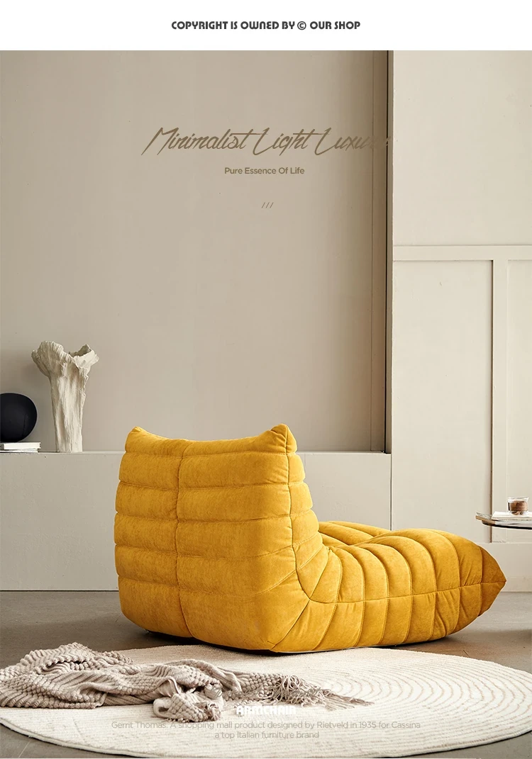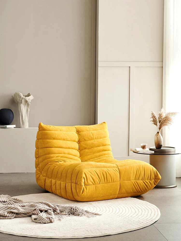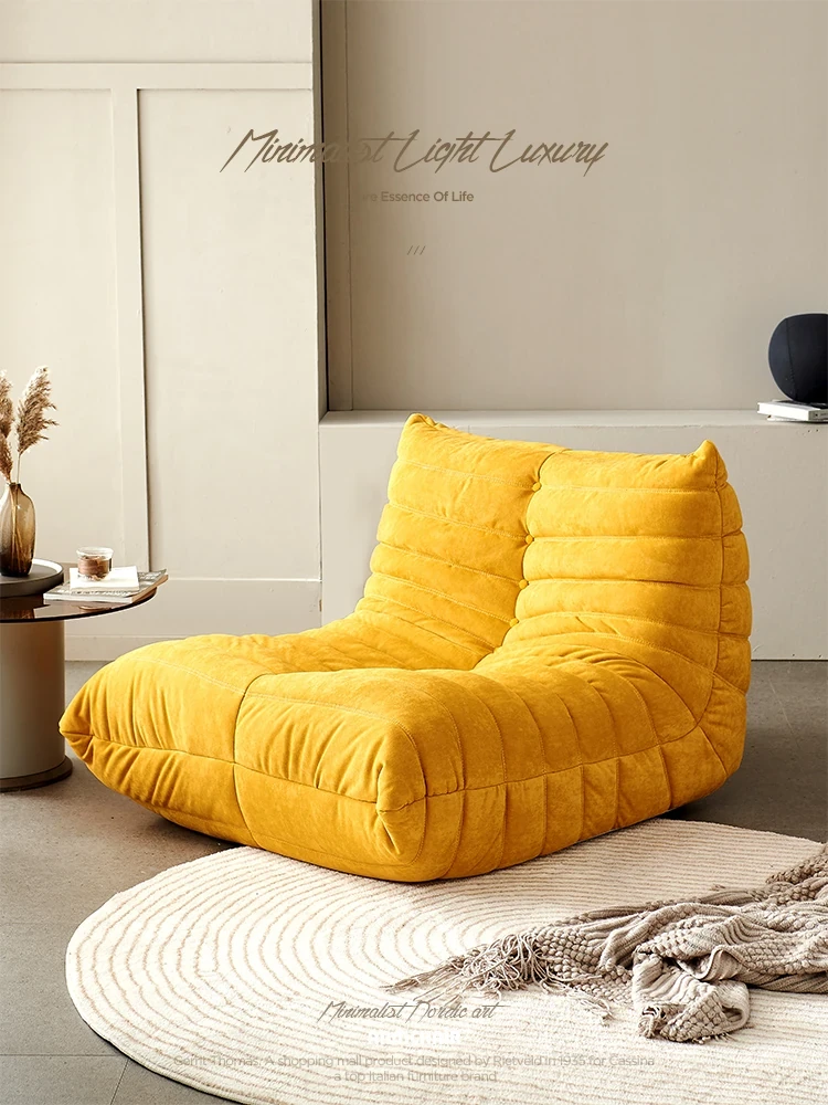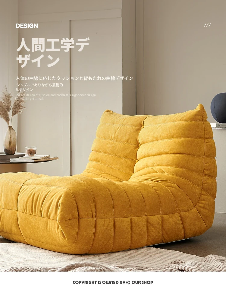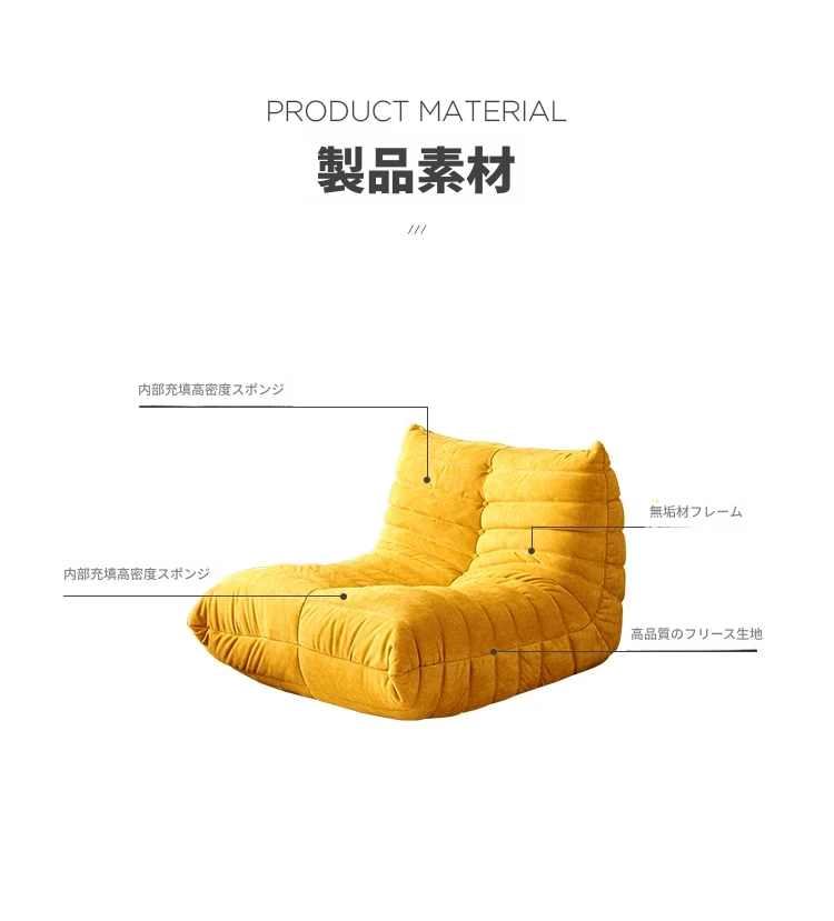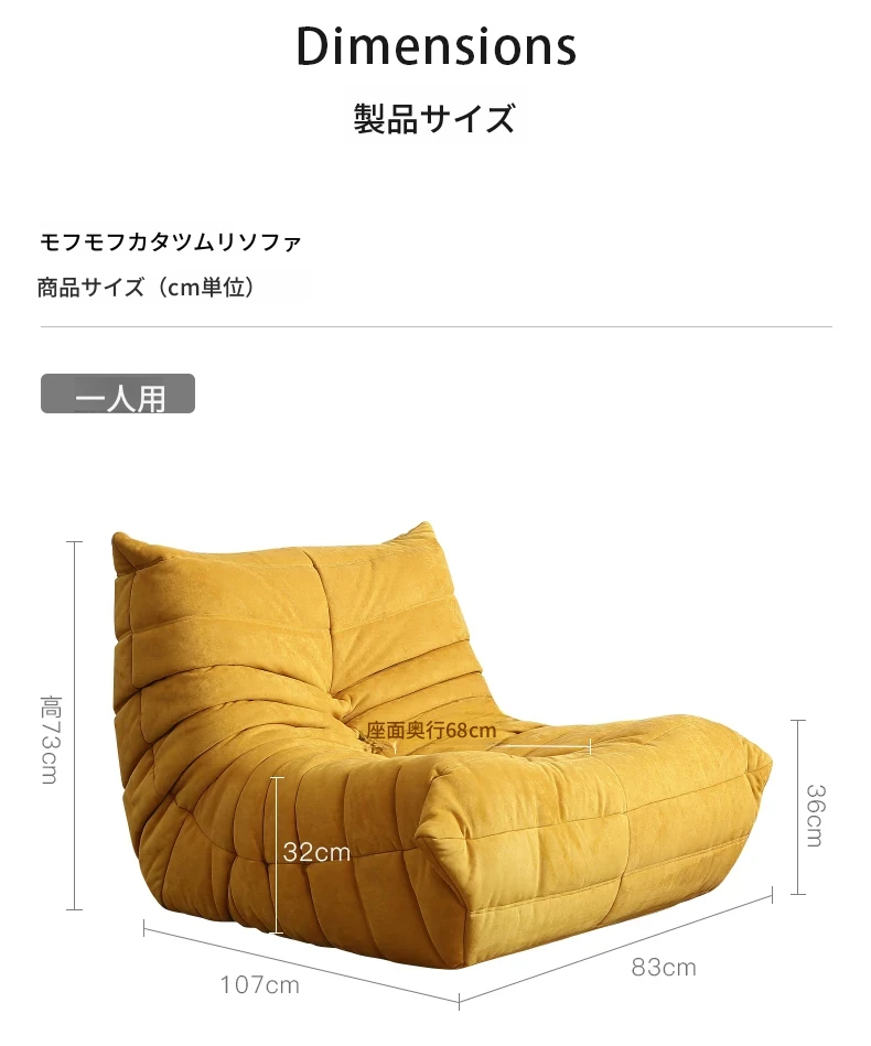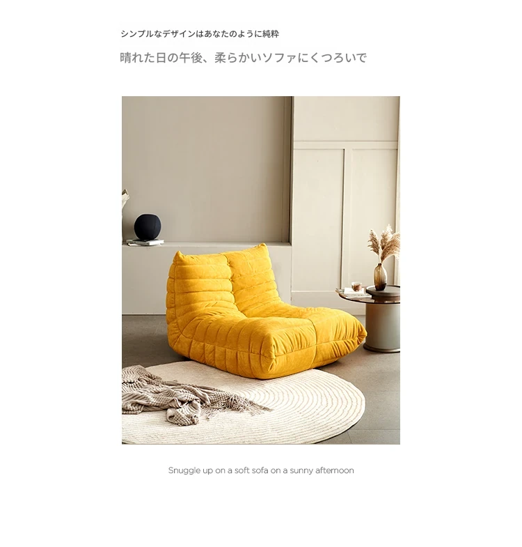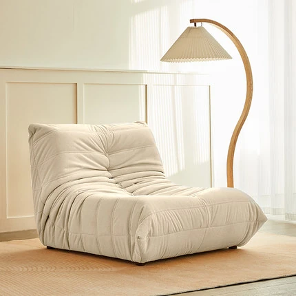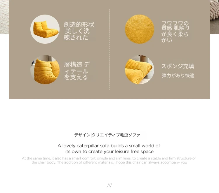 ふわふわの毛毛虫ソファ!北欧スタイルのクリエイティブ布製ソファ、人気の小型リビングにぴったり。白色の本革を使用した一人用リクライニングチェアで、リラックス空間を演出します。