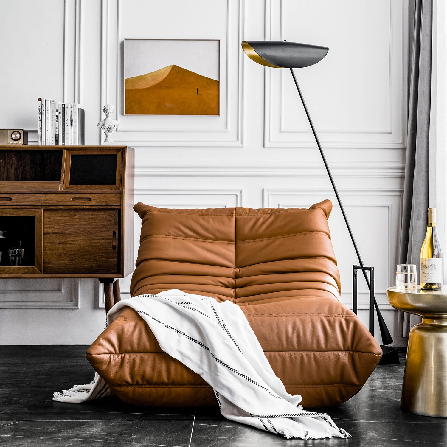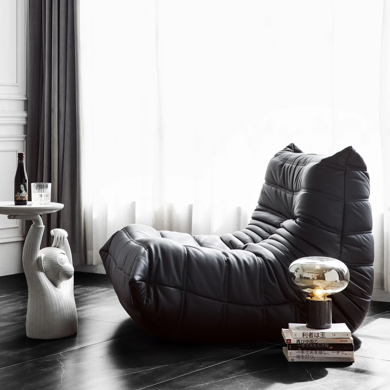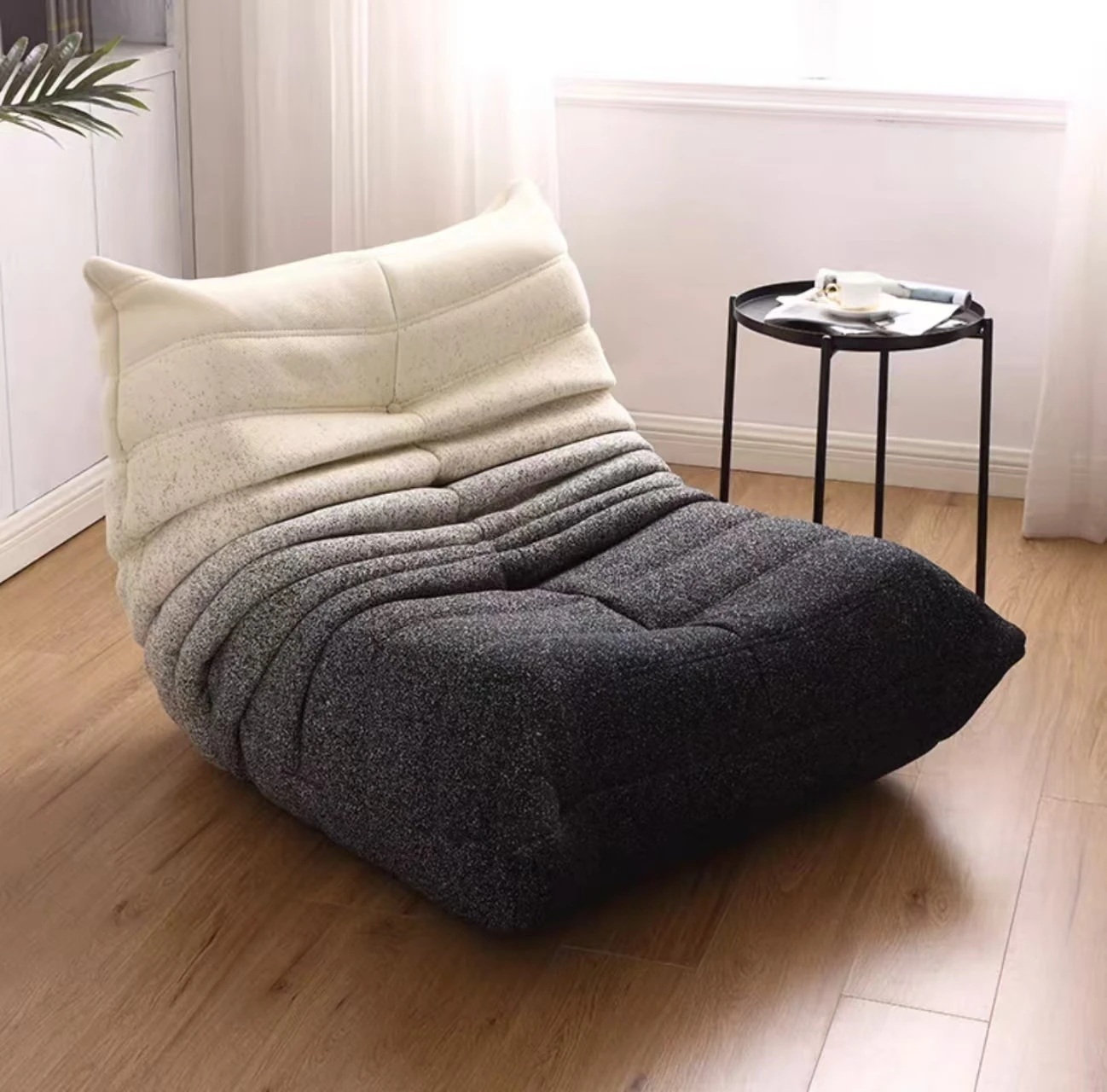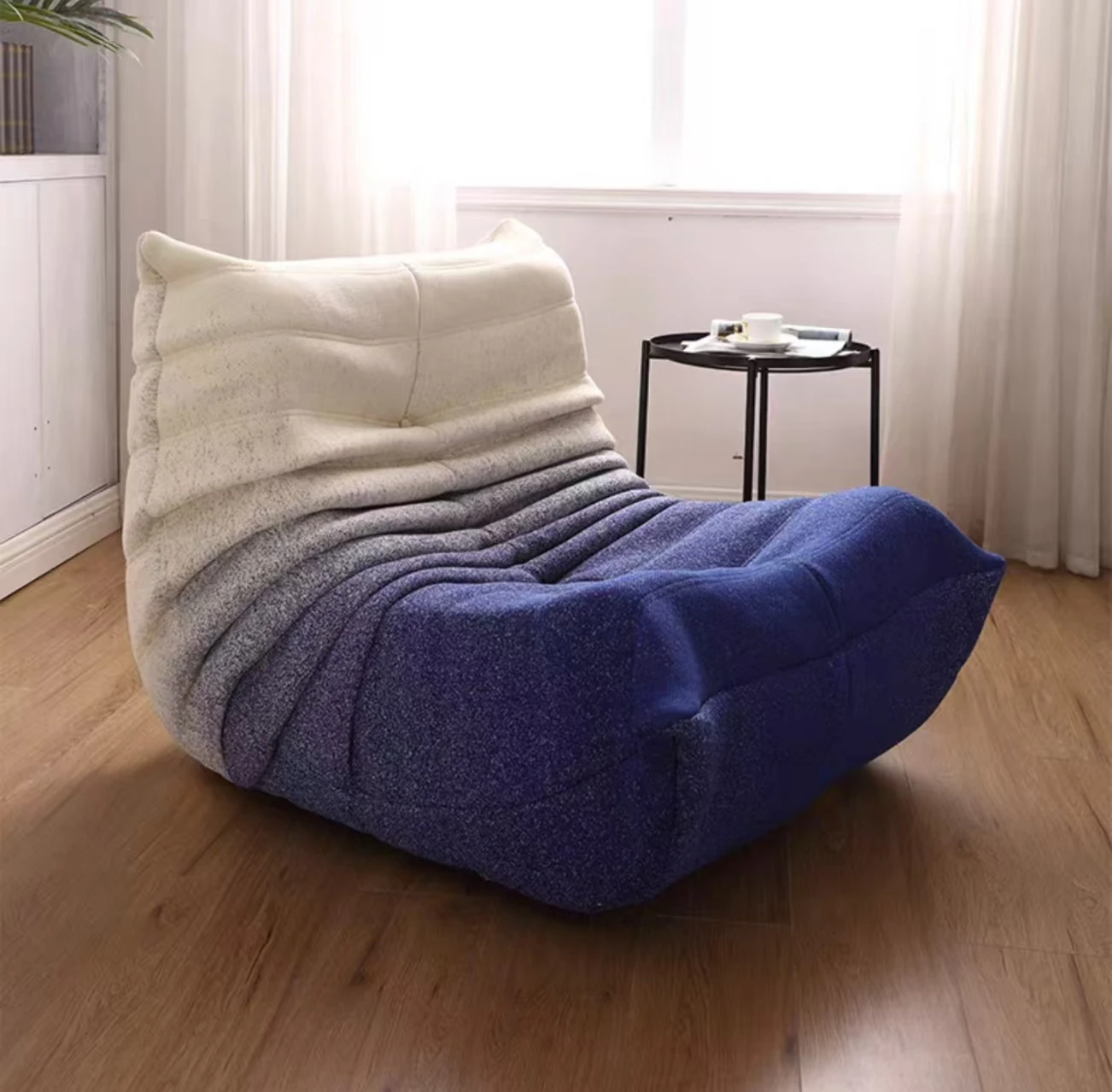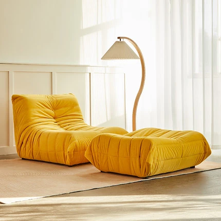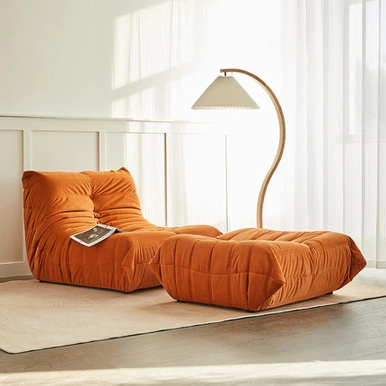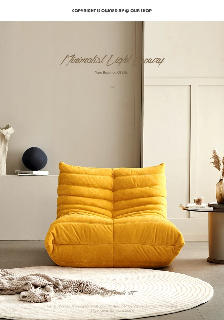 ふわふわの毛毛虫ソファ!北欧スタイルのクリエイティブ布製ソファ、人気の小型リビングにぴったり。白色の本革を使用した一人用リクライニングチェアで、リラックス空間を演出します。