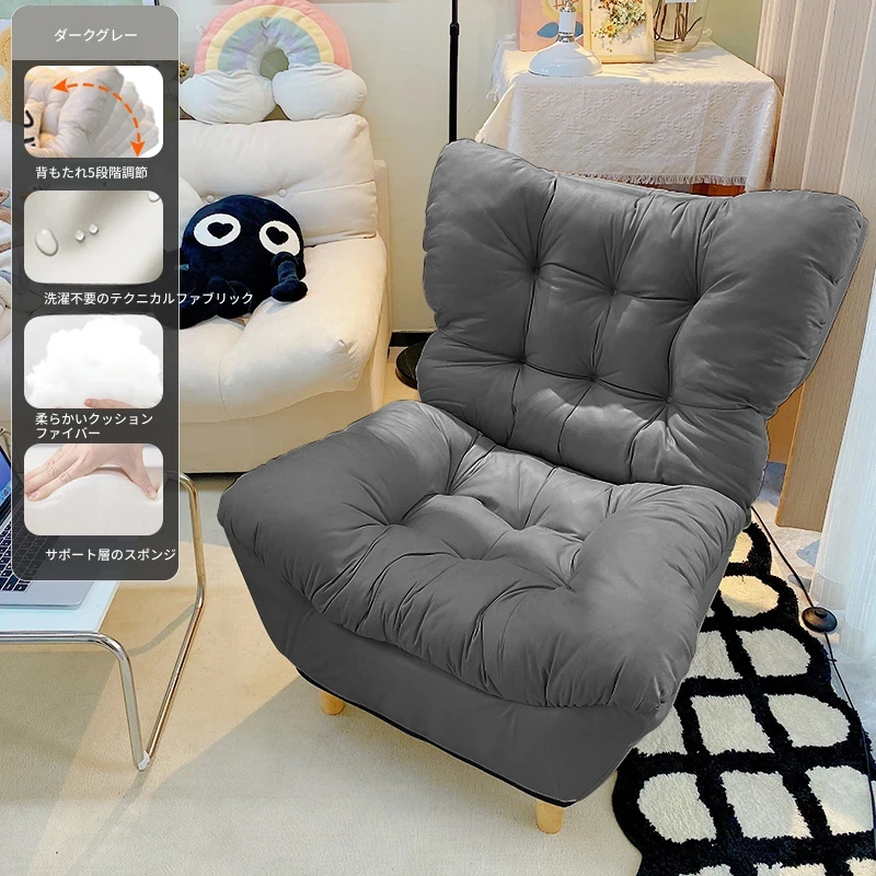 【ダブルレイヤー厚手】ダークグレー - 折りたたみ可能なリクライニングソファチェア